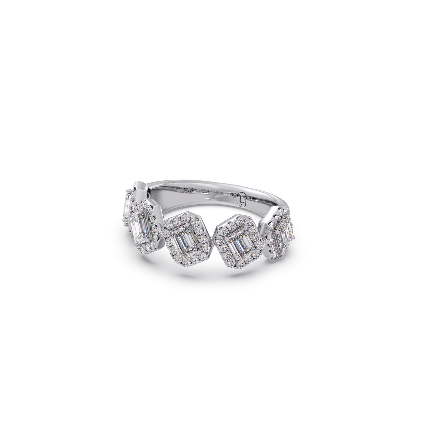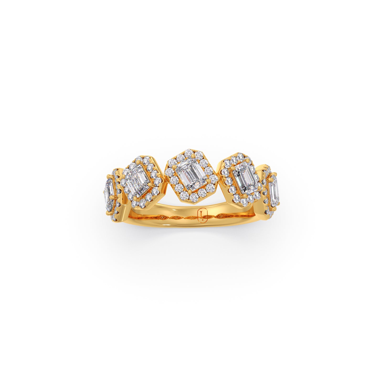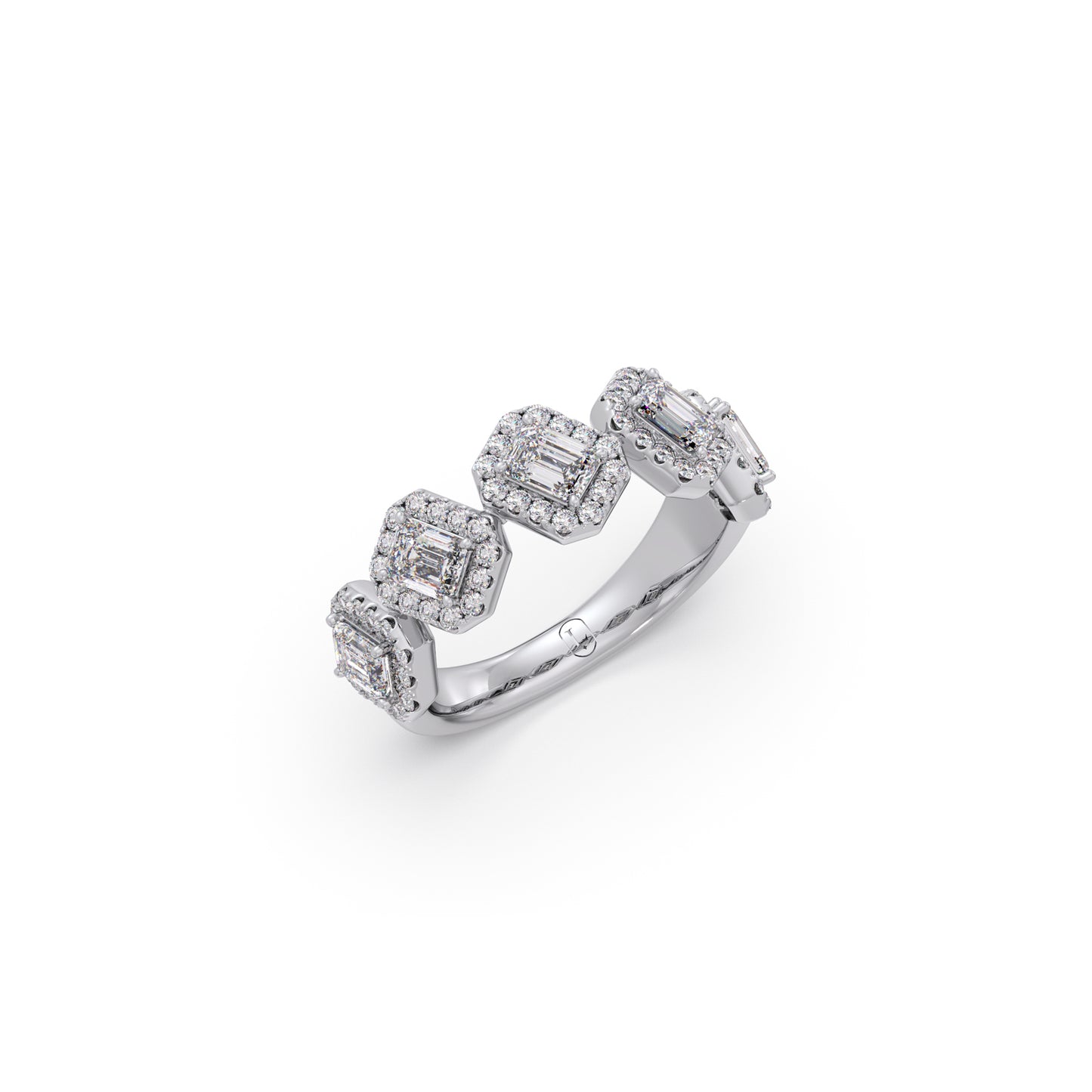 Adorn yourself with sophisticated sparkle in this Emerald Cut Diamond Ring. The striking emerald cut is perfectly complemented by twin round halos, amplifying its allure and creating a truly mesmerizing effect. It’s an exquisite piece that redefines elegance with exceptional fire and brilliance.