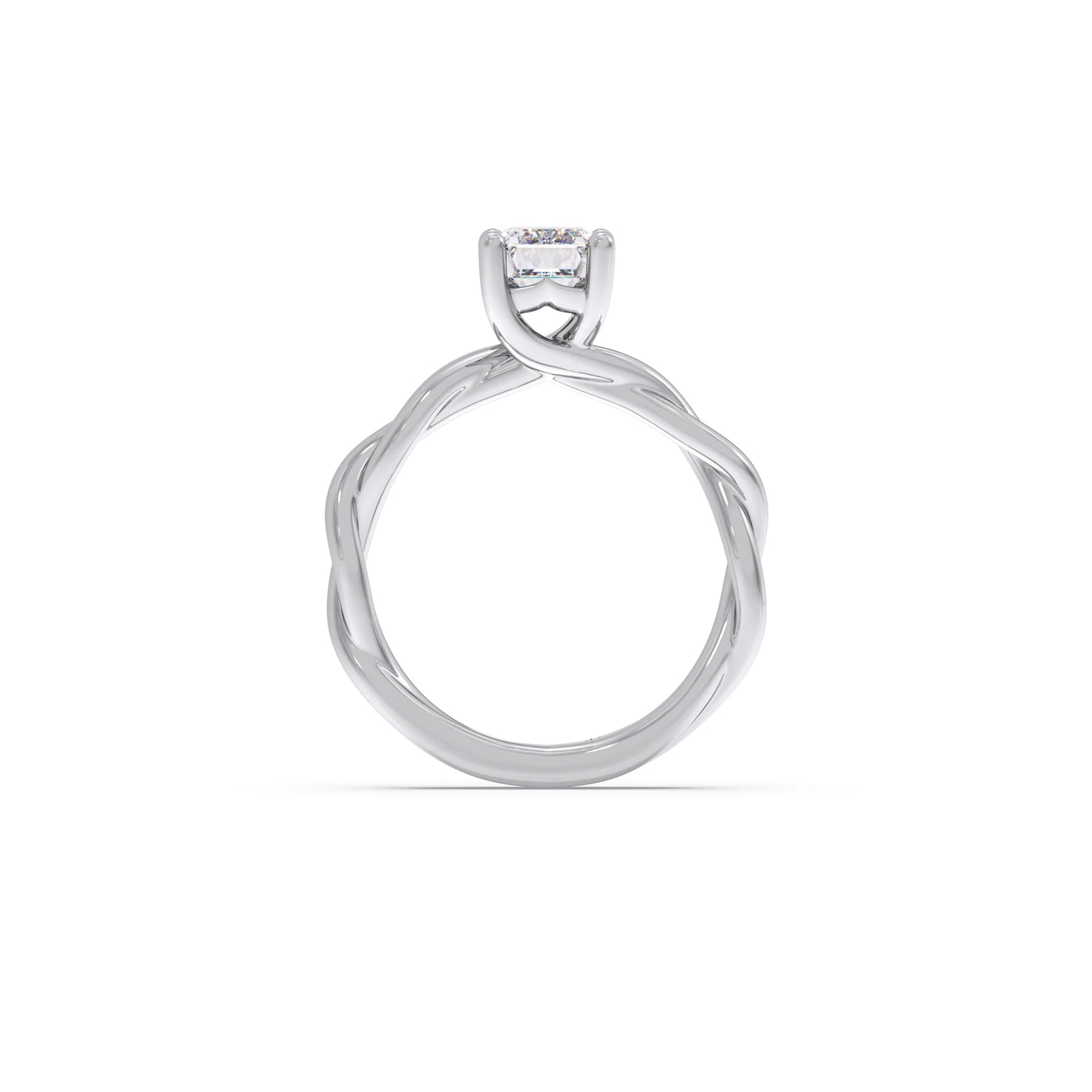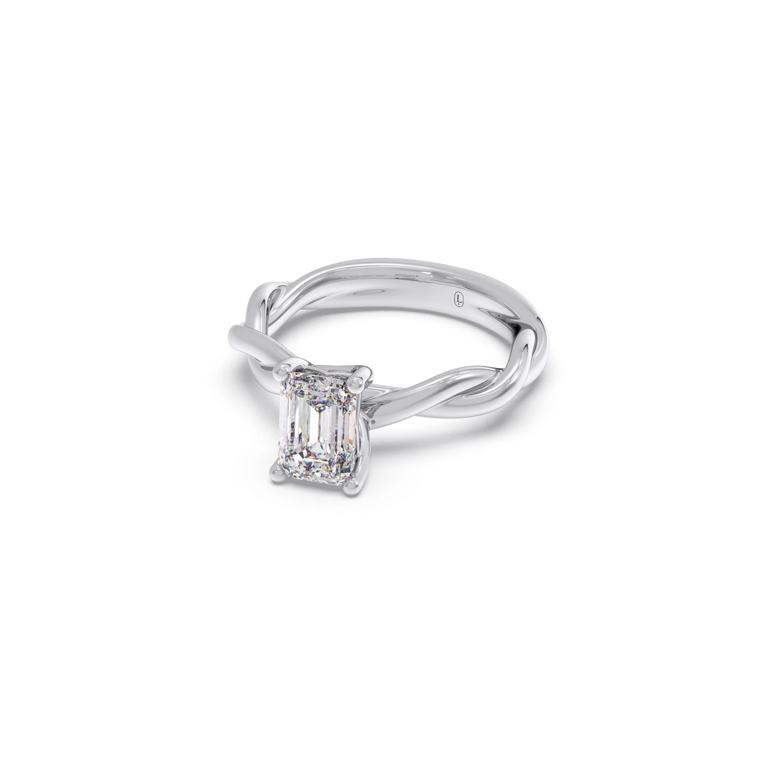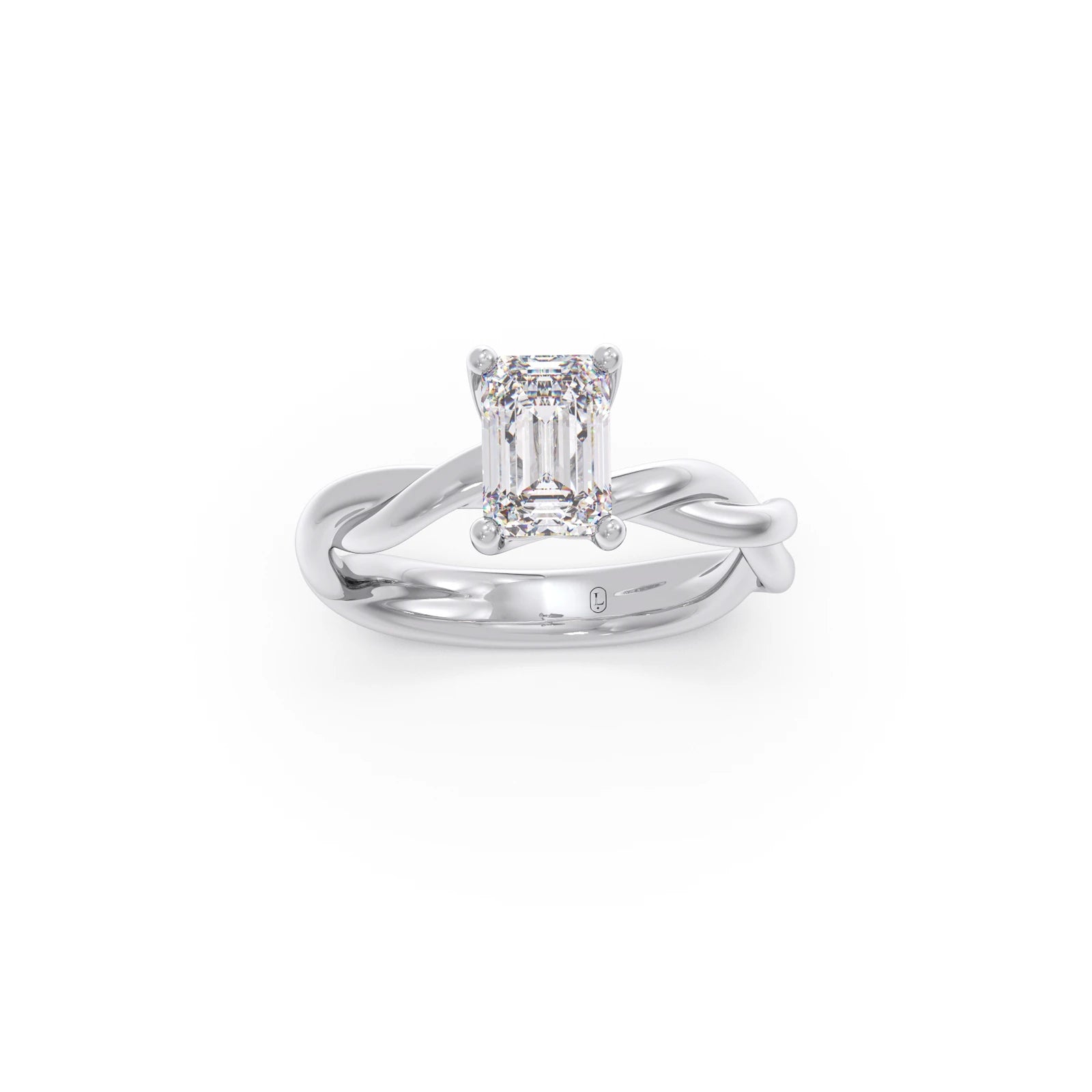 This engagement ring is a testament to modern elegance and unique style. The centrepiece is a stunning emerald-cut diamond, renowned for its rectangular shape and rectangular facets that create a breath-taking display of light and shadow. The emerald cut's clean lines and geometric precision lend a sense of sophistication and timeless beauty.