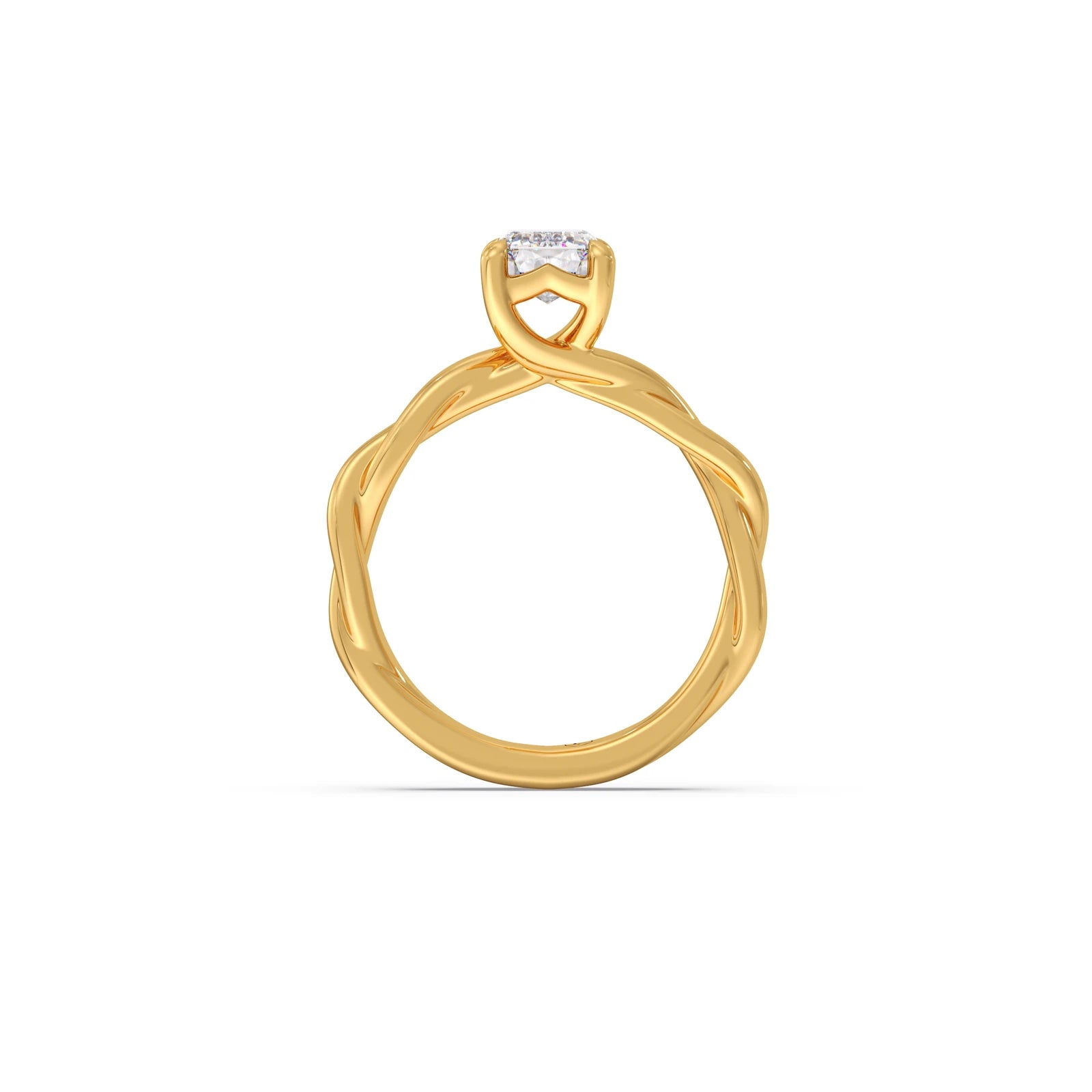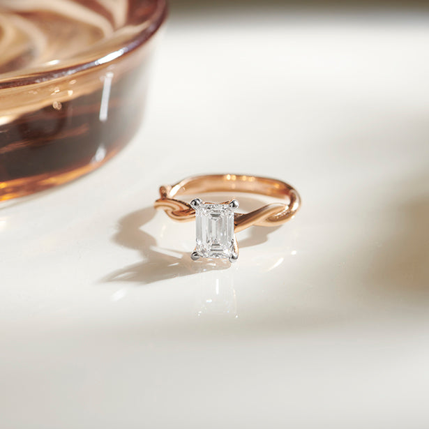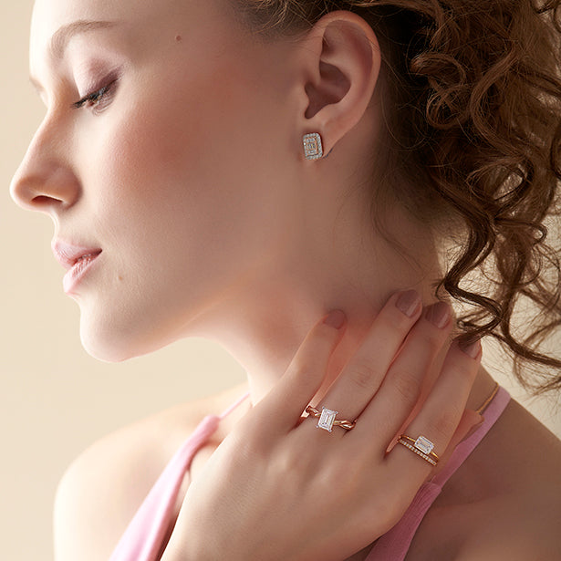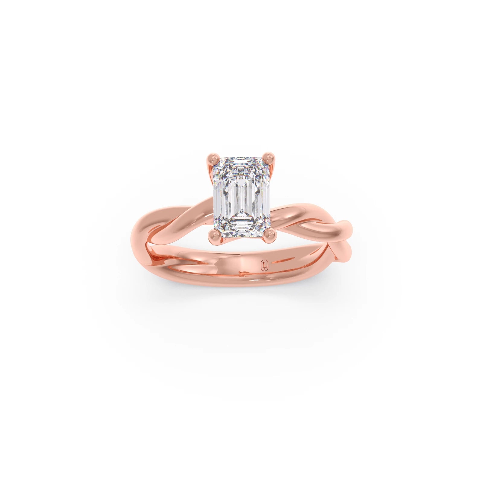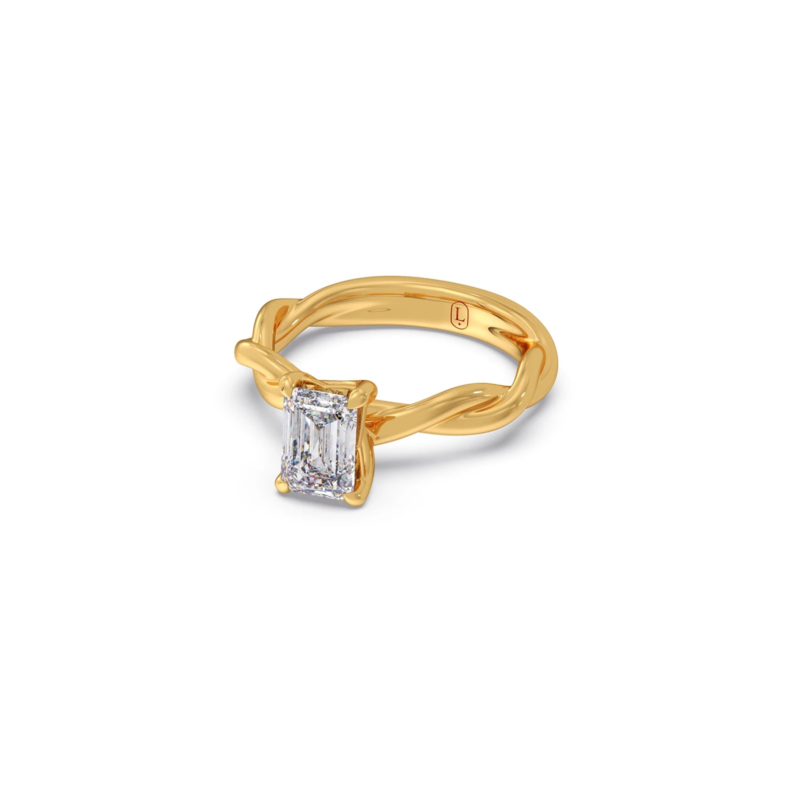 This engagement ring is a testament to modern elegance and unique style. The centrepiece is a stunning emerald-cut diamond, renowned for its rectangular shape and rectangular facets that create a breath-taking display of light and shadow. The emerald cut's clean lines and geometric precision lend a sense of sophistication and timeless beauty.
