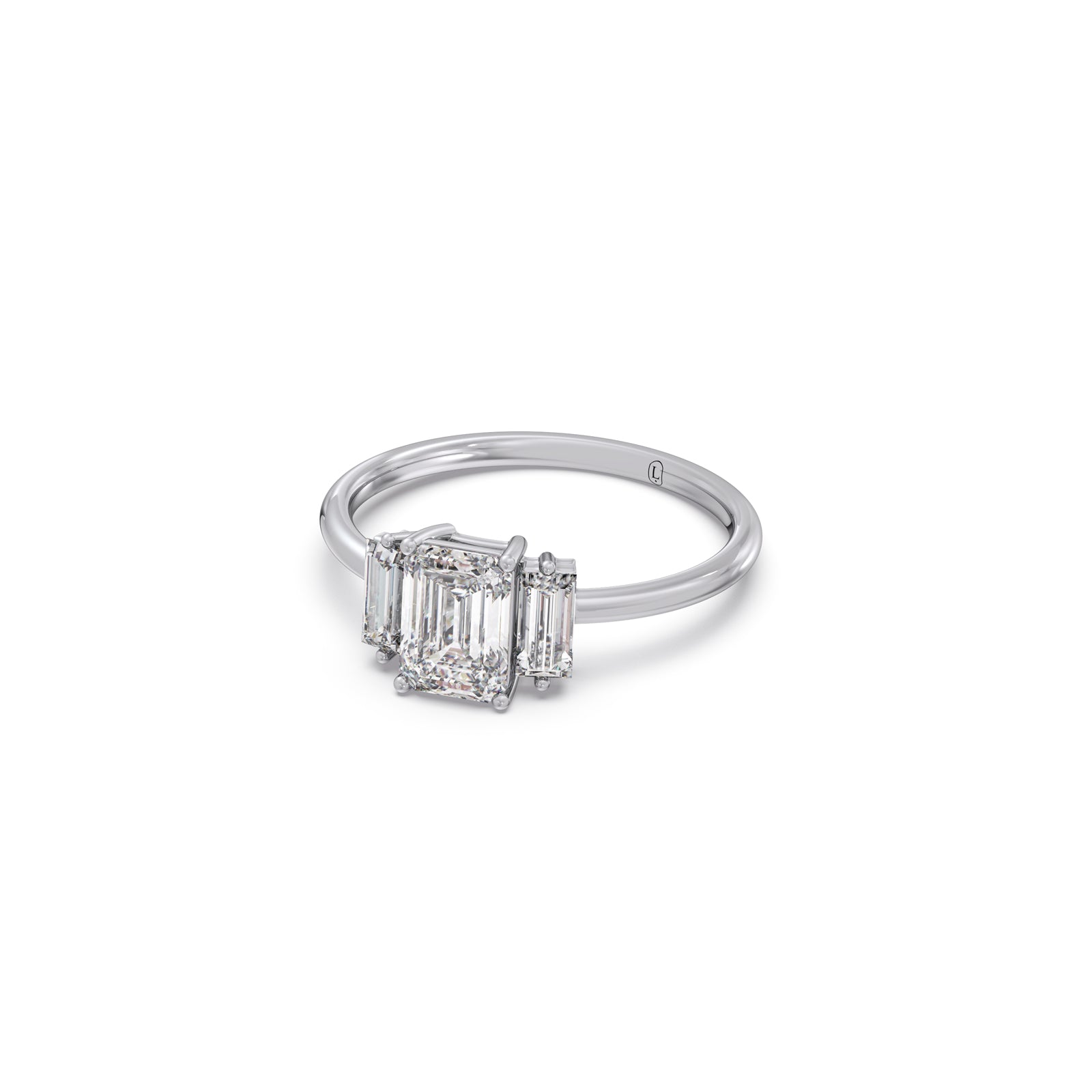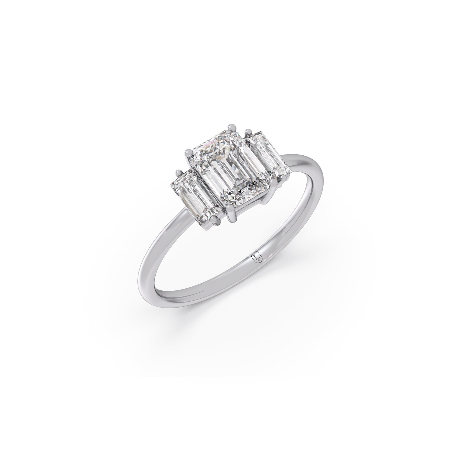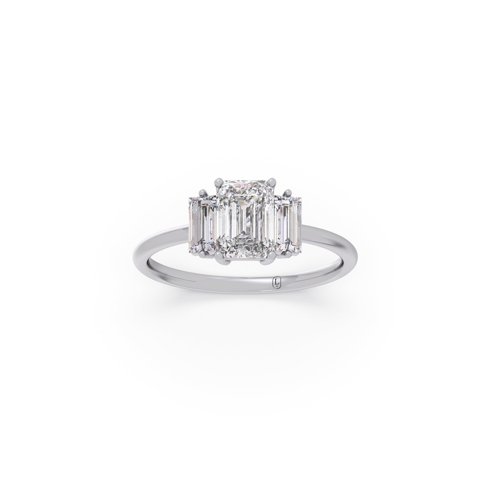 Experience the art of elegance with the Emerald Cut with Side Baguette Three Stone Engagement Ring. The bold emerald cut paired with baguette accents offers a timeless yet contemporary look✨💍