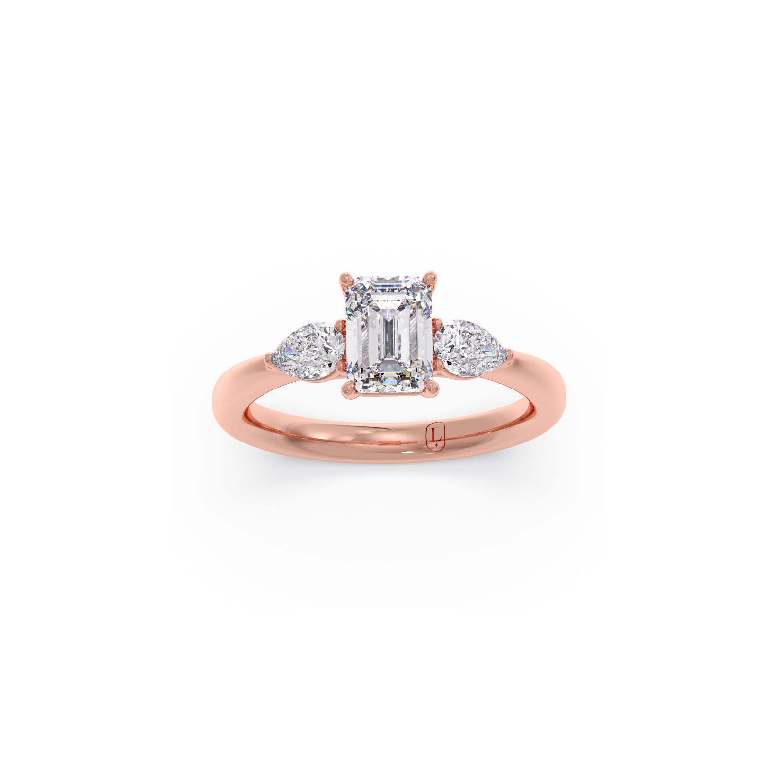 Step into a world of captivating elegance with our Emerald Horizon with Pear Droplets Diamond Ring. A breathtaking emerald-cut diamond, symbolizing a serene horizon, takes center stage, exquisitely flanked by two shimmering pear-shaped diamonds, like sparkling droplets. This harmonious blend of cuts creates a unique and unforgettable piece, perfect for celebrating enduring love and sophisticated style.