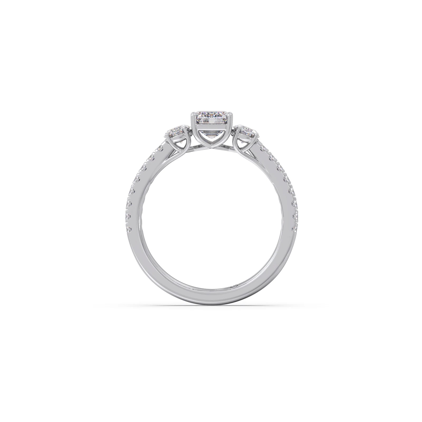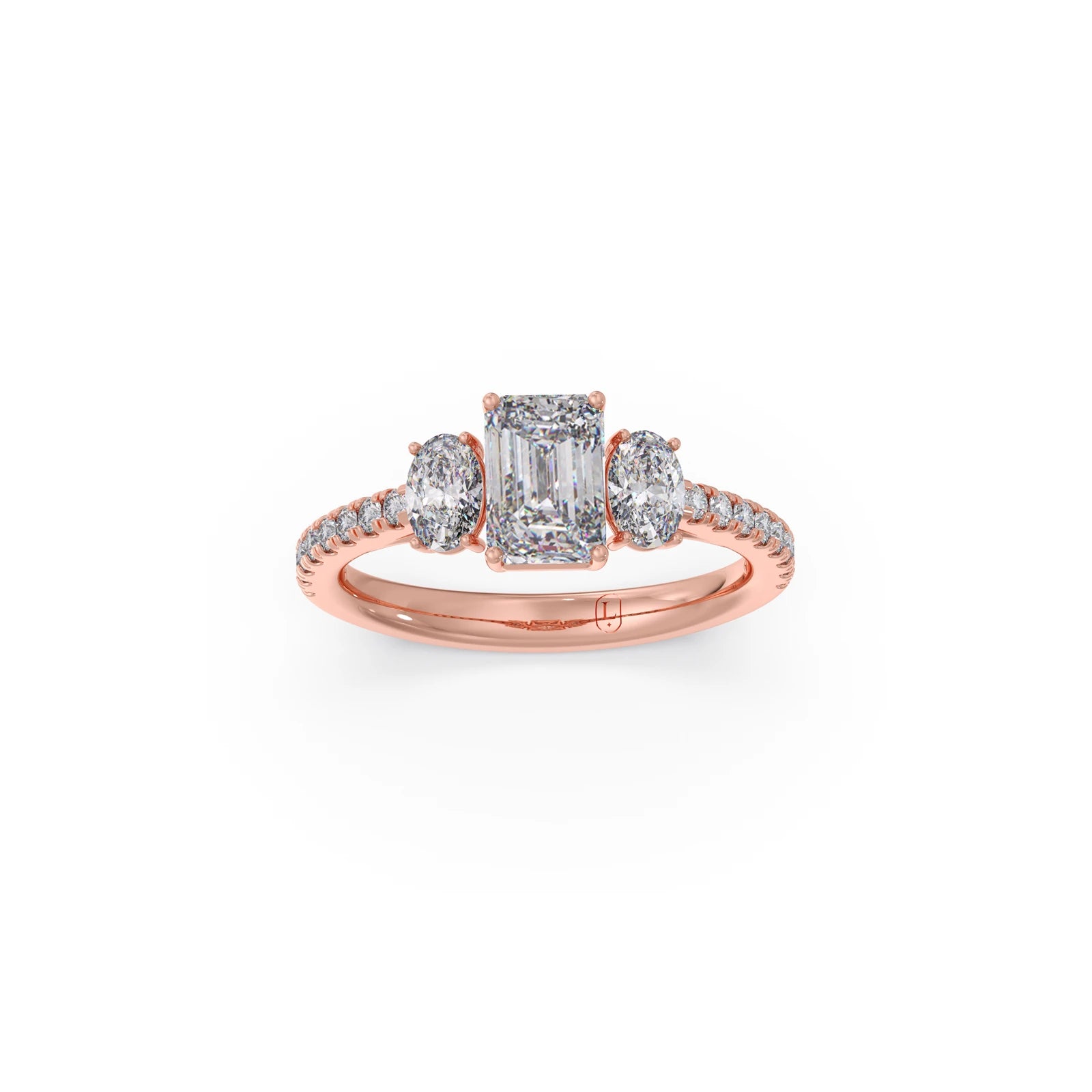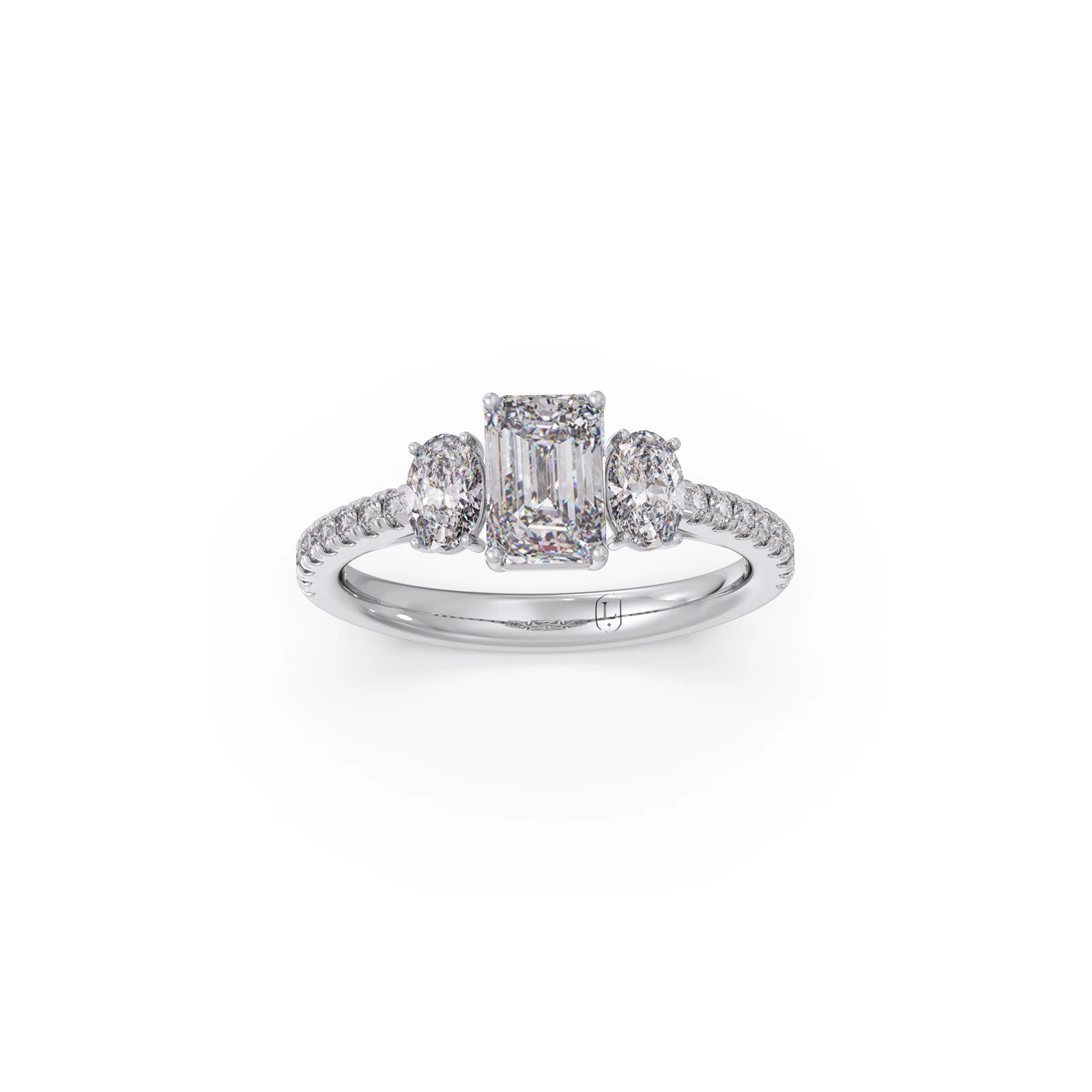 Emerald, Oval, and Round Diamond Trilogy Ring