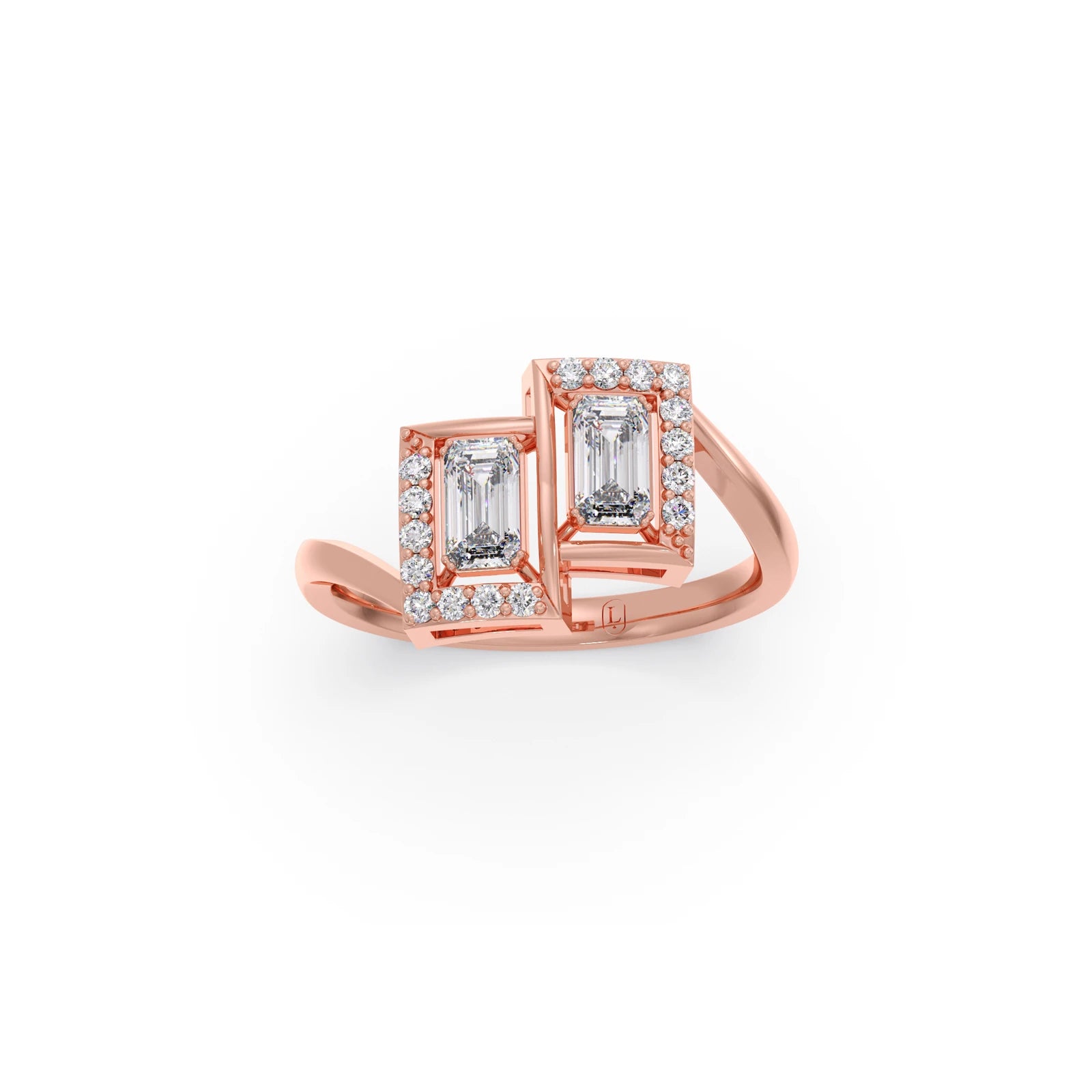 Emerald & Round Cut Diamond Toi et Moi Ring