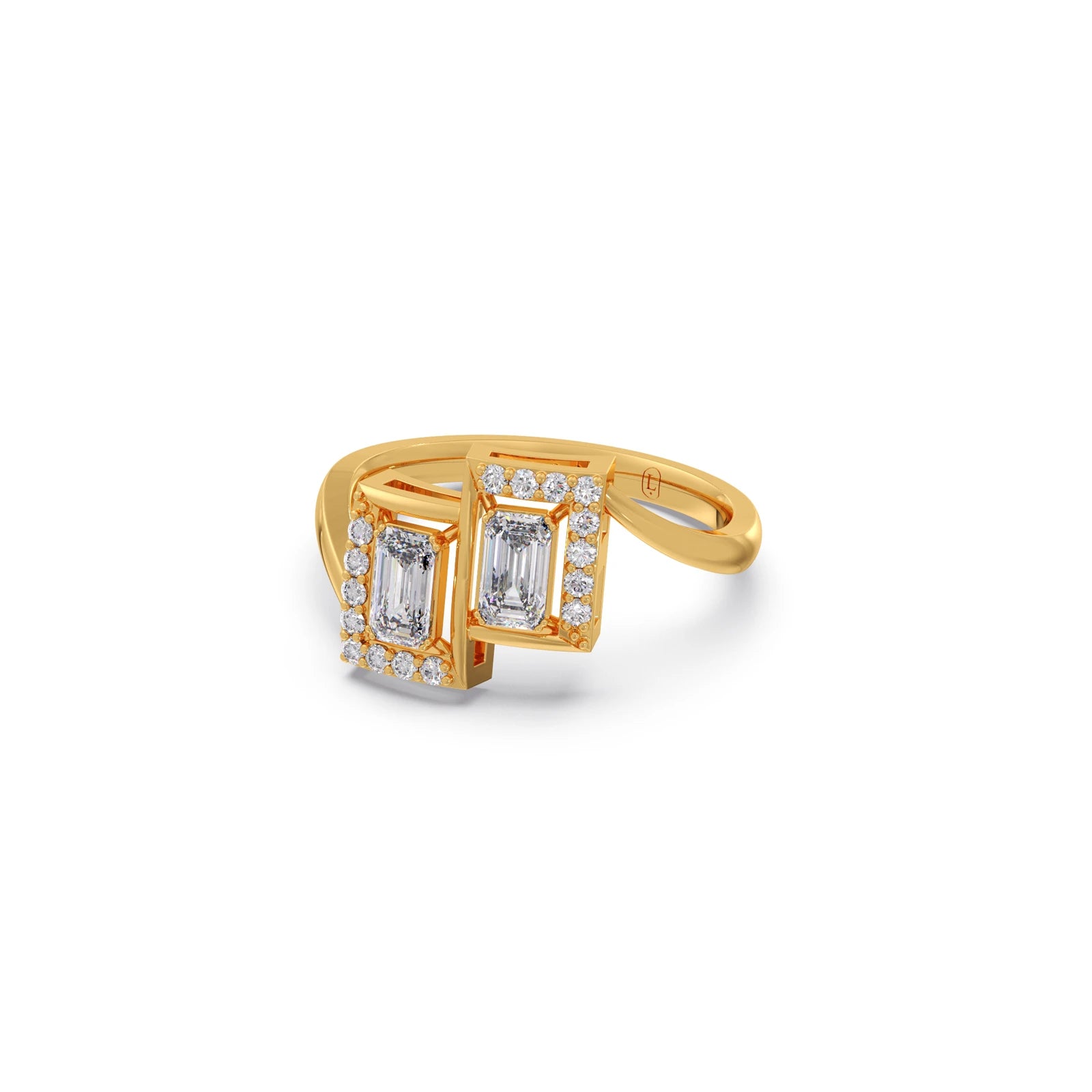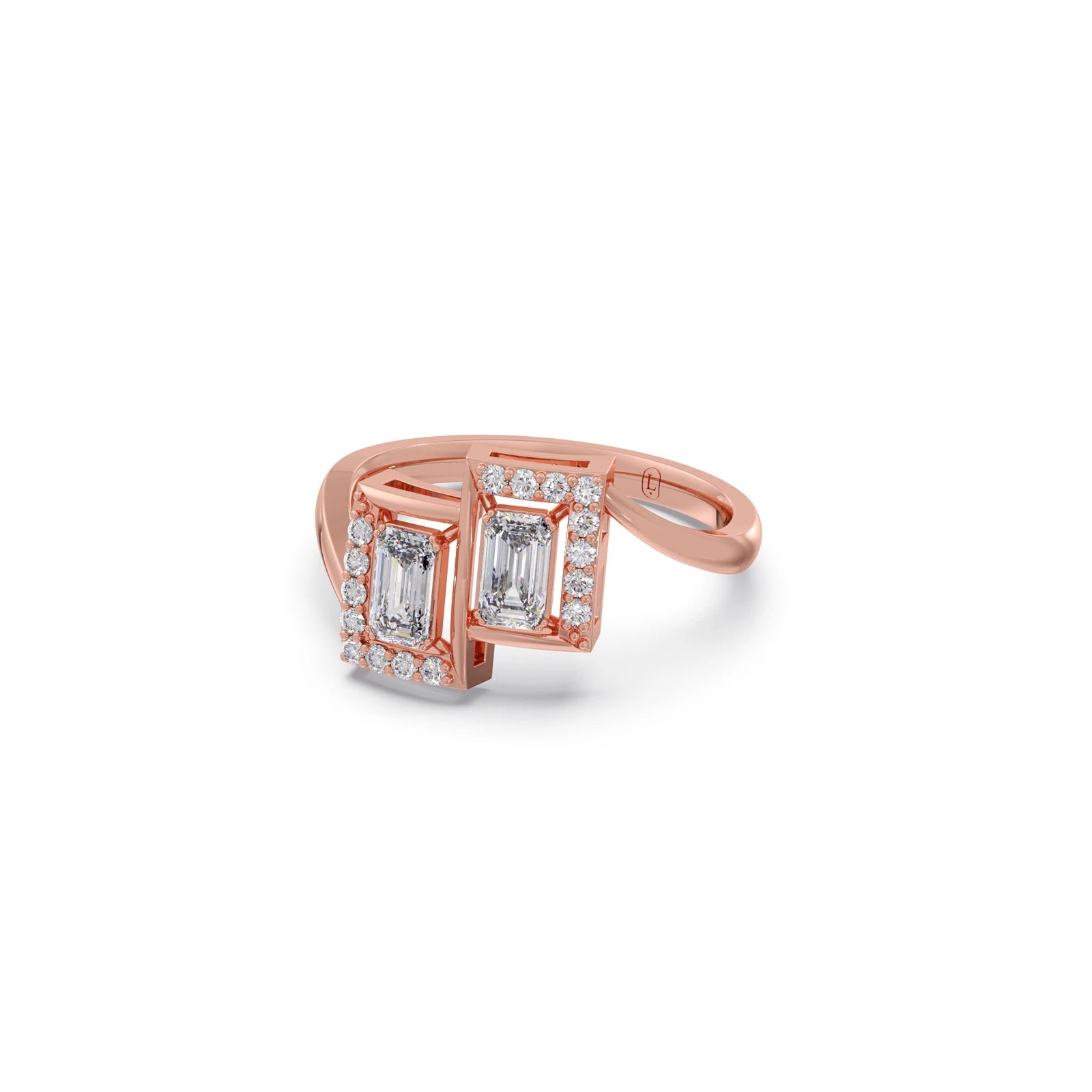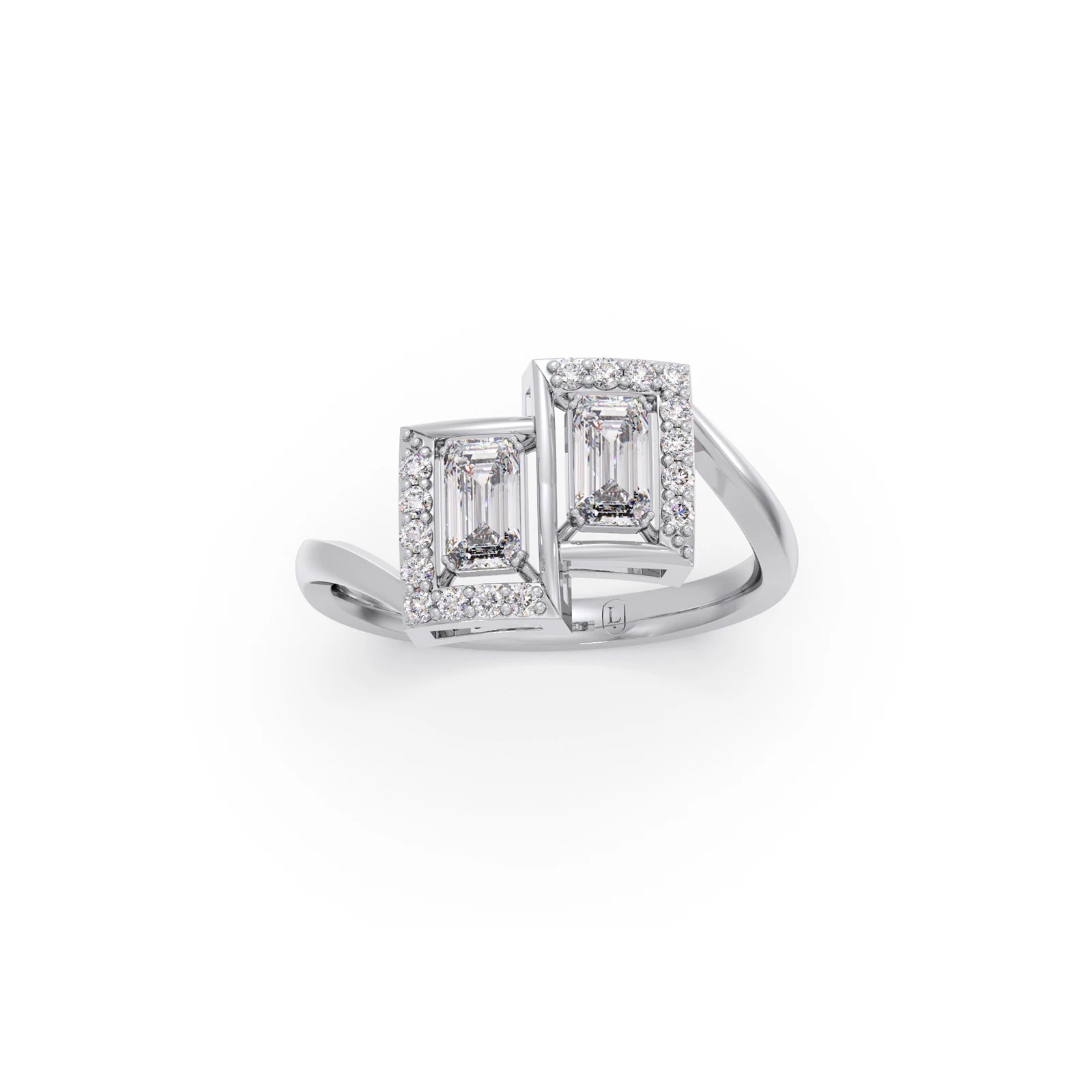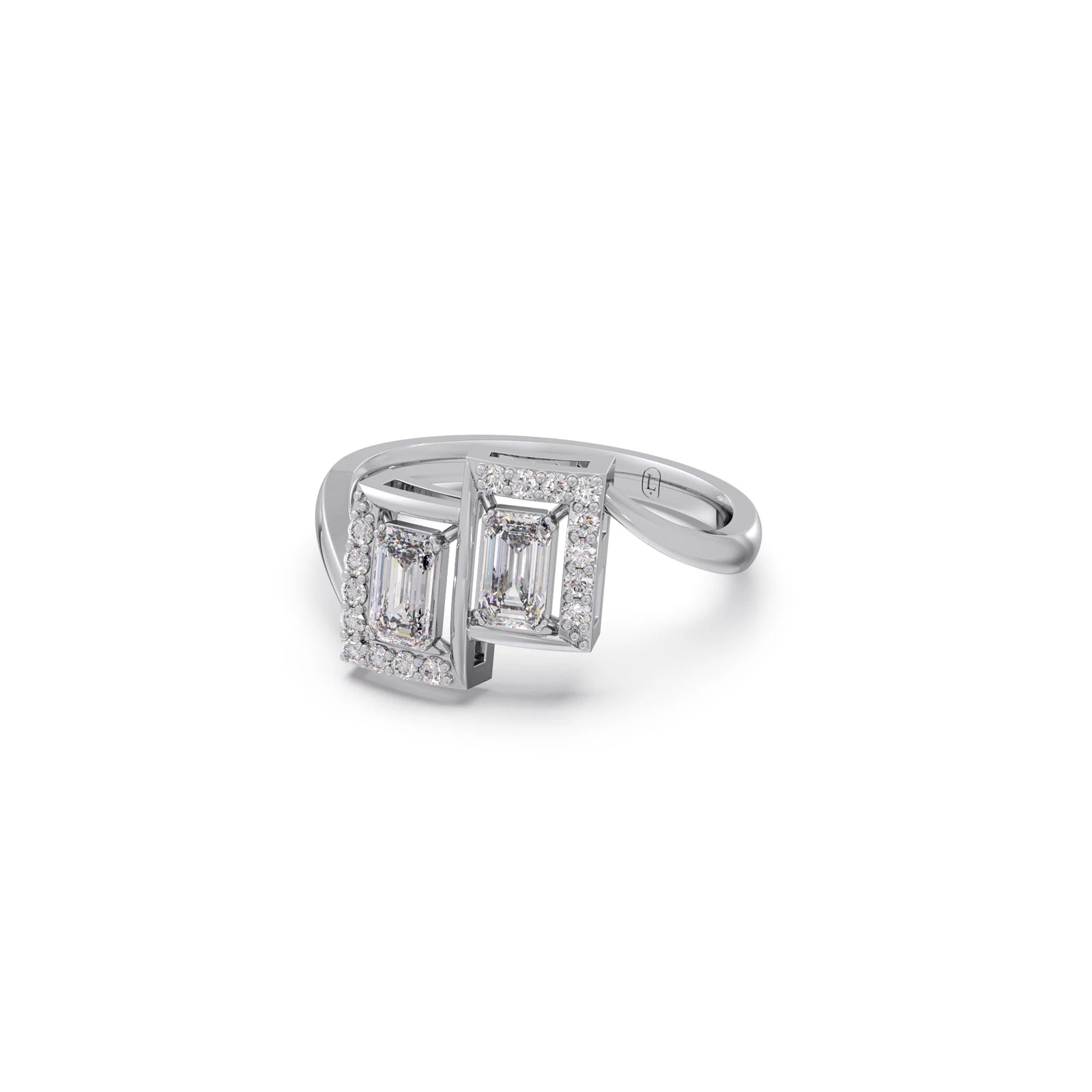"Experience timeless elegance with our Emerald & Round Cut Diamond Toi et Moi Ring. This captivating design masterfully pairs the classic brilliance of a round diamond with the sophisticated allure of an emerald cut, symbolizing two unique paths beautifully joined. A modern yet classic testament to your enduring connection, perfect for any special occasion."
