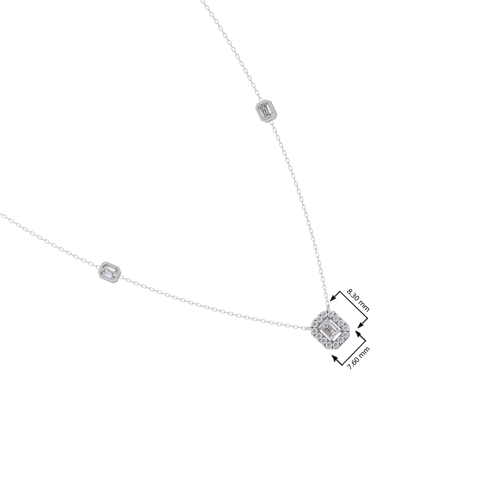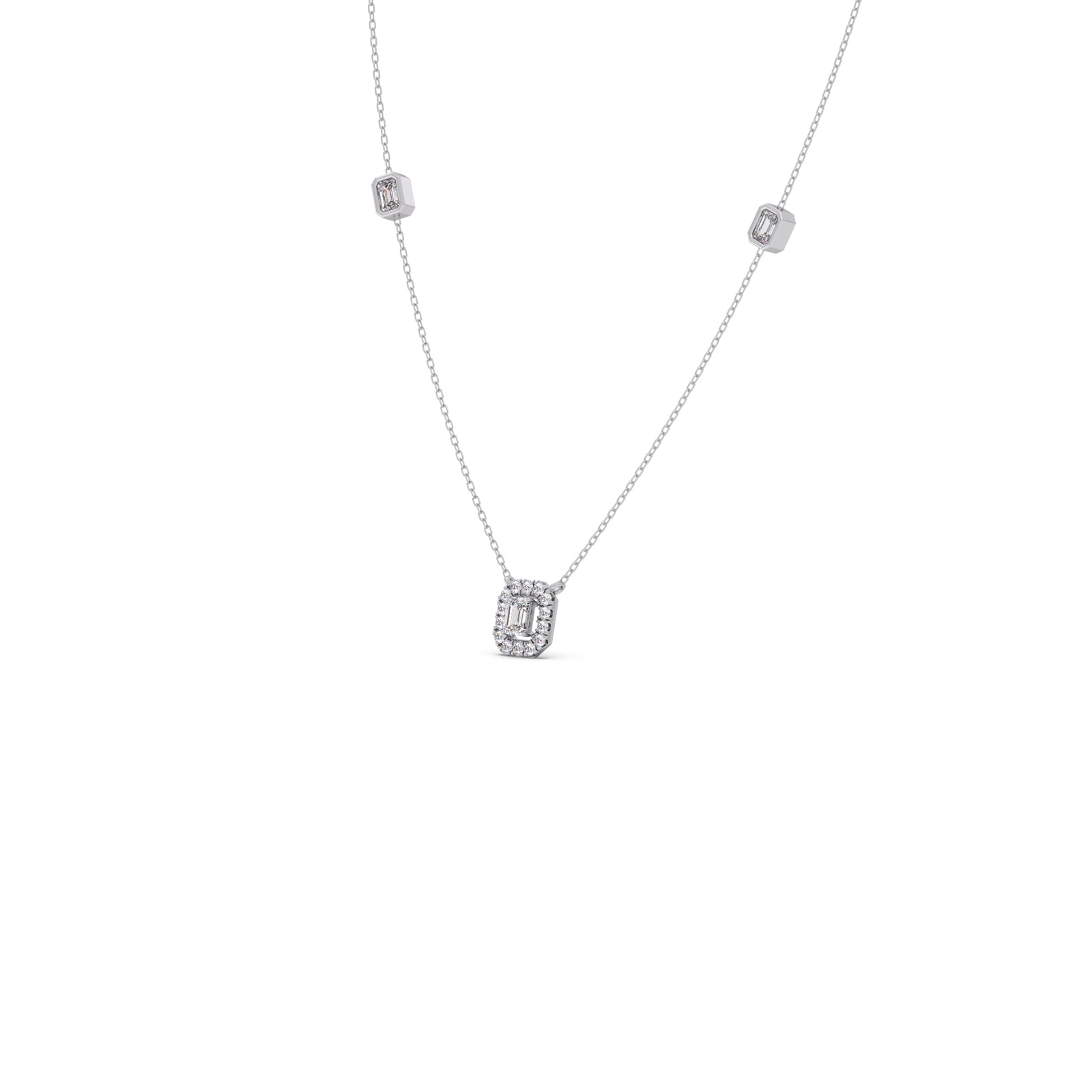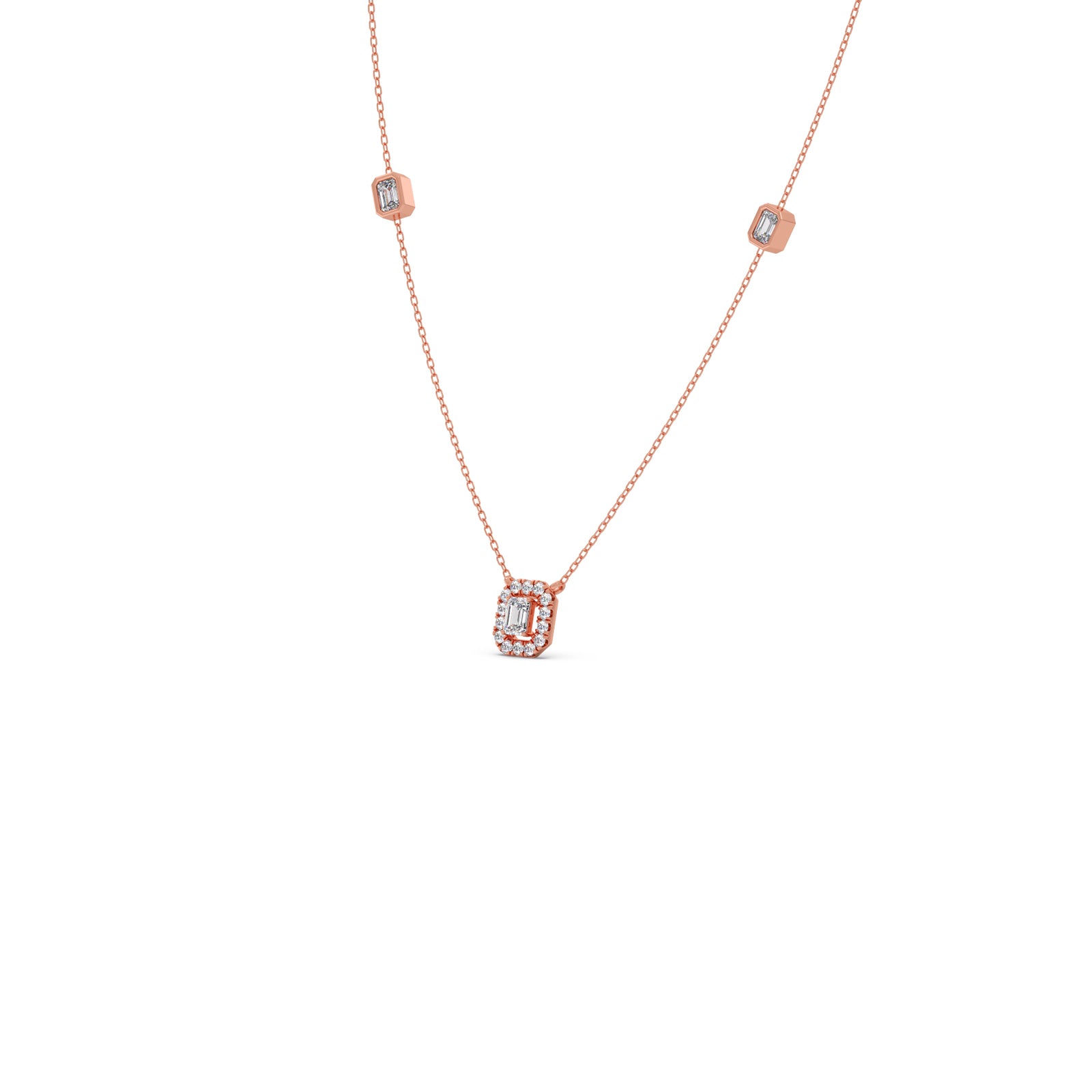 Experience the perfect harmony of two iconic diamond cuts. The Emerald & Round Symmetry & Sparkle Diamond Necklace unites the architectural clarity of the emerald-cut diamond with the breath taking brilliance of a round diamond halo. This exquisite piece is a modern tribute to balanced design and timeless, sophisticated elegance.
