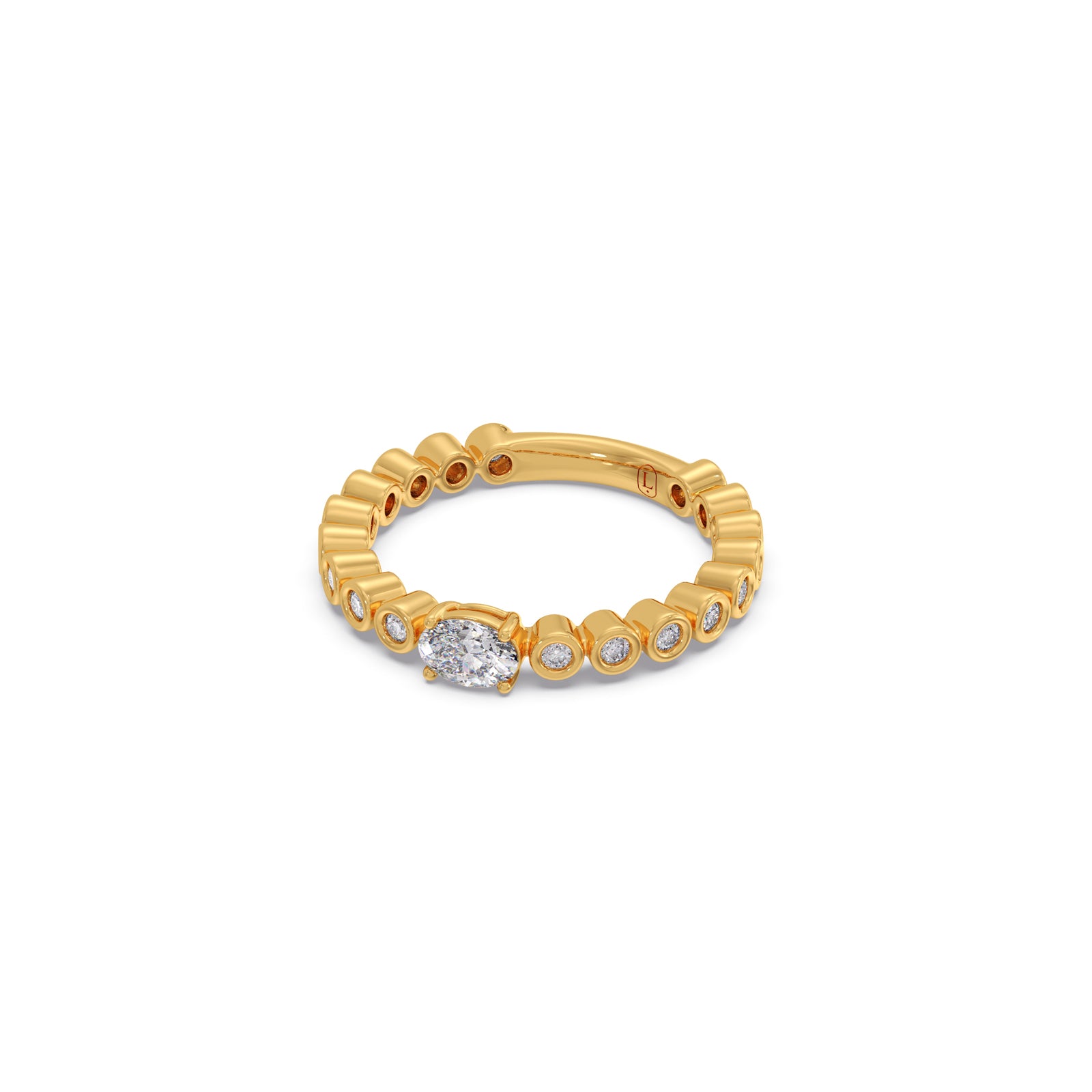 Experience timeless brilliance with the Encircle Oval Radiance Diamond Ring. A magnificent oval-cut diamond, renowned for its elegant elongated shape, takes center stage, beautifully encircled by a halo or band of sparkling round diamonds. This design maximizes fire and creates an illusion of greater size, offering captivating sparkle and sophisticated allure for any occasion.