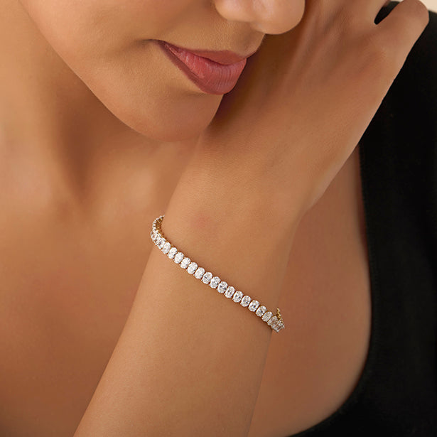 Sculpted in a seamless flow, the Endless Oval Tennis Bracelet features a continuous line of beautifully cut oval diamonds, each set in refined prongs for maximum brilliance. Elegant and timeless, this piece wraps the wrist in effortless luxury — a graceful expression of forever.