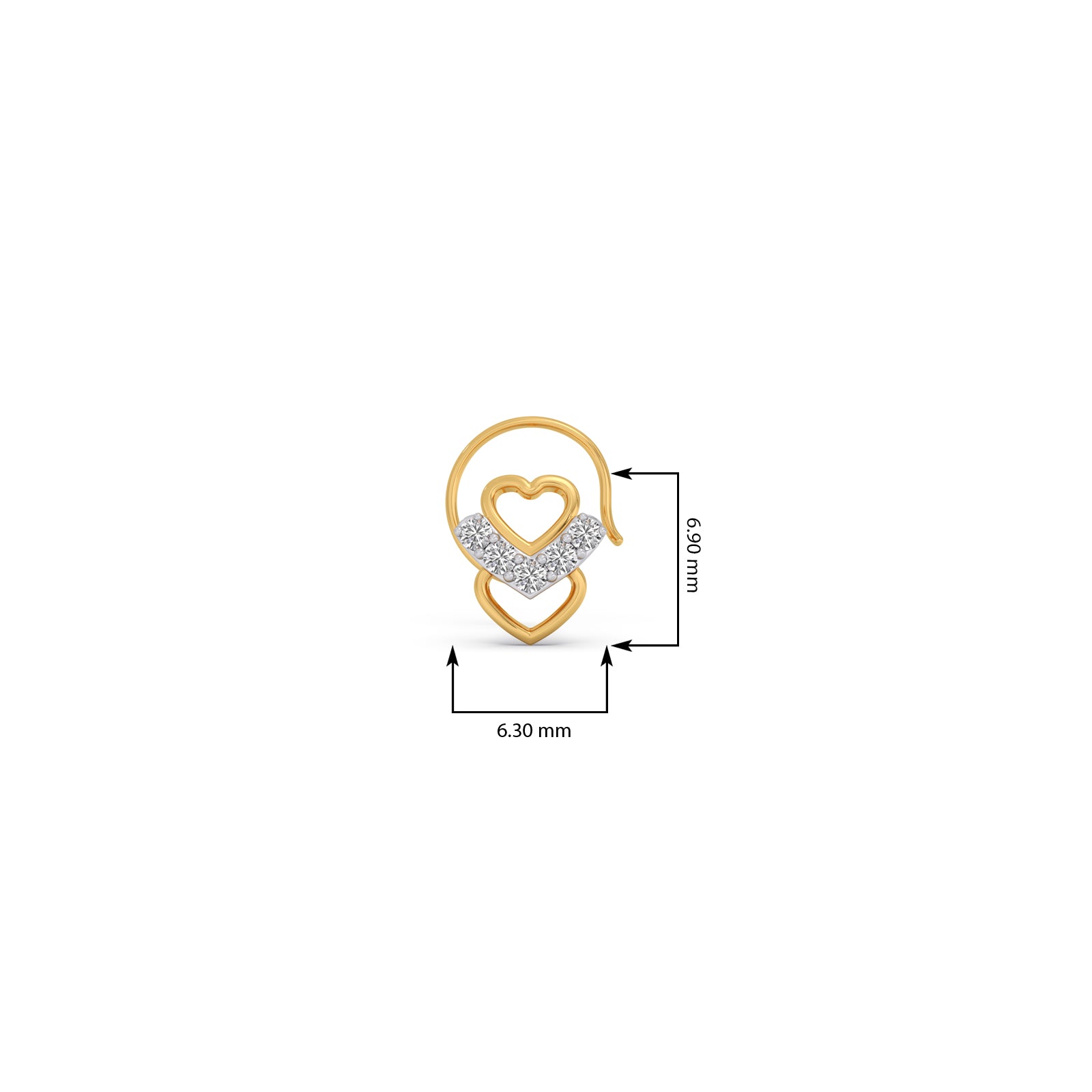 Entwined-Heart Diamond Nose Pin symbolises love and connection through delicately interlaced heart motifs accented with a sparkling diamond. Feminine and graceful, it adds a romantic touch while remaining refined for everyday wear.