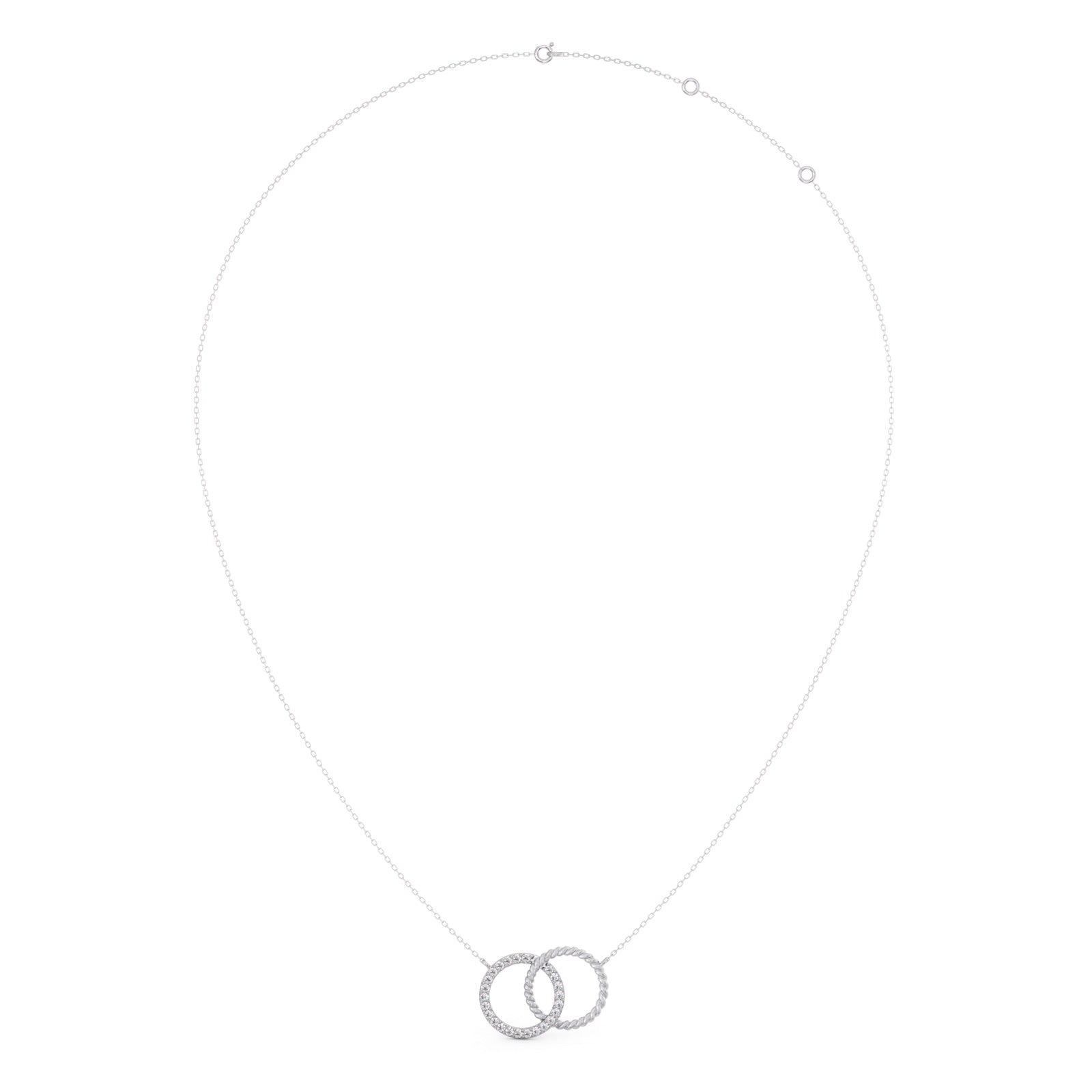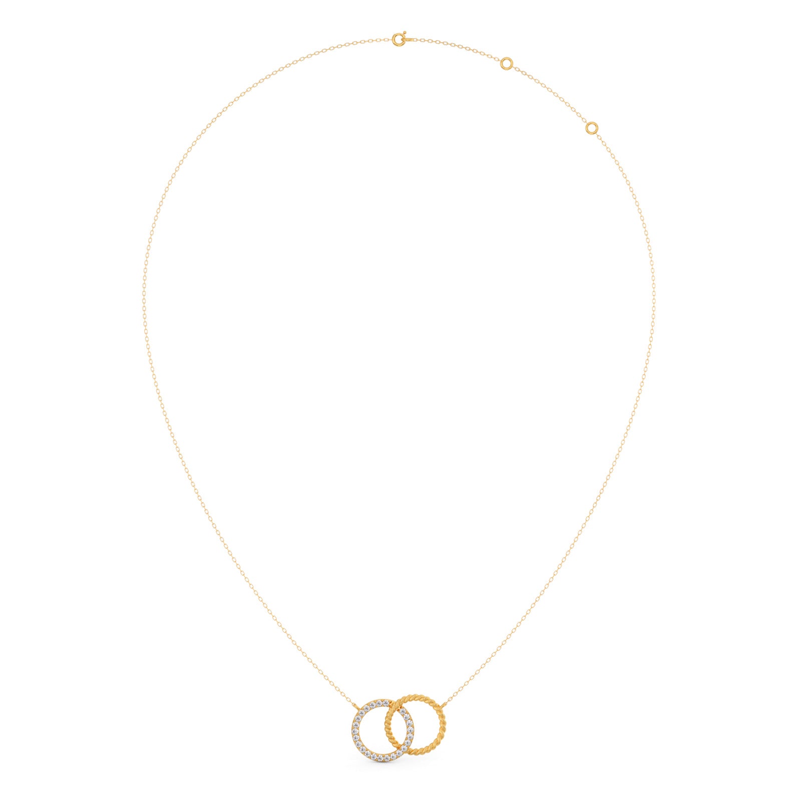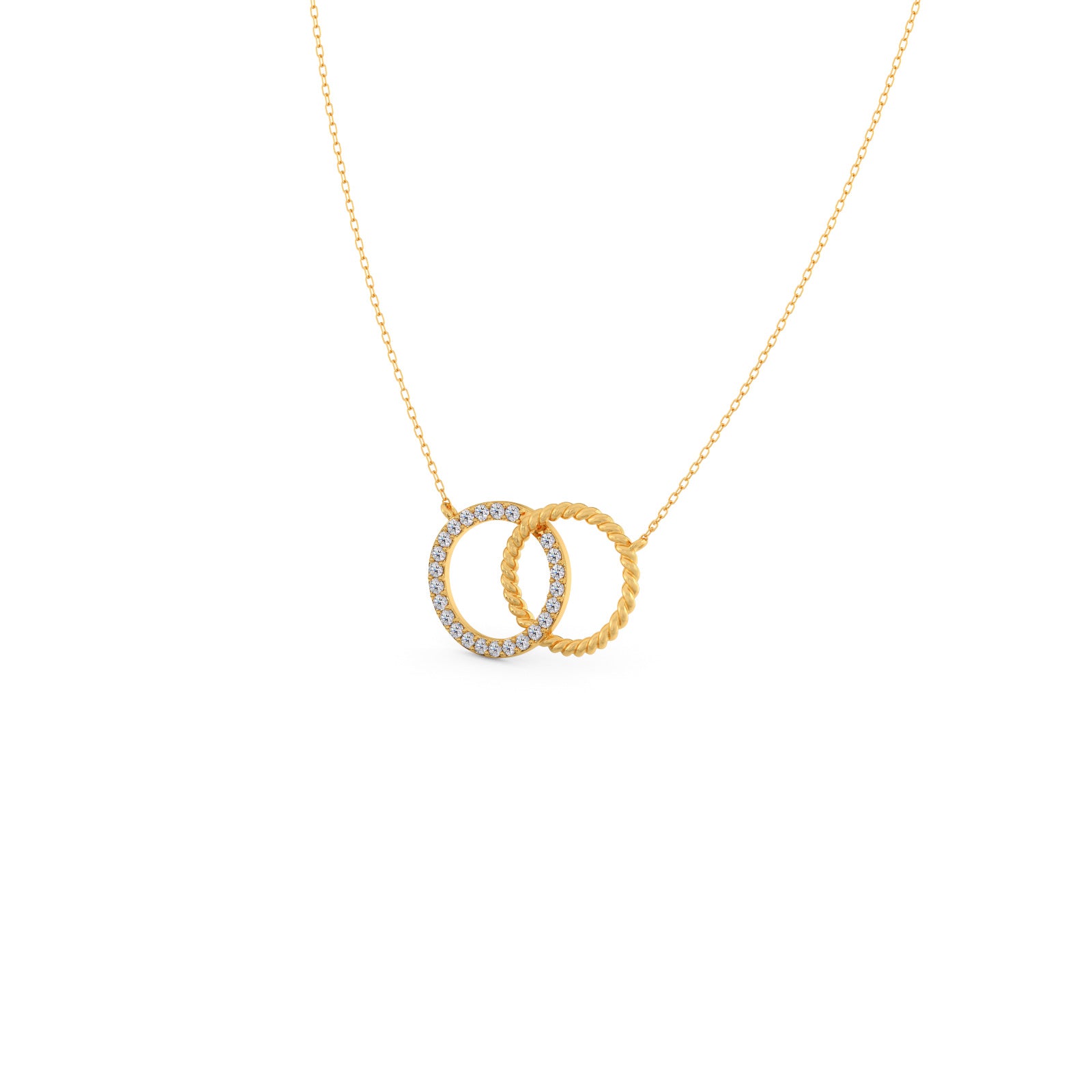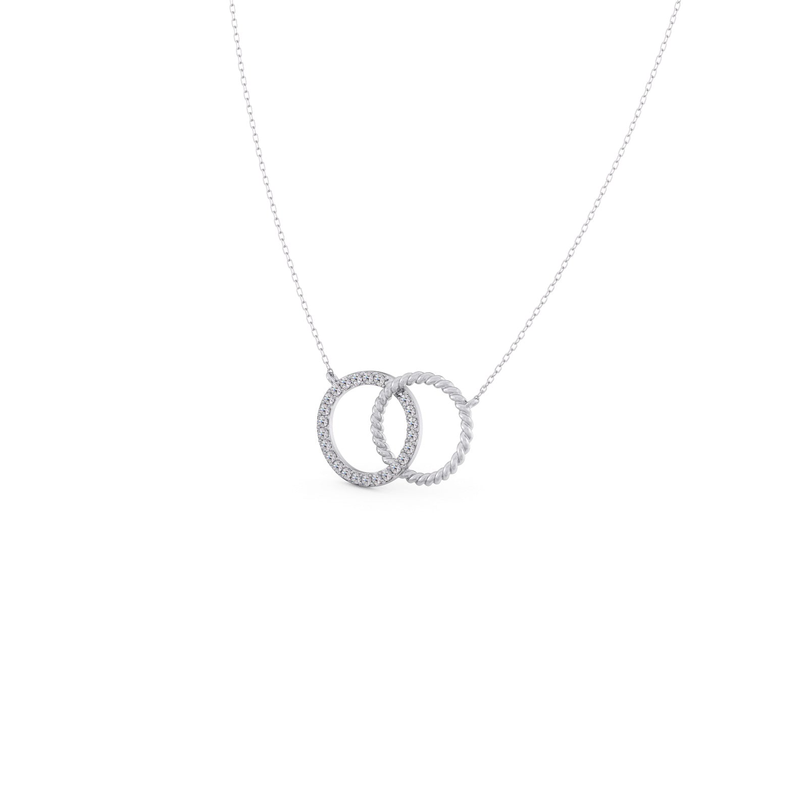 The Eternal Duo Circle Diamond Pendant showcases two gracefully linked circles, representing harmony and everlasting connection. One circle sparkles with brilliant round diamonds, while the other adds depth with a refined textured design. A versatile and elegant piece, it beautifully complements both casual and formal looks.