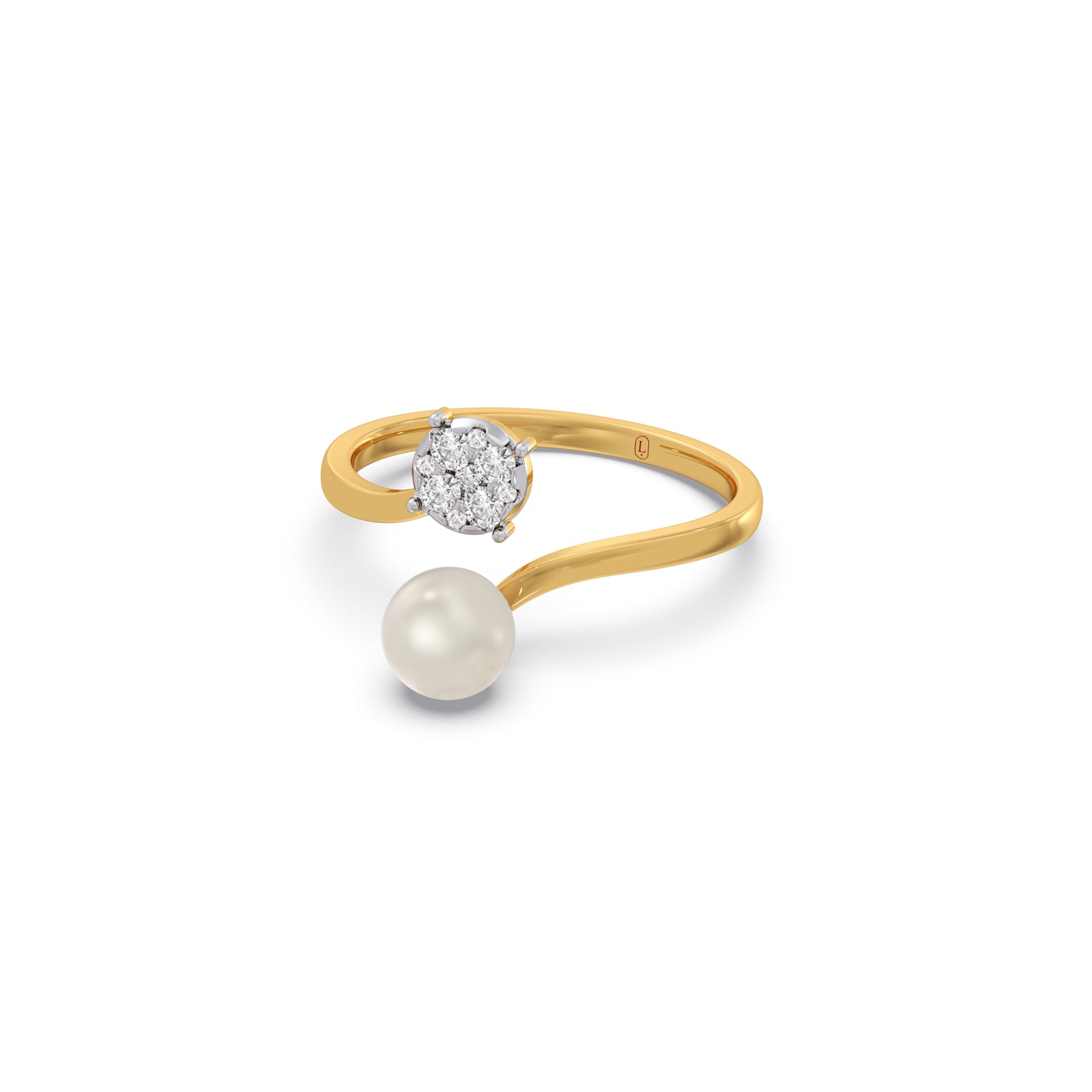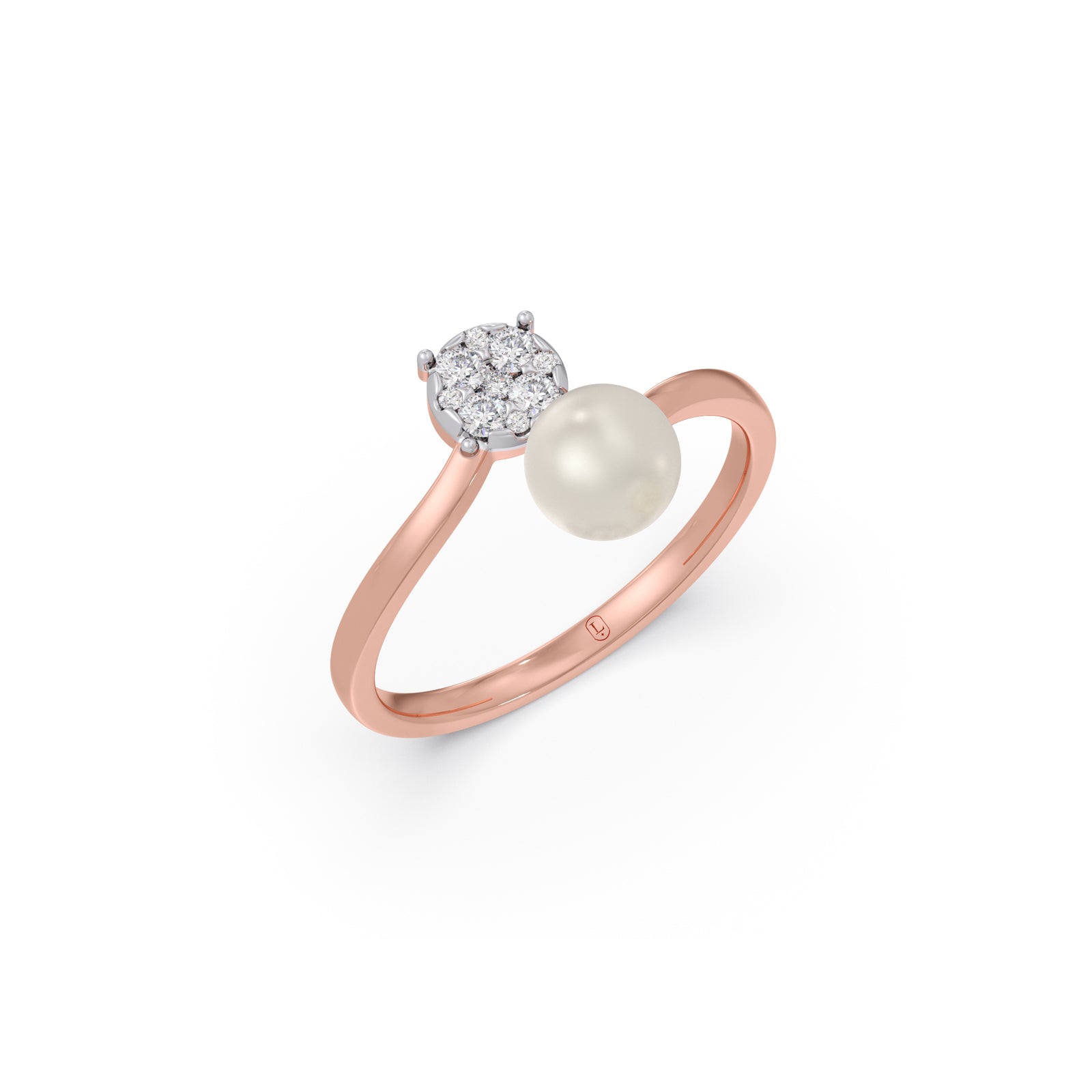 This ring is set with a cluster brilliant round cut diamonds. The diamonds are arranged in a pave setting to maximize light reflection. Other shank is attached with fresh water pearl. One of the best features of this design is versatility. You can often wear the pearl ring alone for a minimalist daytime look.