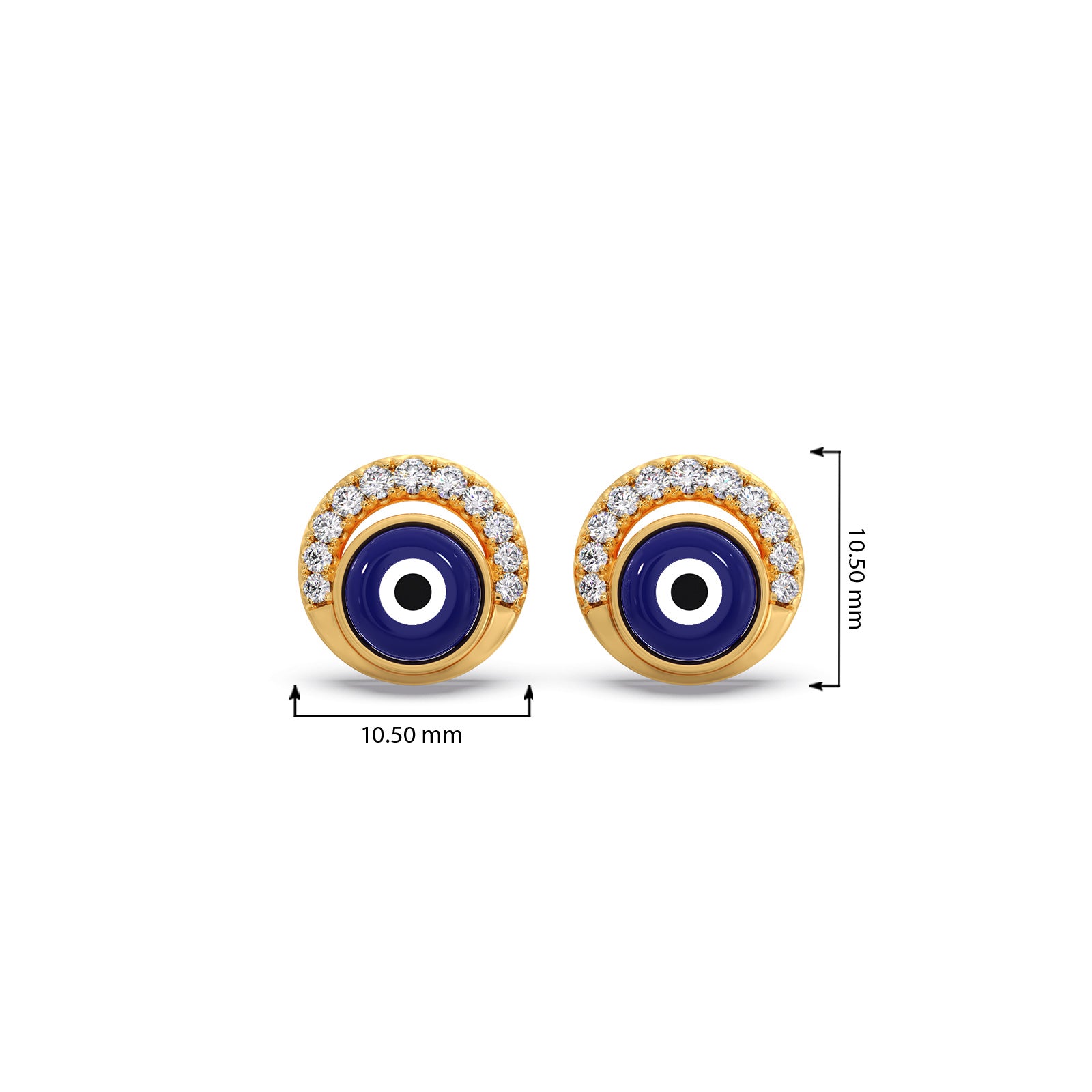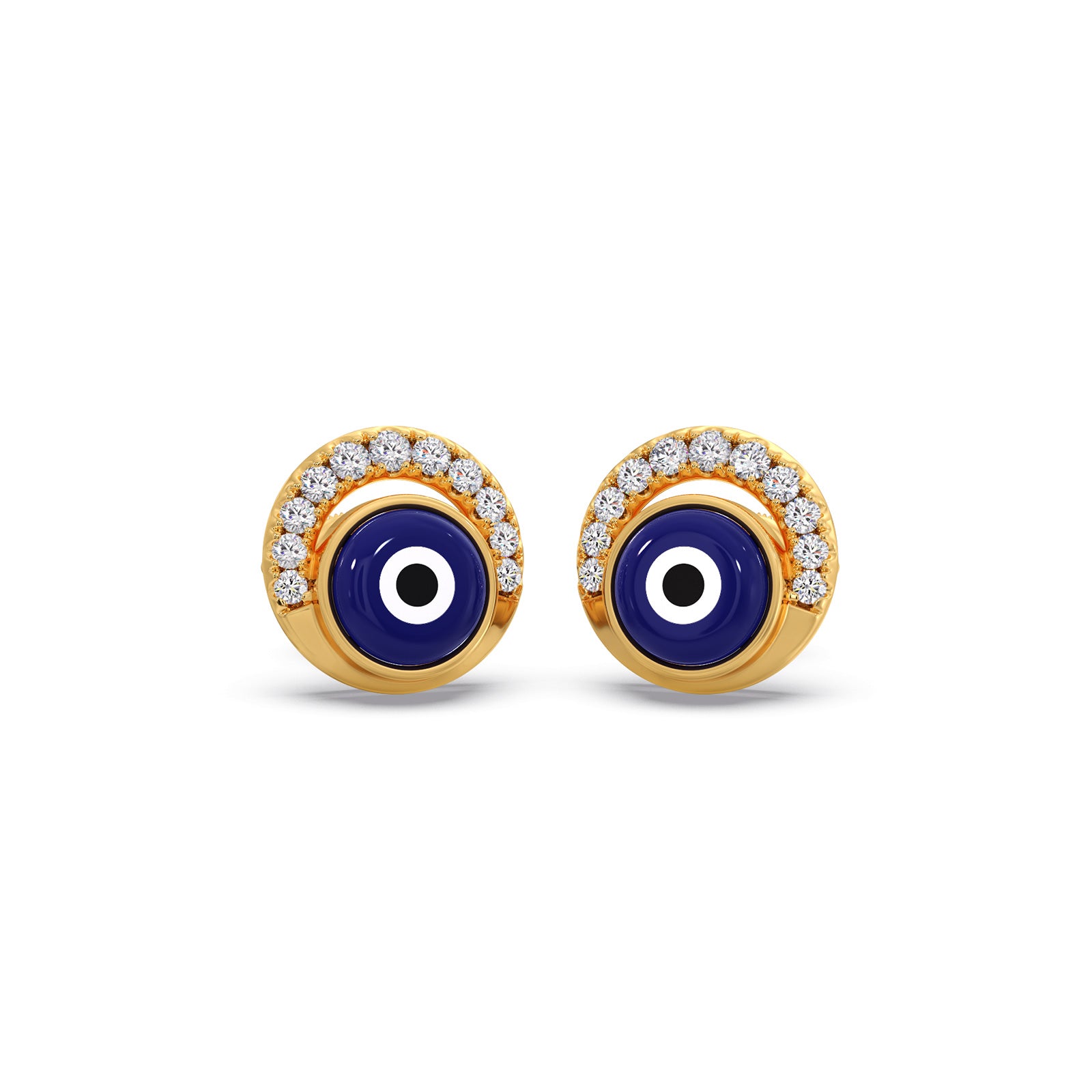 Dazzling protection for daily wear. These Evil Eye studs feature a vibrant central stone, framed by a delicate half-halo of brilliant diamonds. A chic, modern talisman designed to deflect negativity and capture the light.