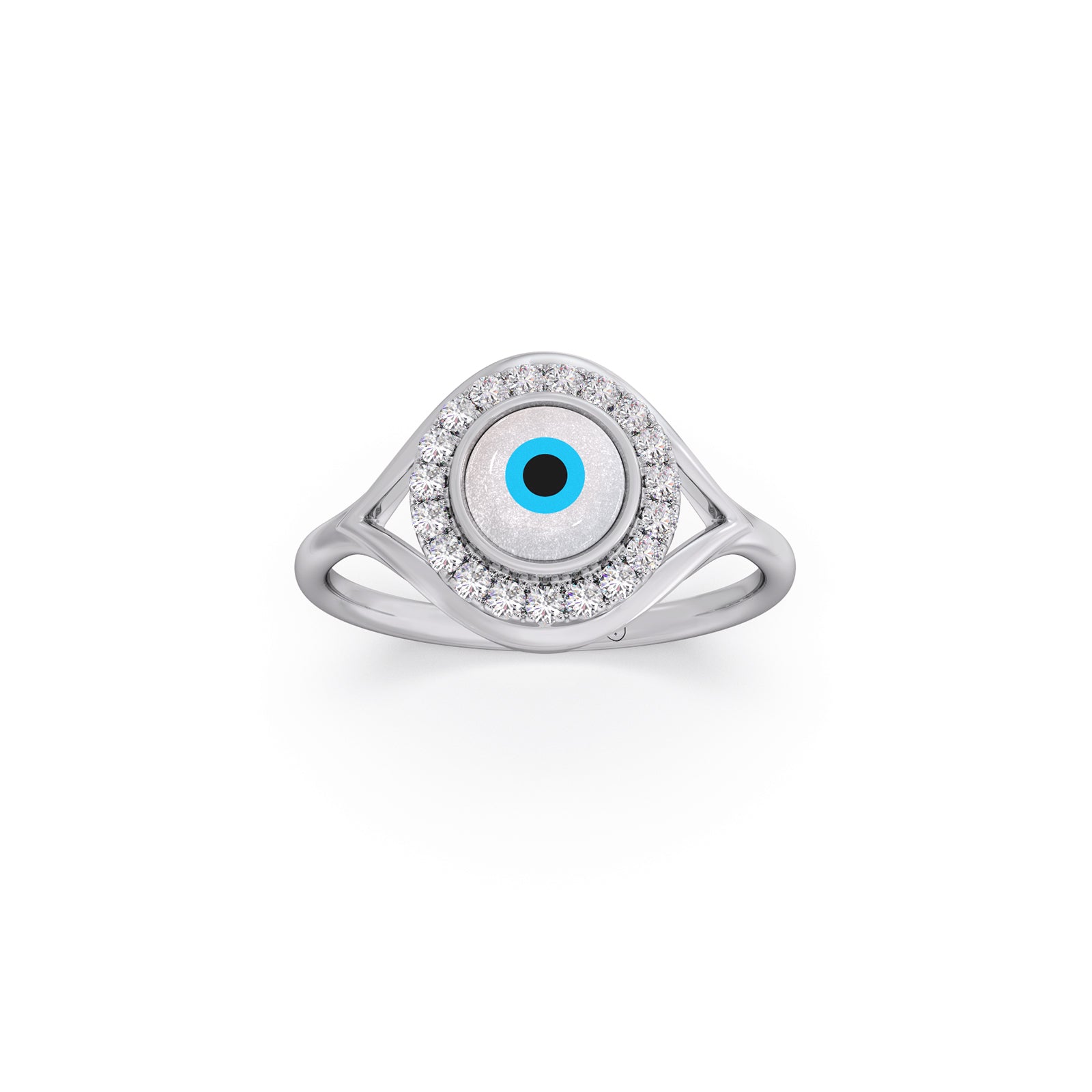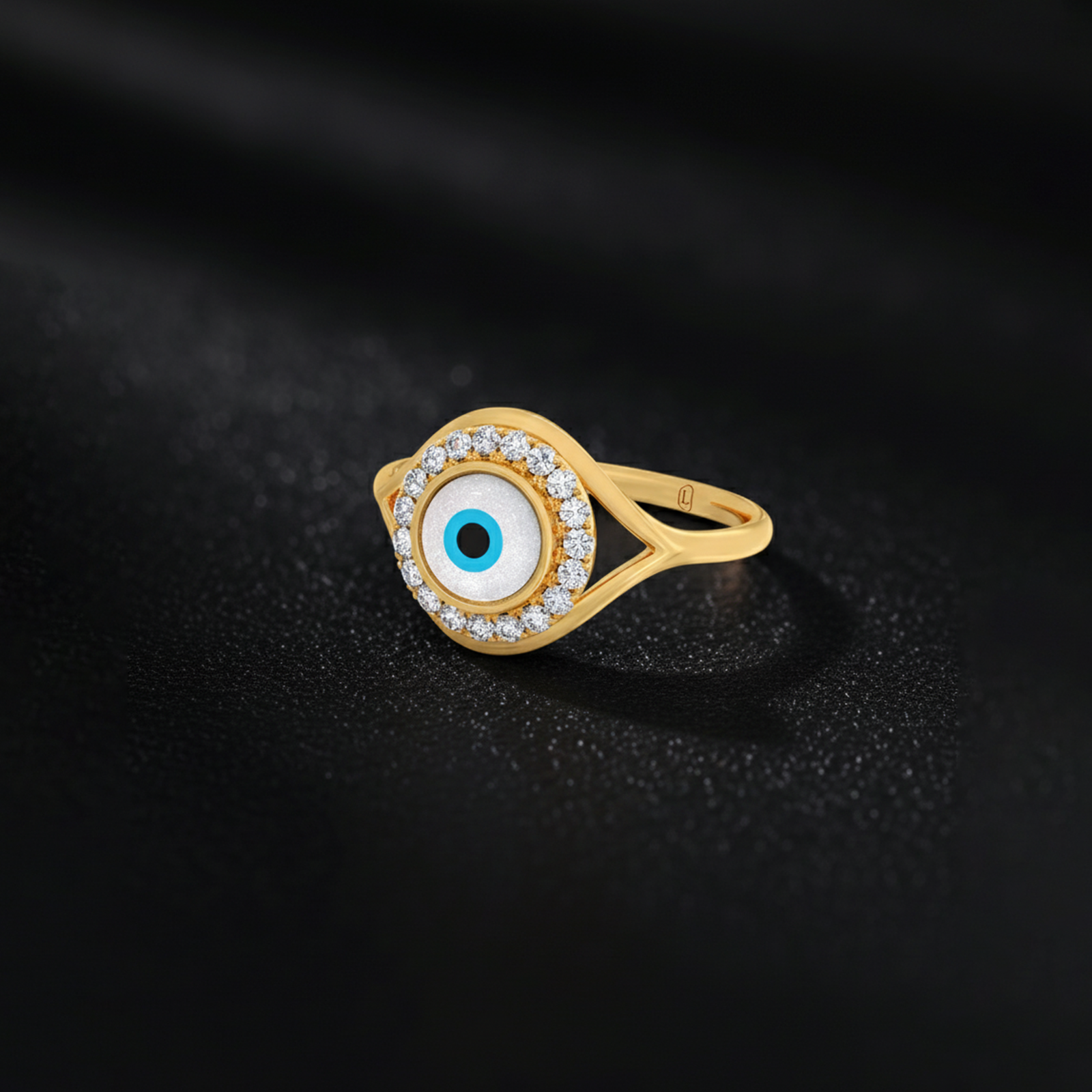 This stunning teardrop Evil Eye ring features a dazzling diamond halo, merging ancient symbolism with modern elegance. It's a timeless piece designed to bring luck and protection while sparkling brilliantly on your hand.