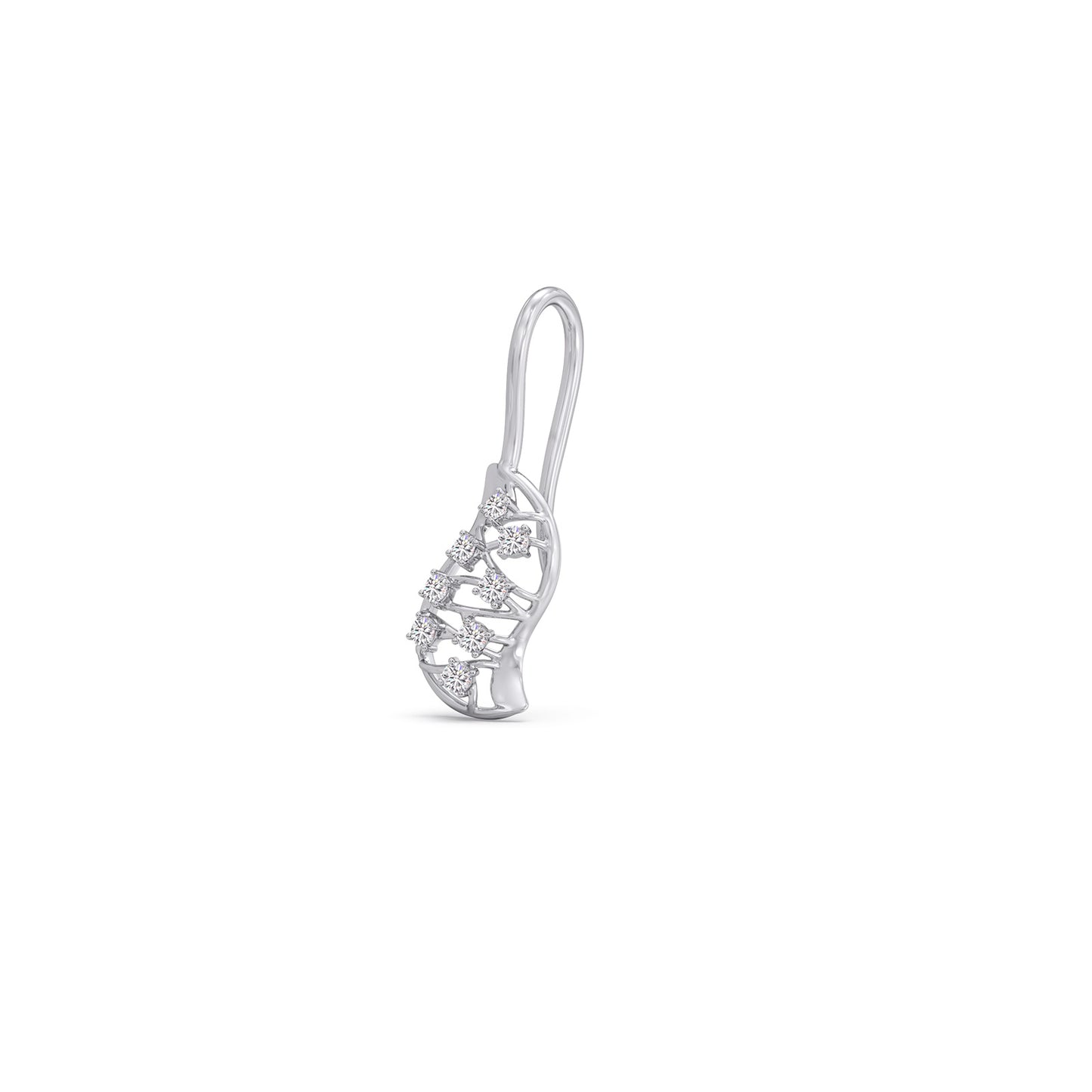 The Evolve Diamond Earrings mirror the pendant’s design, featuring a cocoon-inspired silhouette and round diamonds that capture light in a delicate, evolving pattern.