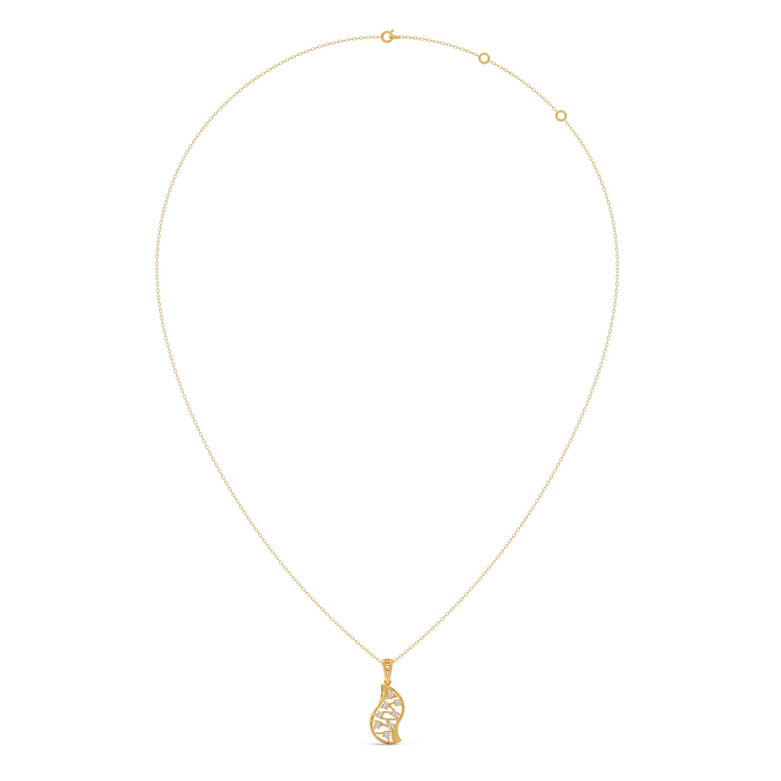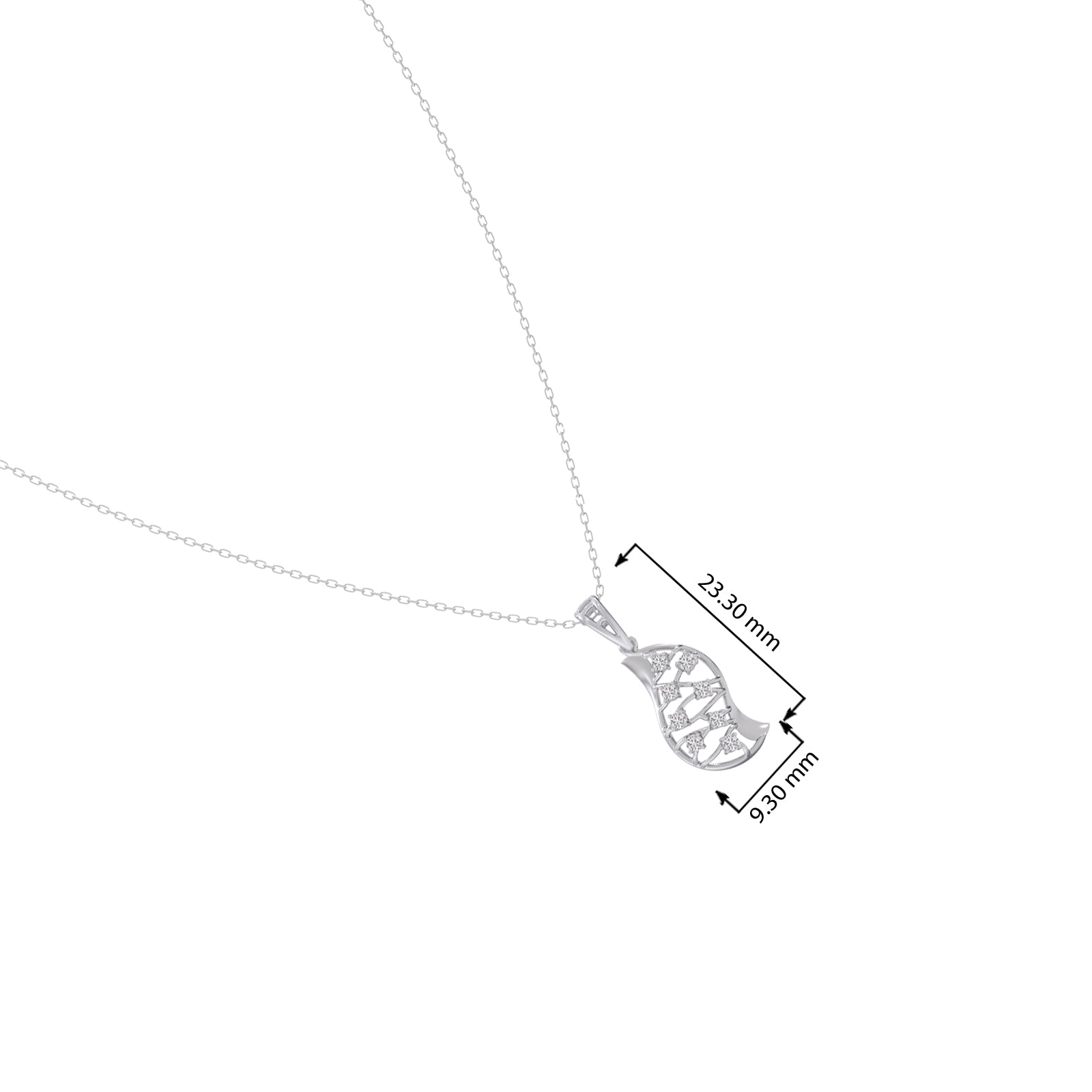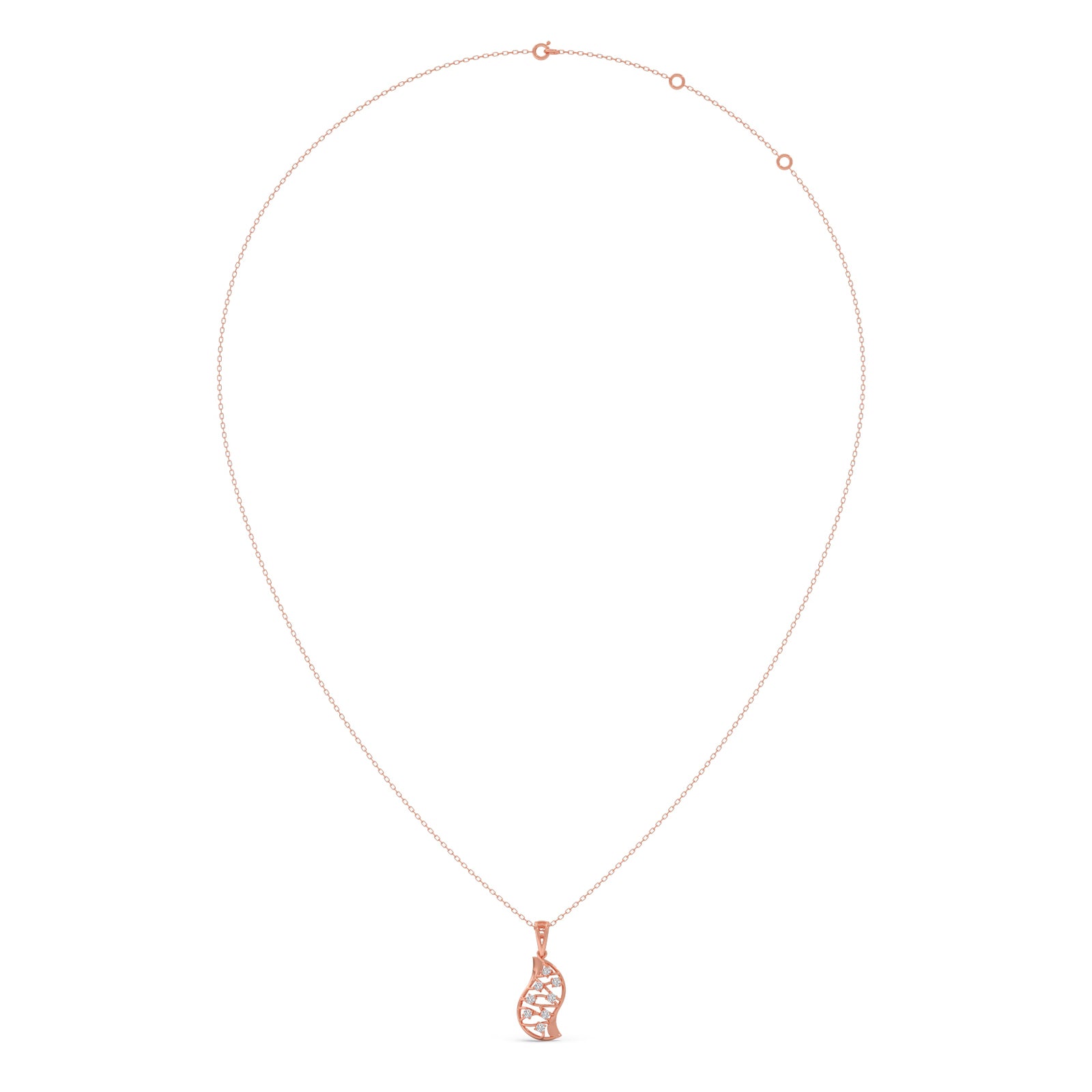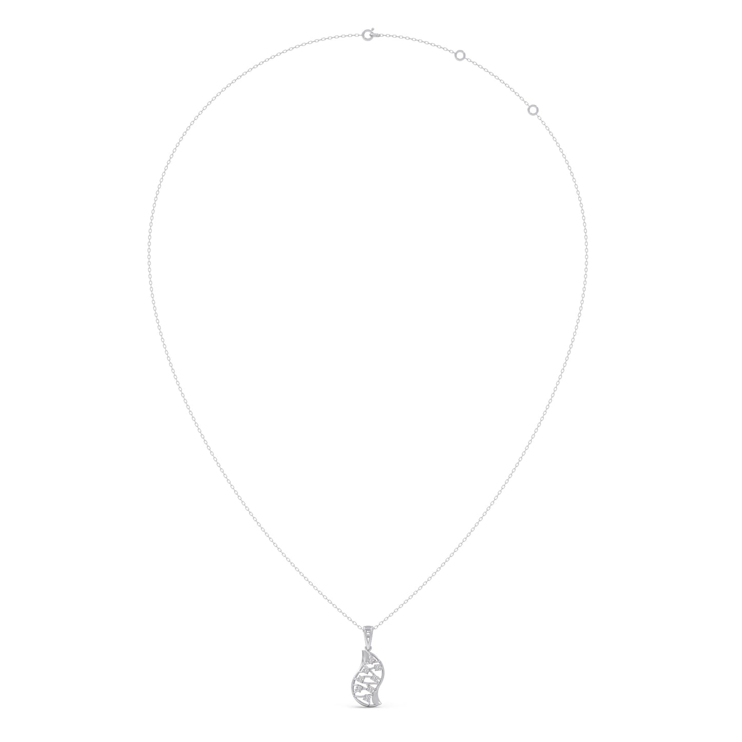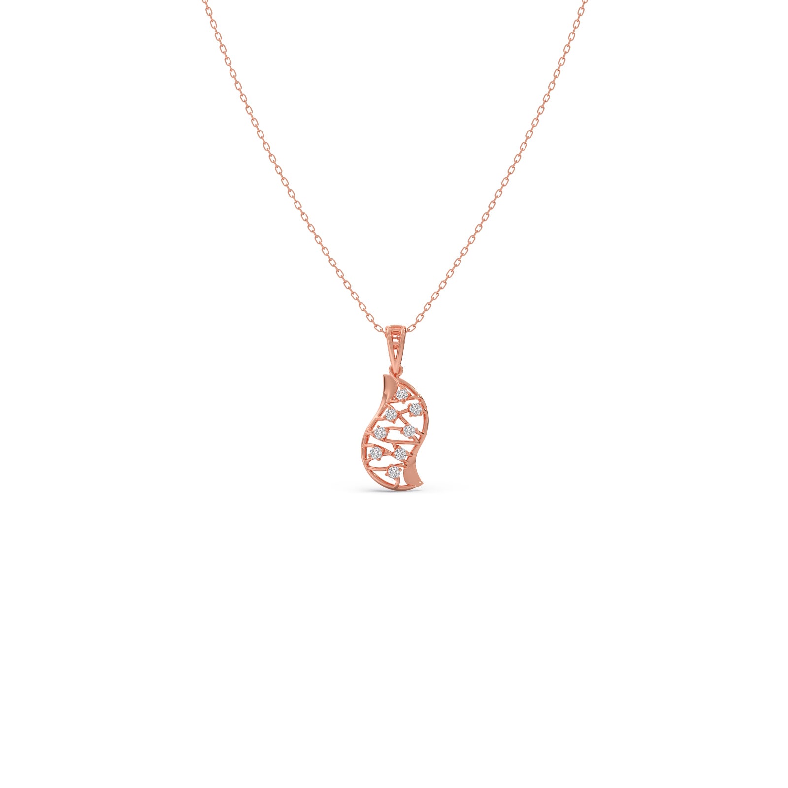 The Evolve Diamond Pendant symbolizes transformation with its cocoon-shaped form, detailed with shimmering round diamonds that reflect elegance in every curve.