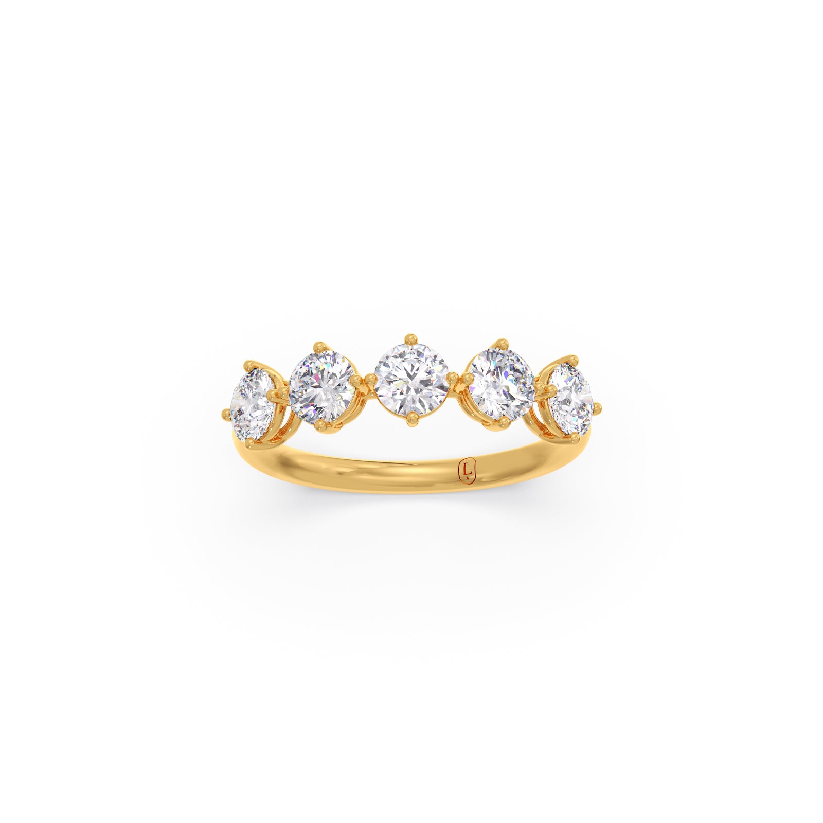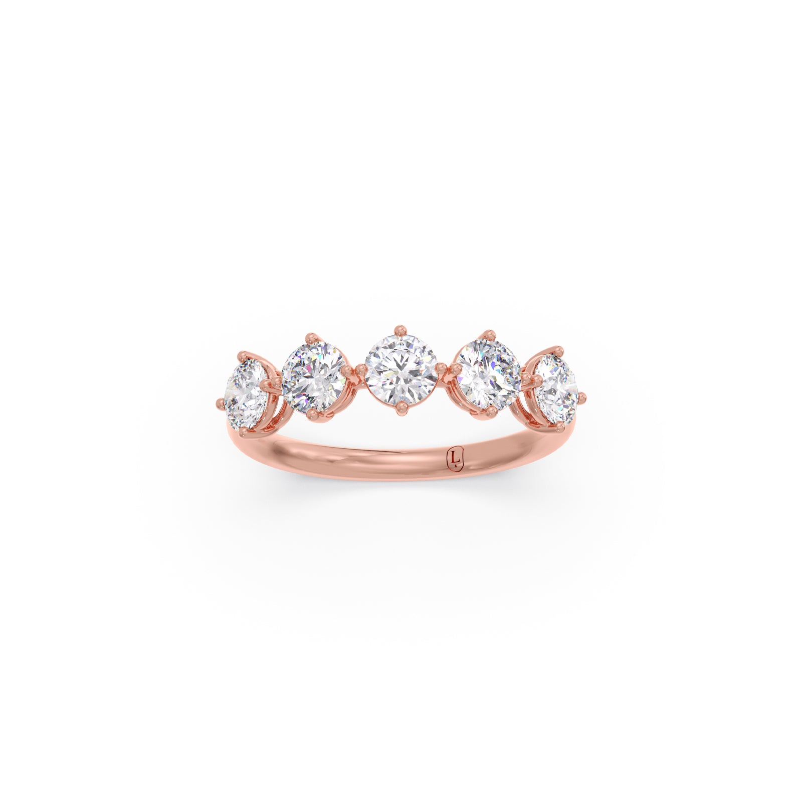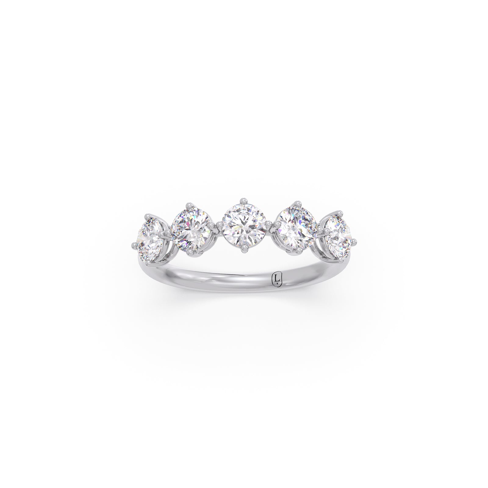 This elegant five-stone ring features Round Diamonds set at precise intervals, enhancing brilliance and creating a refined, graceful look. The balanced design adds sophistication, making it a timeless piece perfect for special occasions or everyday elegance. A stunning symbol of style and everlasting beauty.