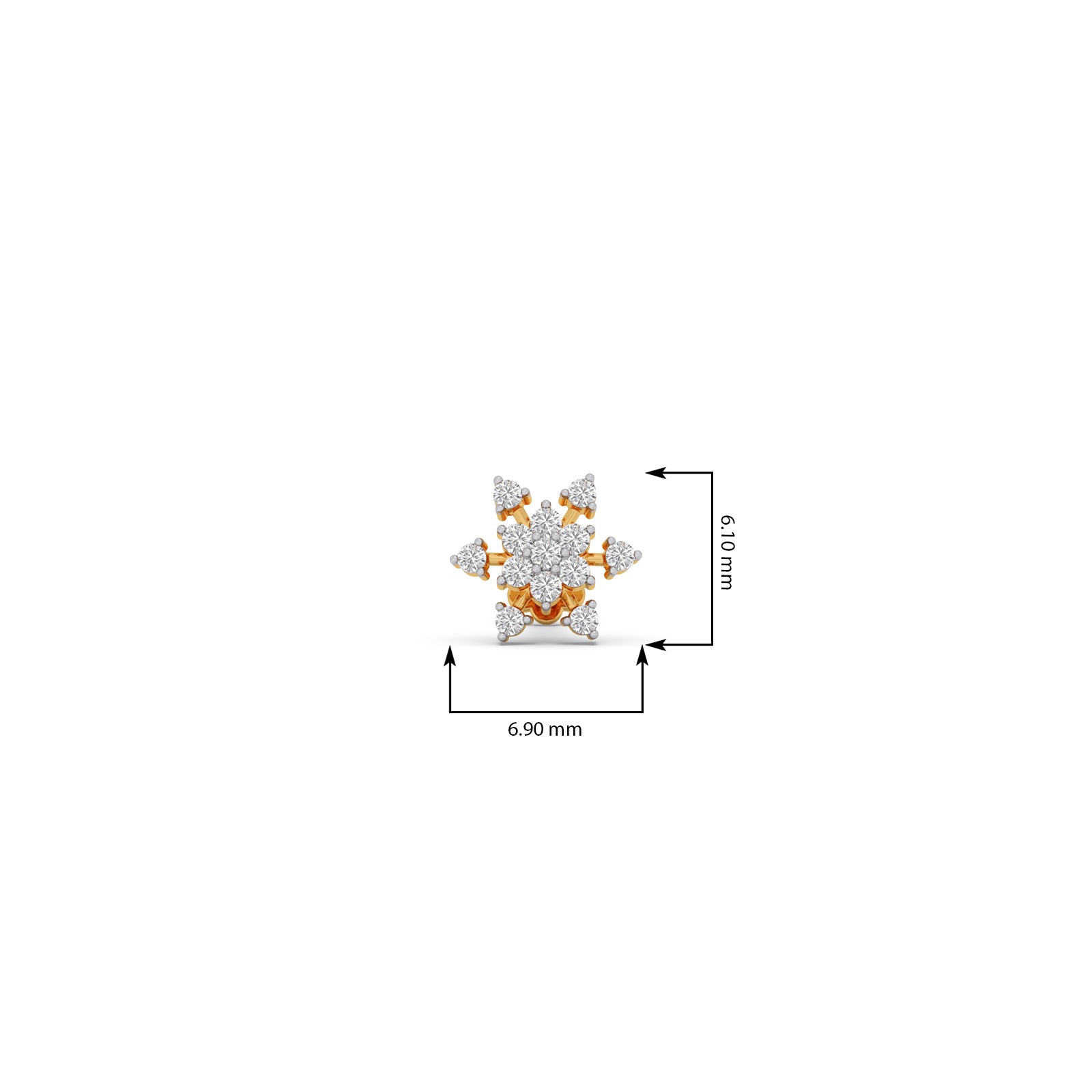 This Flare Cluster Diamond Nose Pin features a floret shape cluster arrangement of round diamonds. A perfect blend of tradition and modern grace, this piece adds a subtle yet sophisticated radiance to your everyday look.