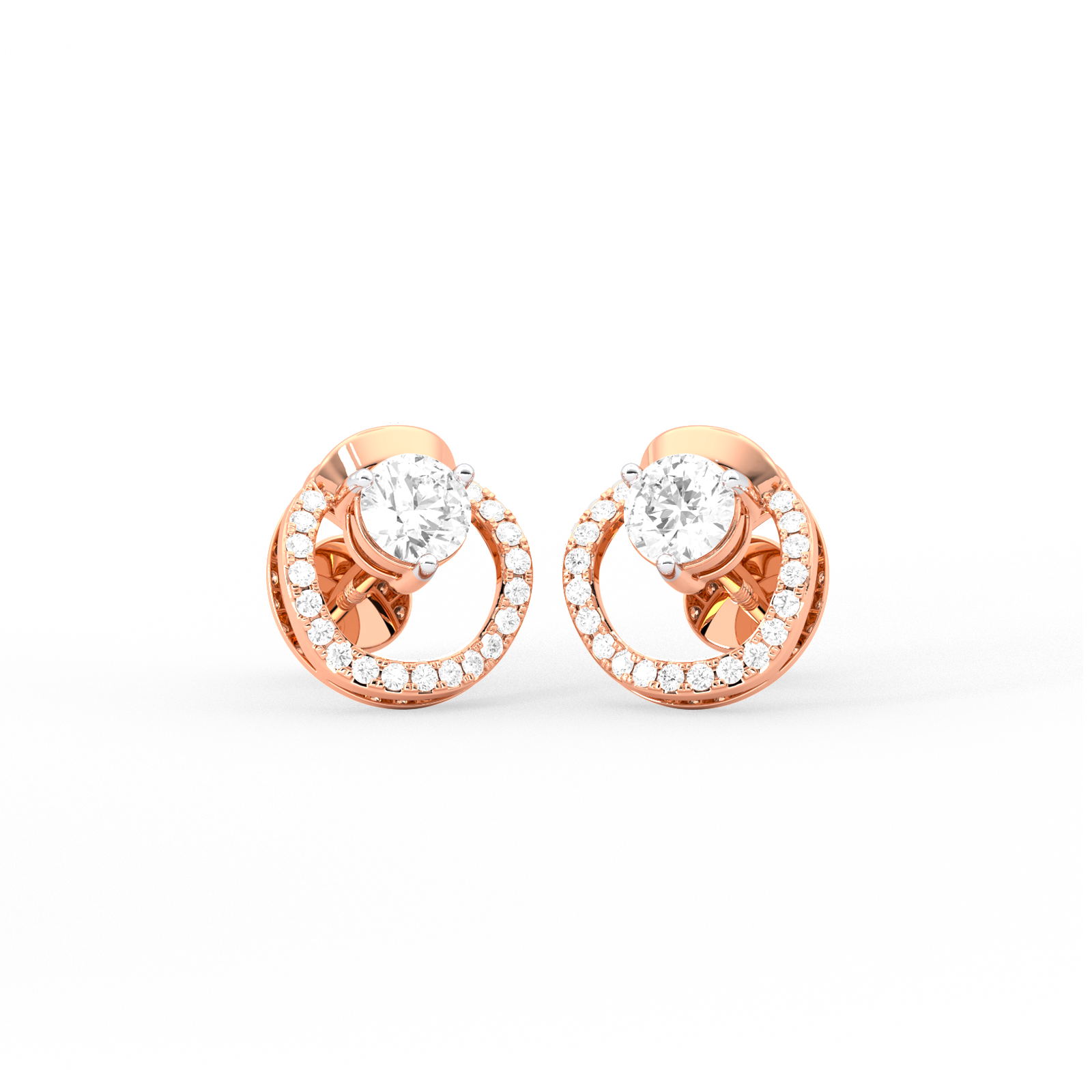 Floating Halo Round Diamond Stud Earrings
