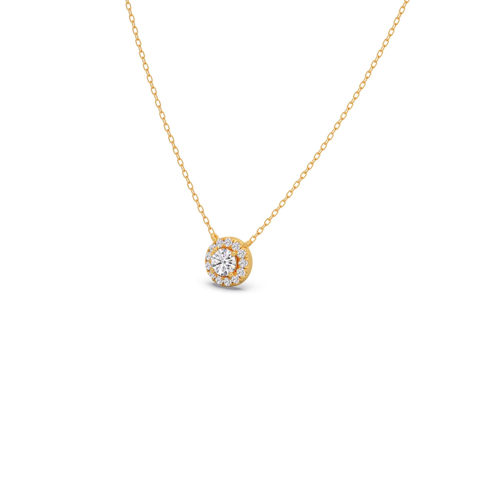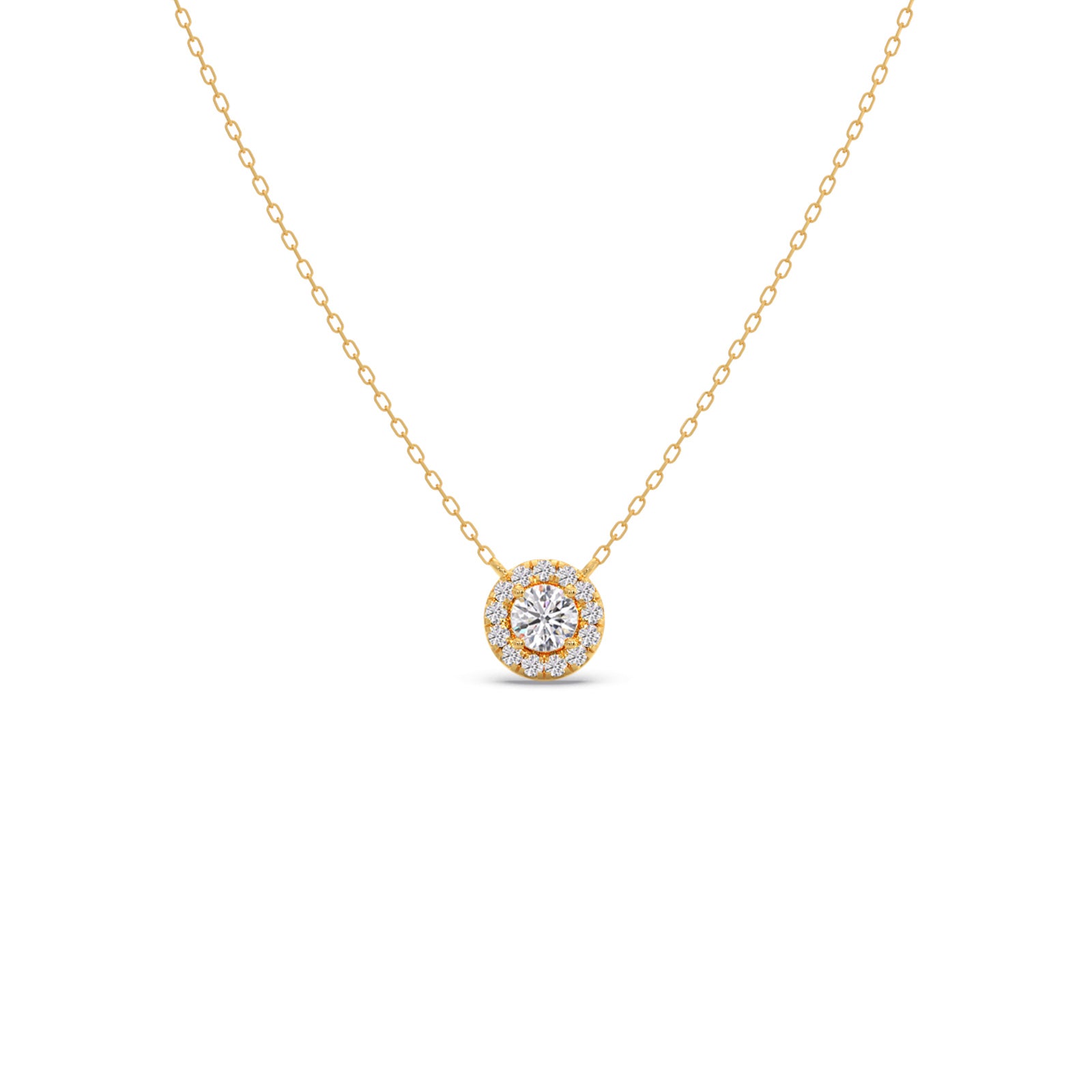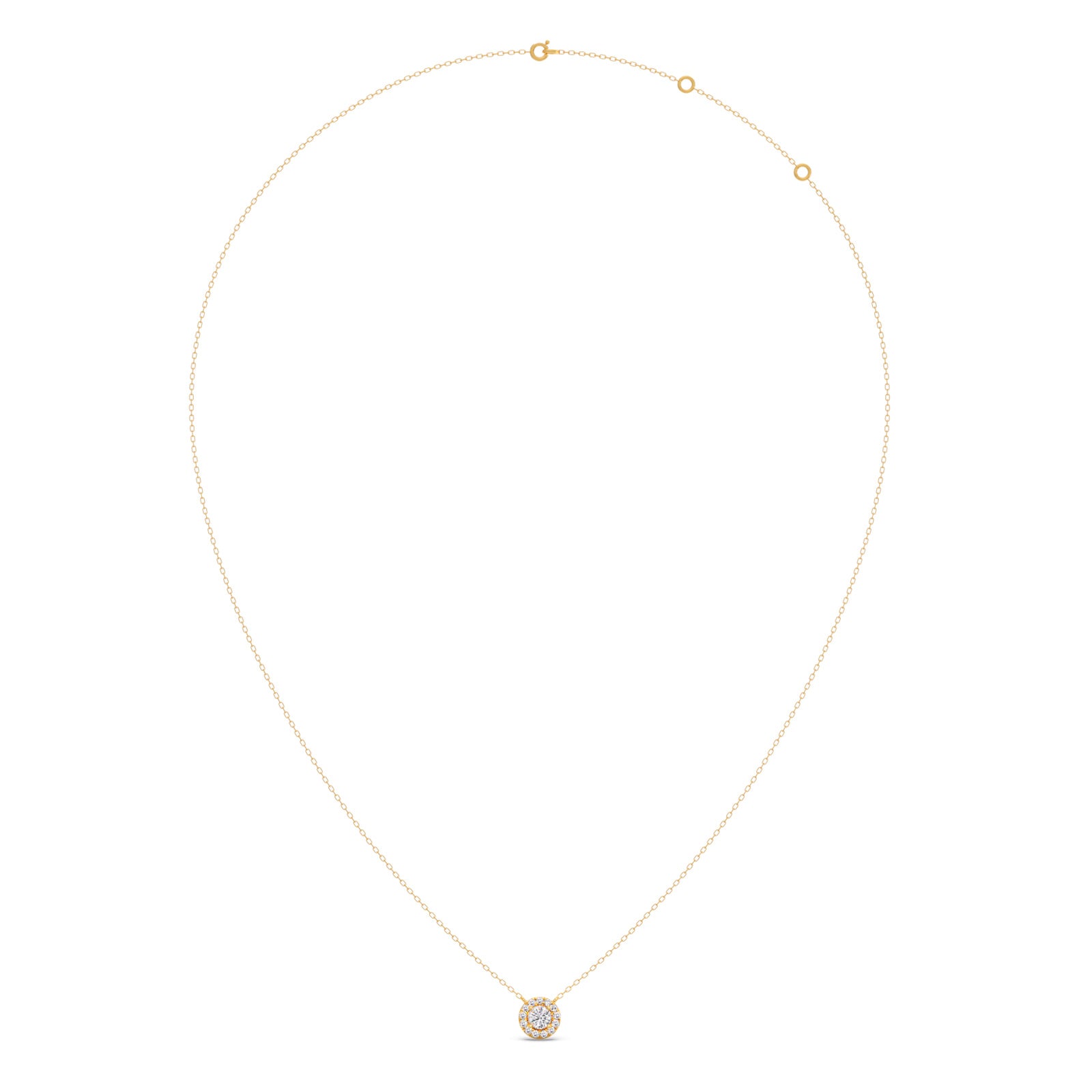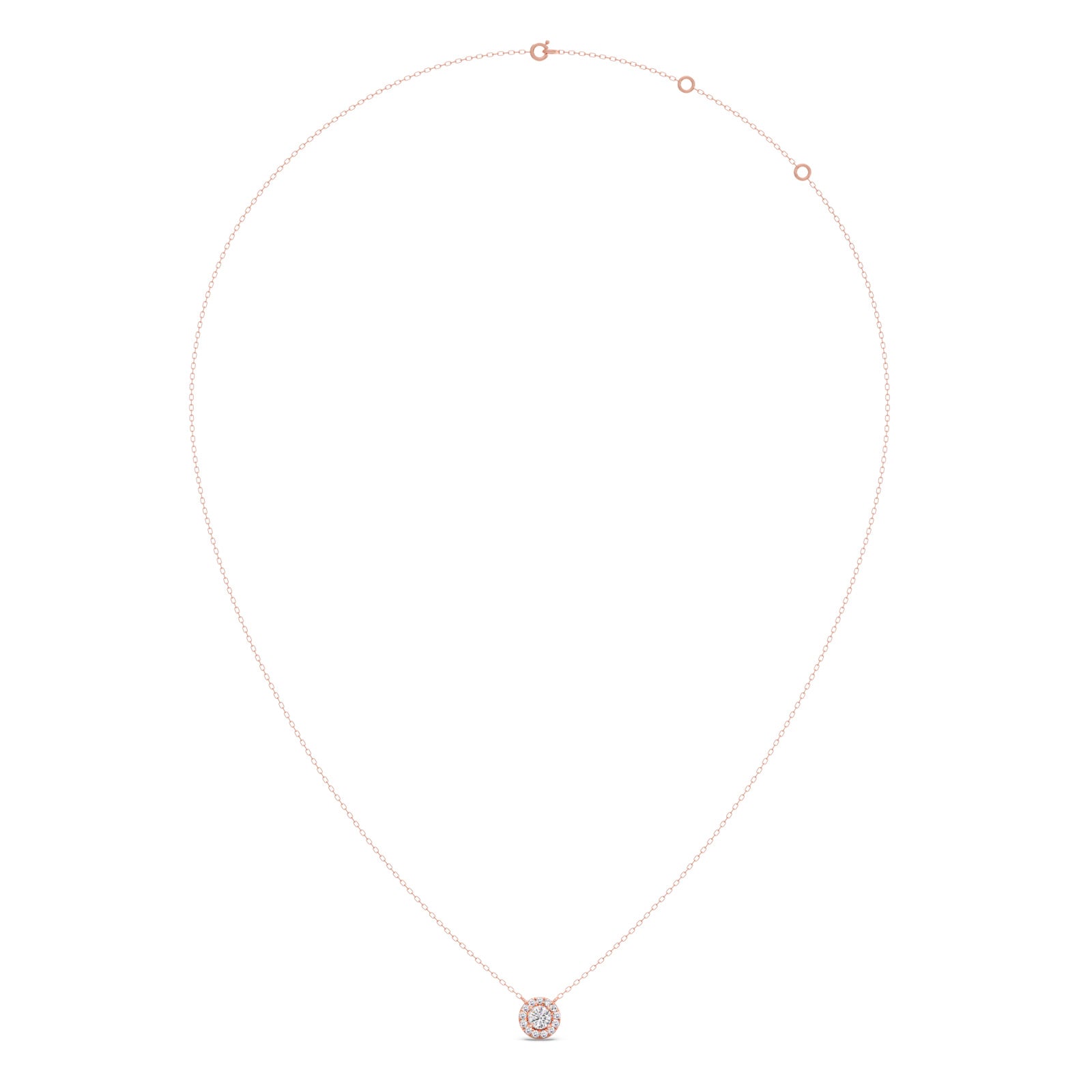 Adorn your neckline with a timeless classic. This elegant Round brilliant diamond is meticulously set to create a stunning "floating" effect, capturing and reflecting light with every move. A symbol of pure, everlasting beauty, it's a piece you'll treasure forever.