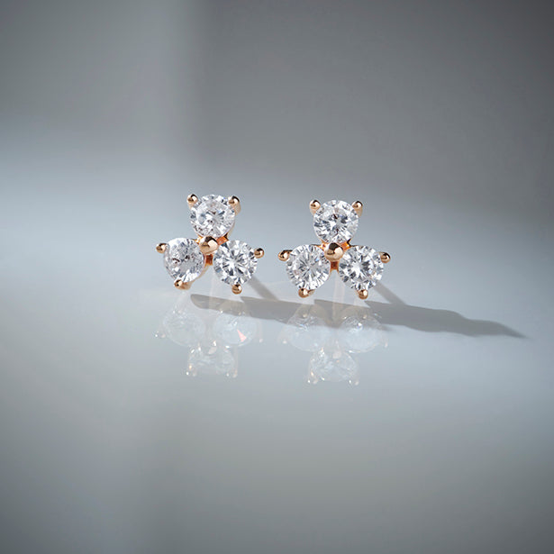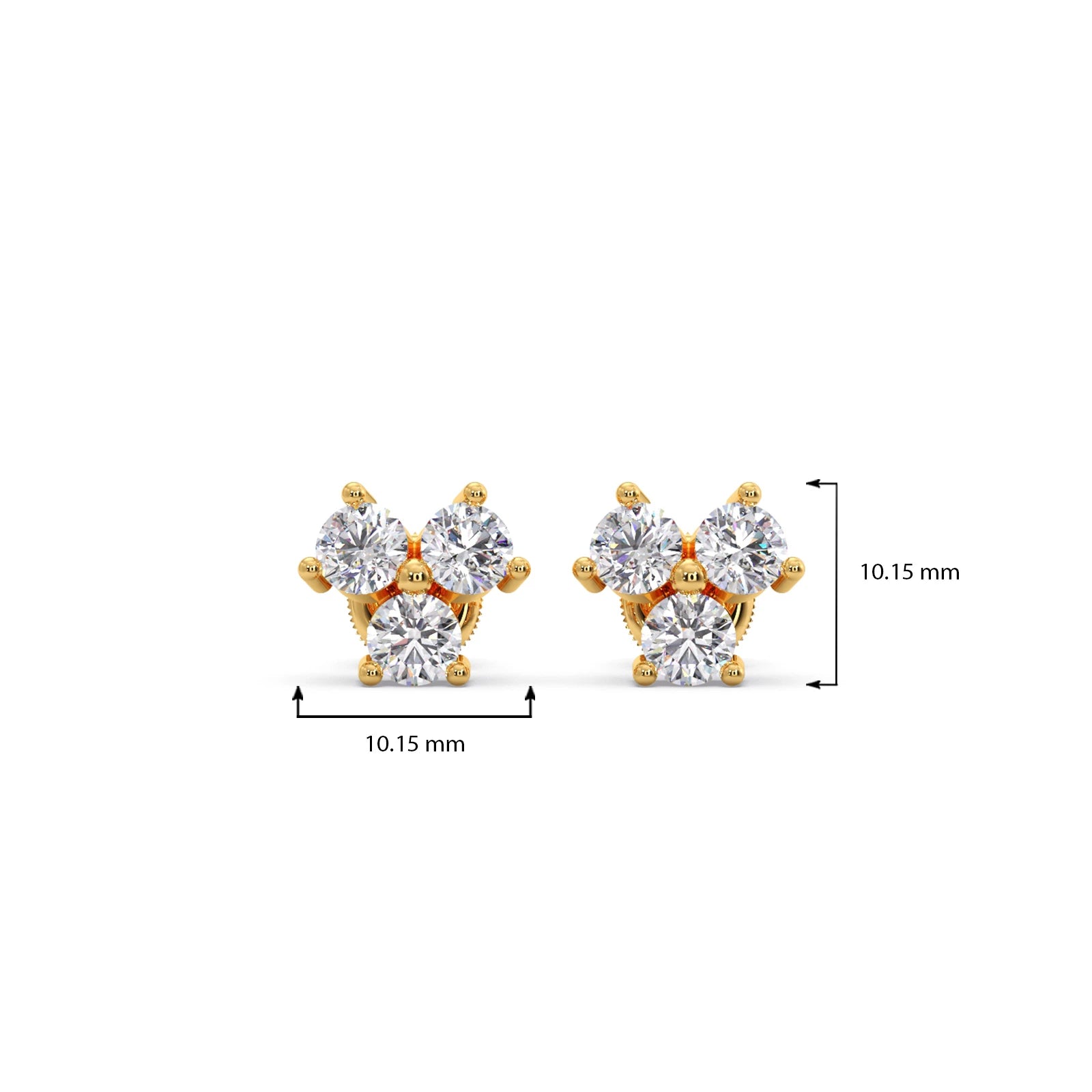 These exquisite gold stud earrings feature a delicate floral cluster design, where sparkling diamonds come together to form a captivating bloom. The intricate arrangement creates a radiant effect, perfect for adding a touch of feminine elegance. These earrings are a sophisticated choice for any occasion.