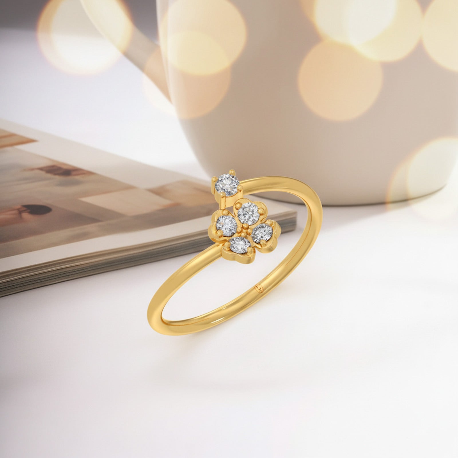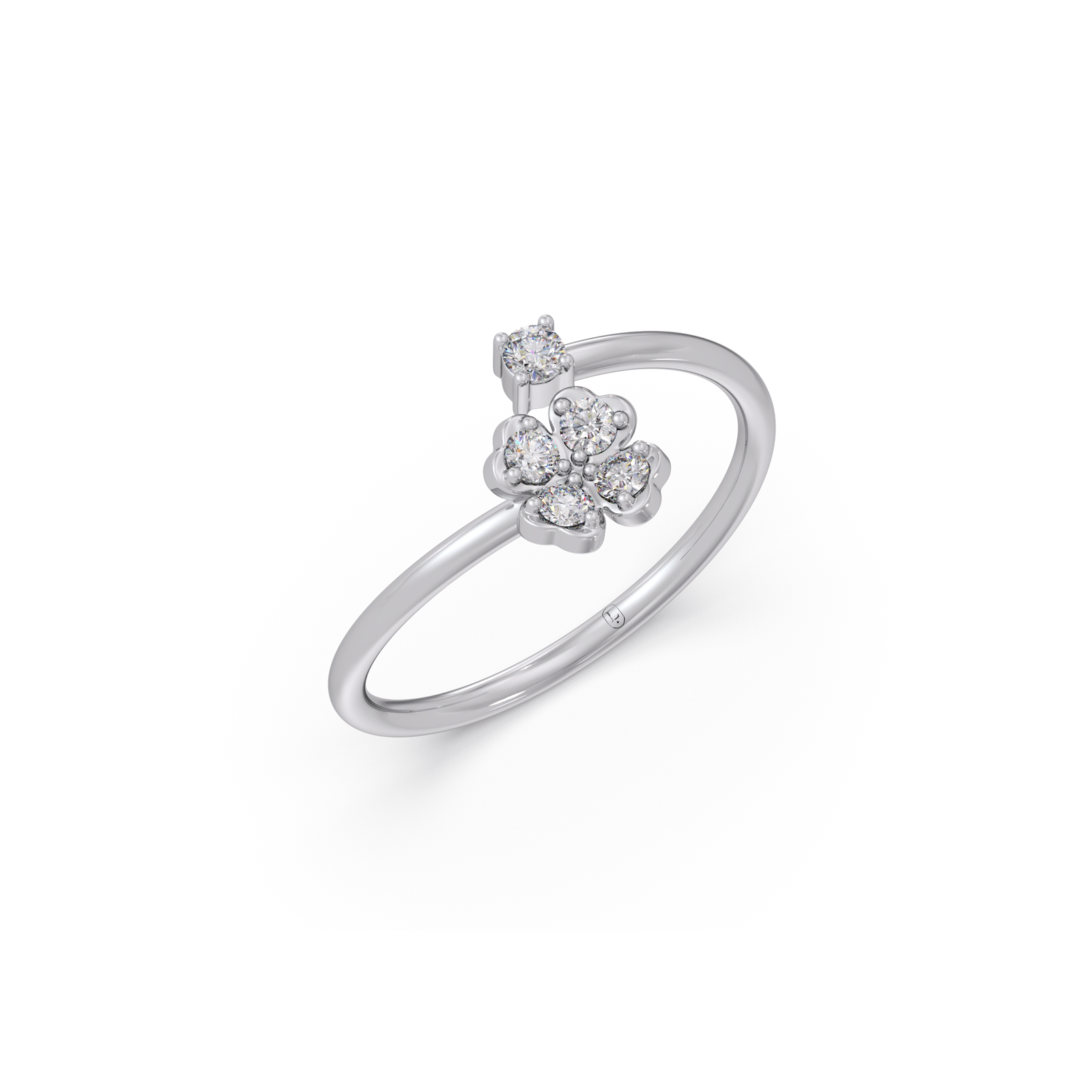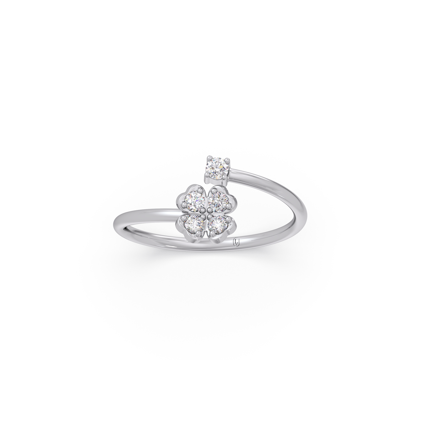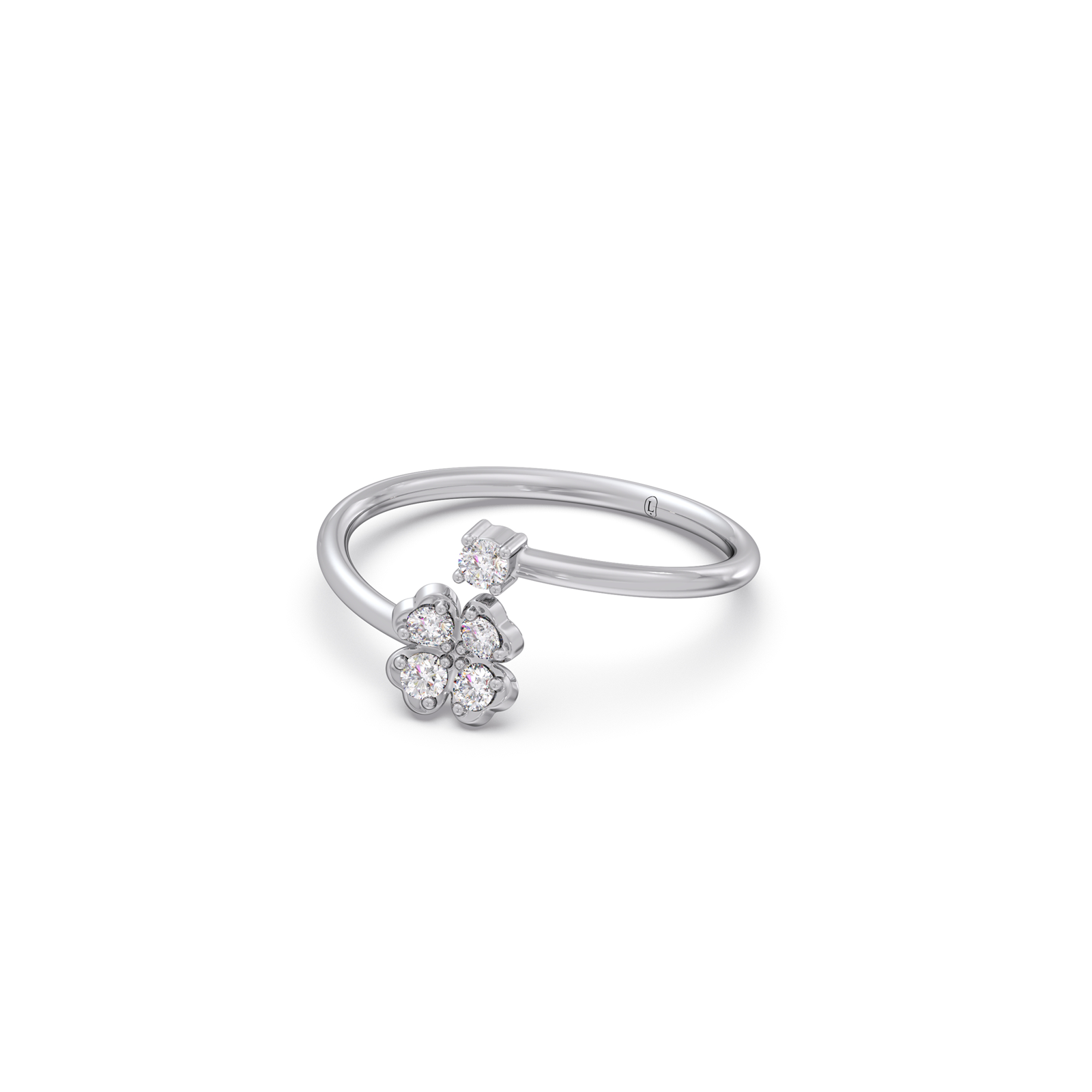 A timeless piece, this ring features a dazzling solitaire embraced by a diamond floral halo. It offers the look of a large bloom while remaining elegantly understated. A perfect symbol of everlasting love.