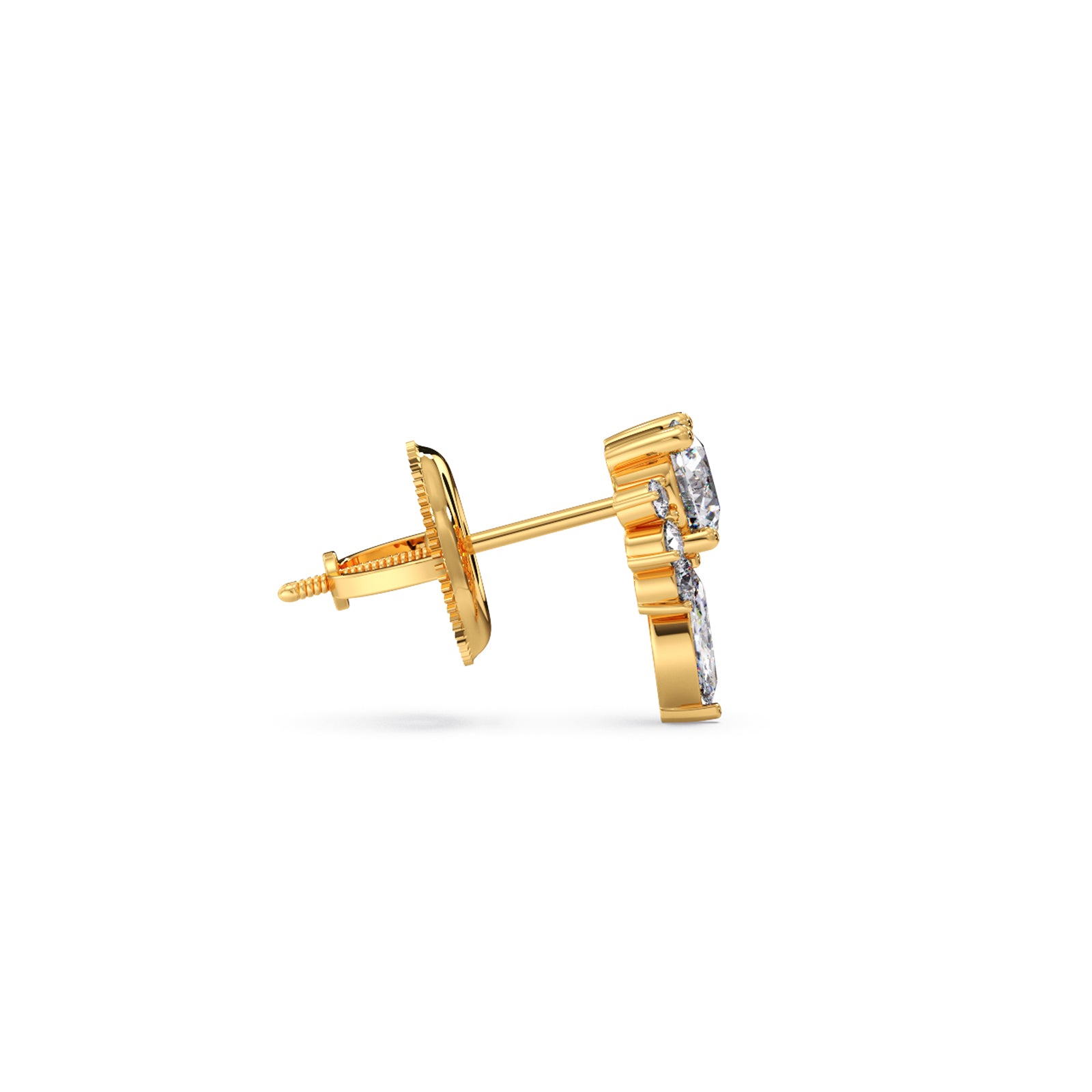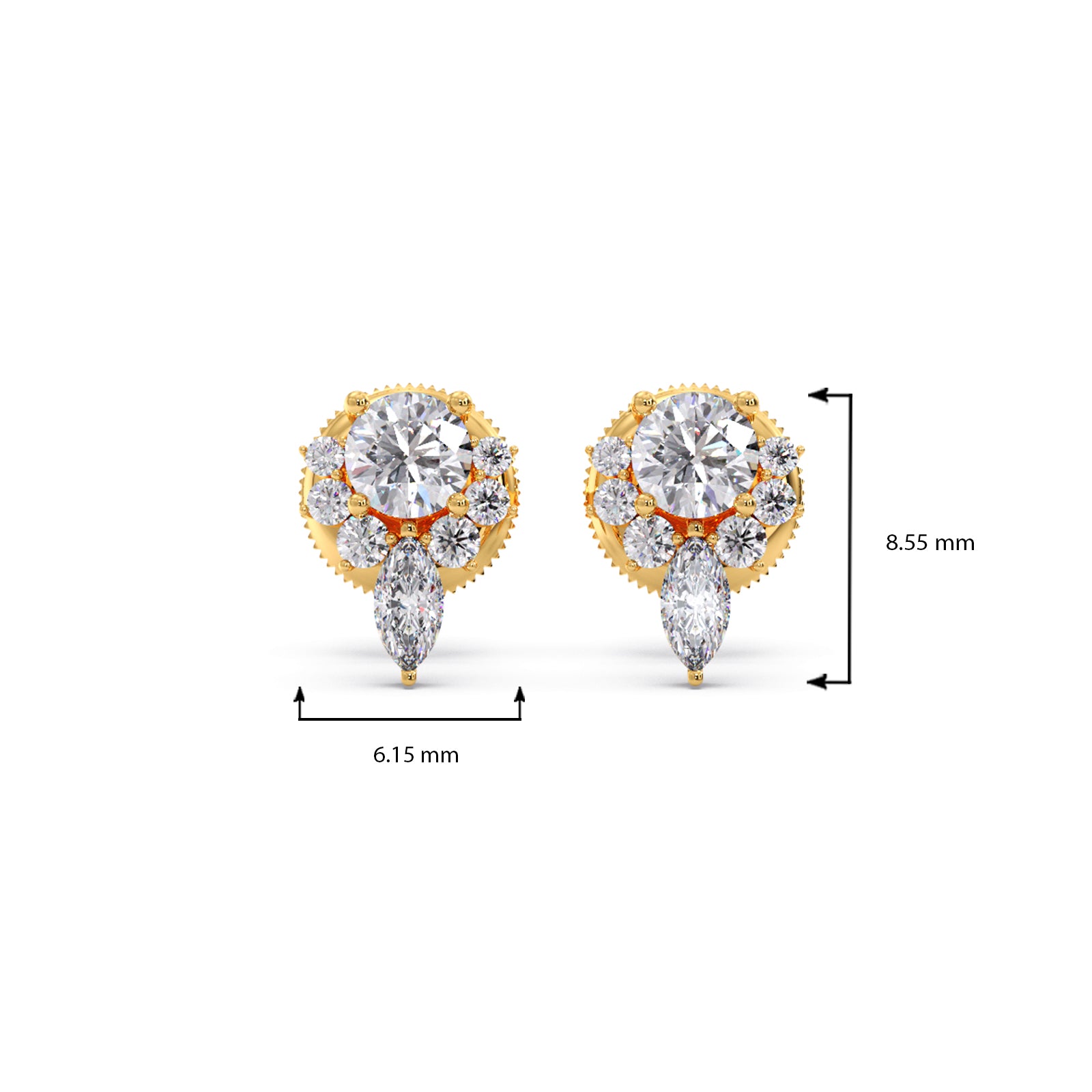 A pair of elegant stud earrings featuring a floral cluster of diamonds with a pear-shaped diamond accent. The earrings are set in a classic rose gold setting.