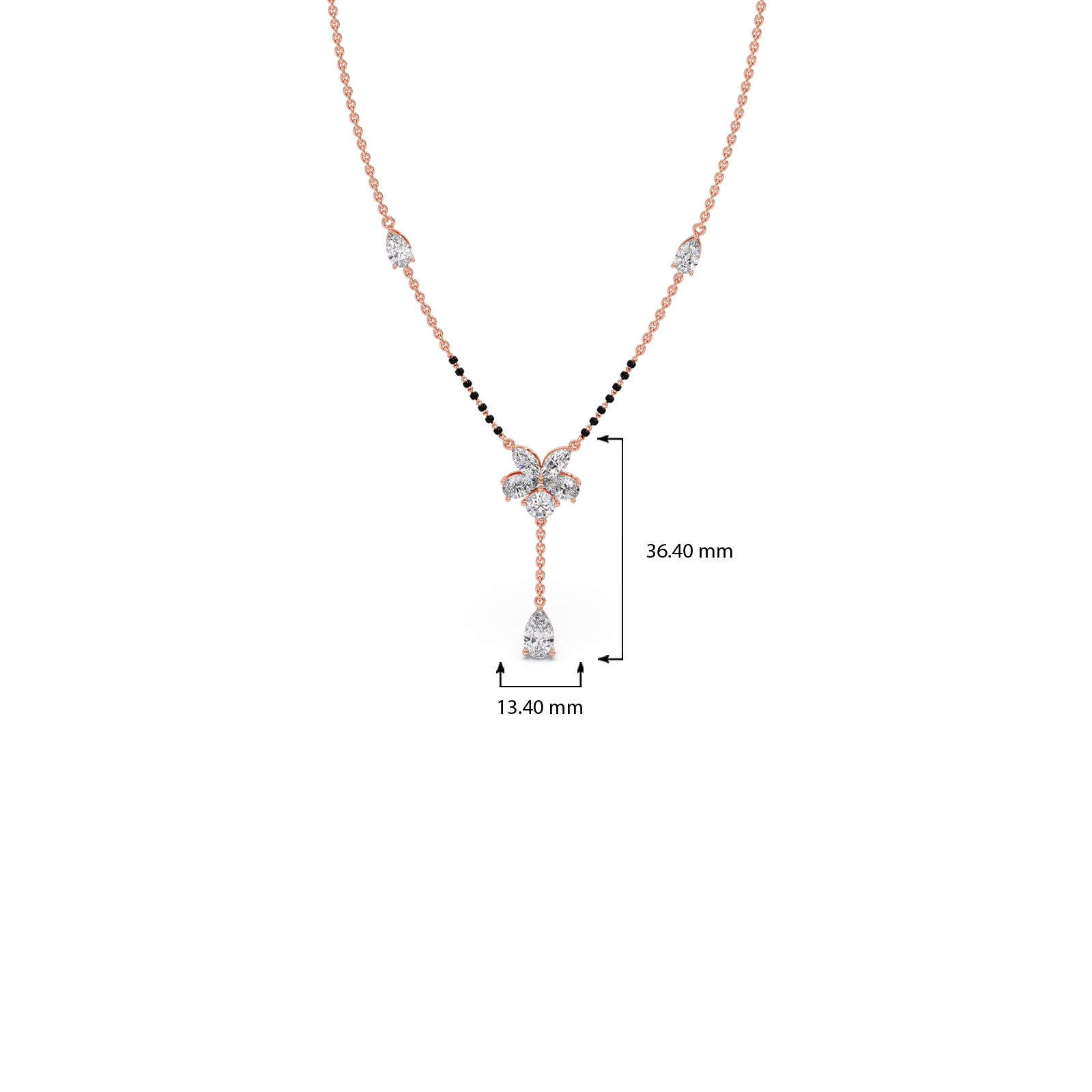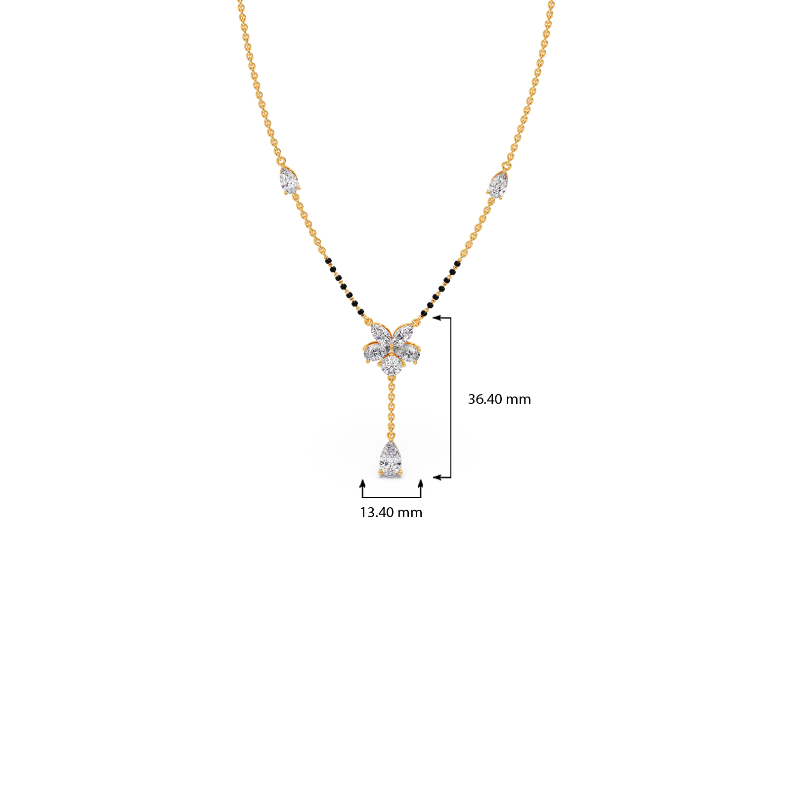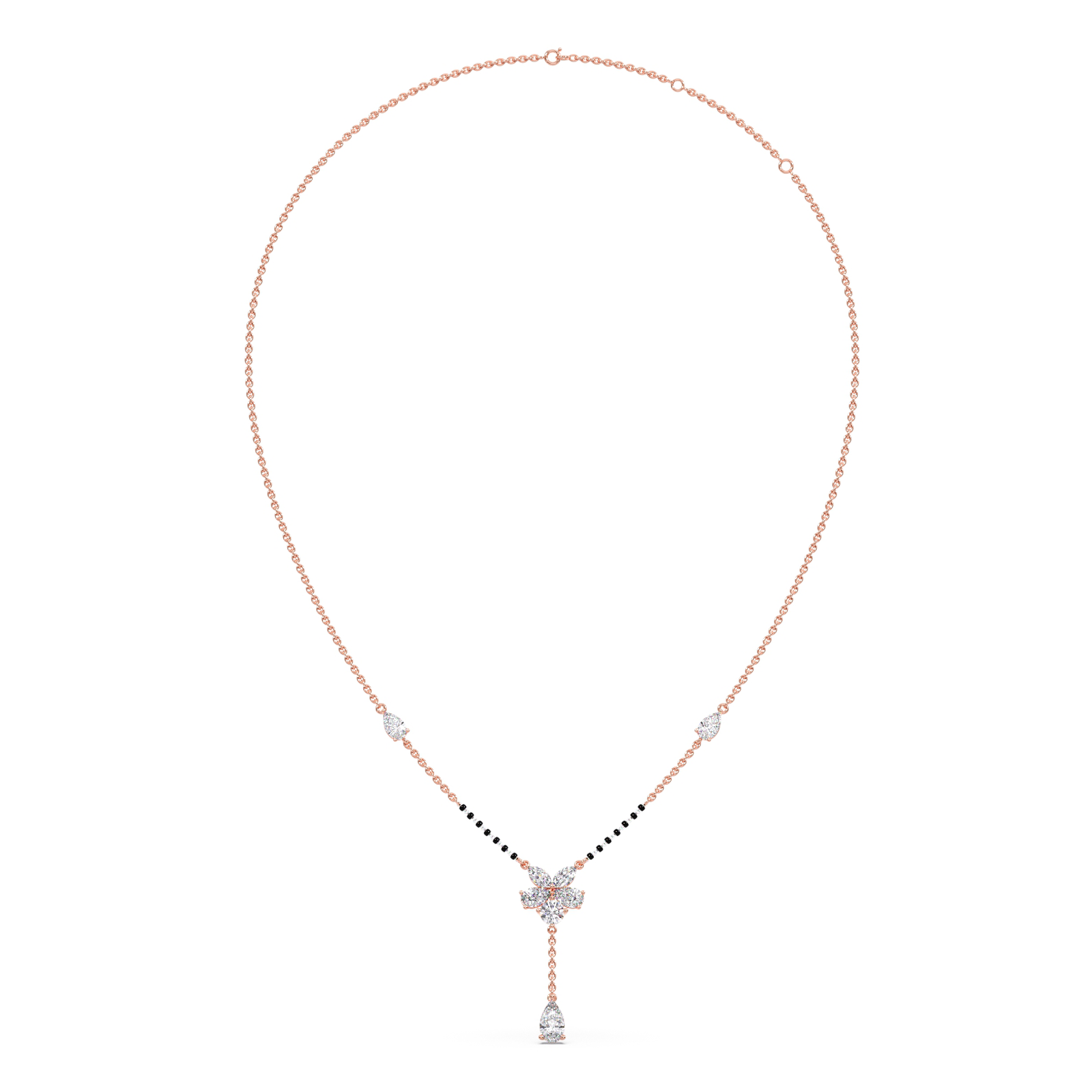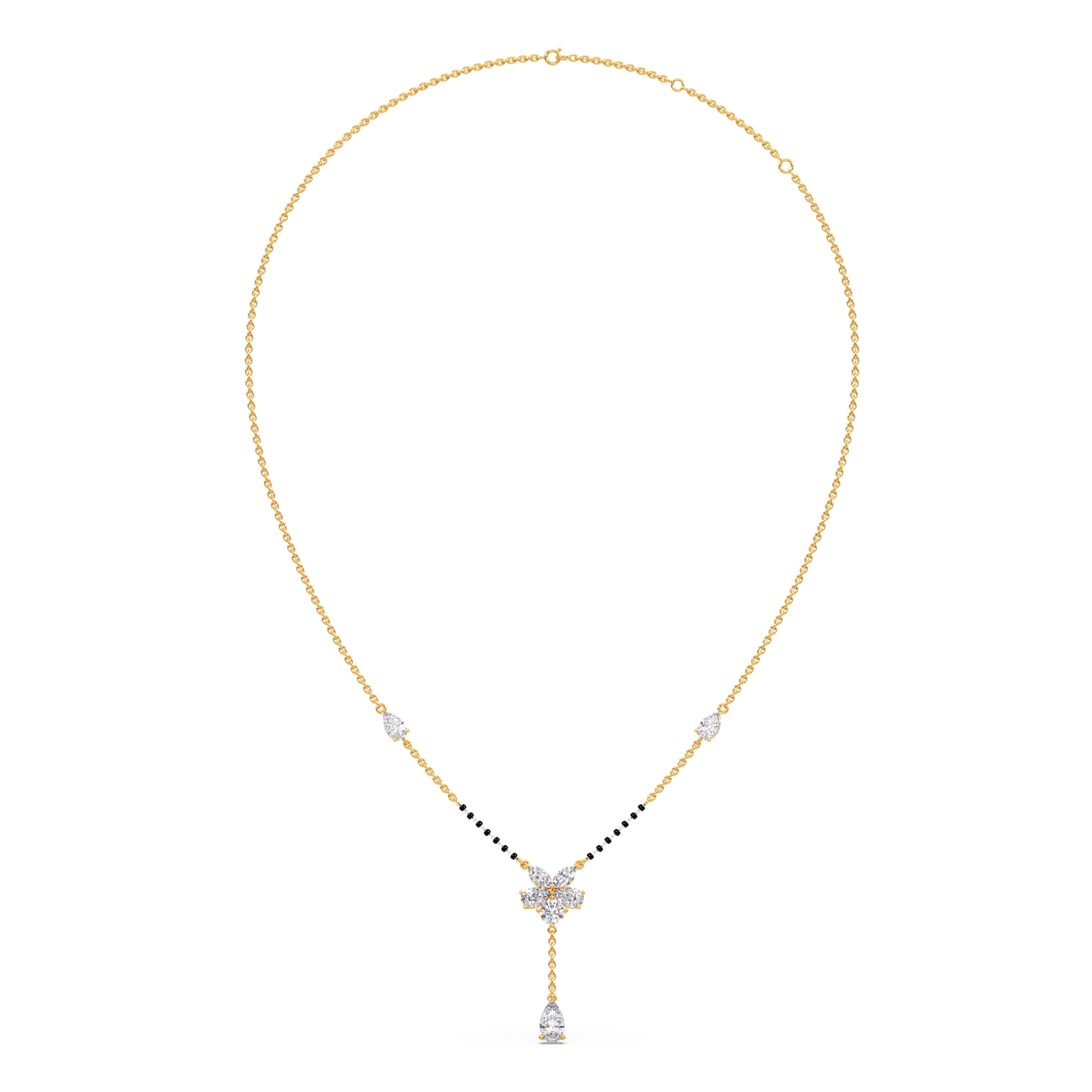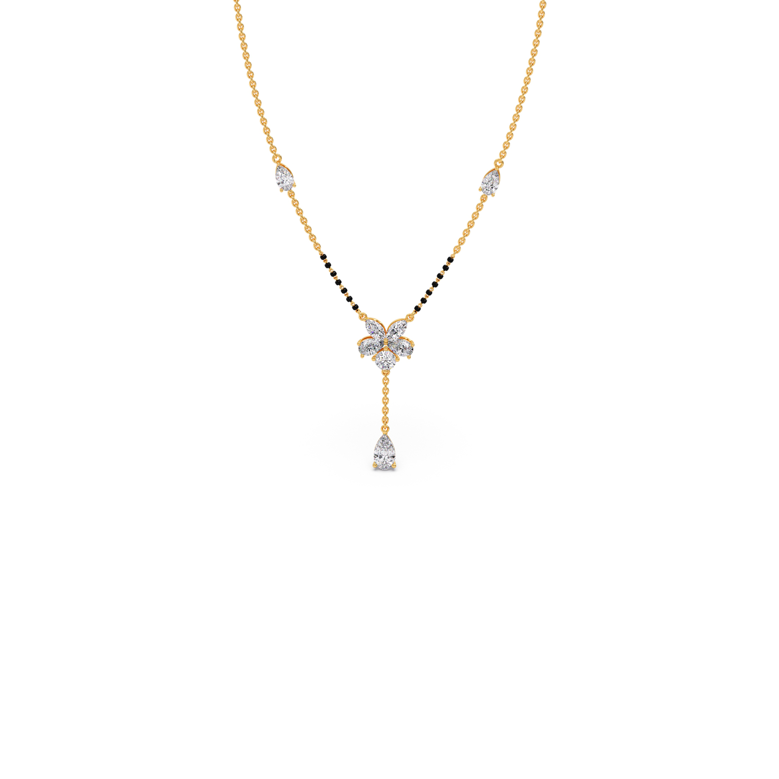 The Floral Diamond Drop Mangalsutra Necklace is where tradition meets elegance. With a sparkling floral design and a delicate drop pendant, it’s a symbol of love, commitment, and a touch of grace—perfect for the modern bride who loves a blend of culture and charm.