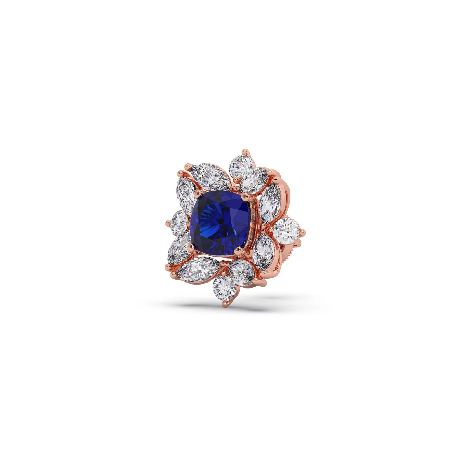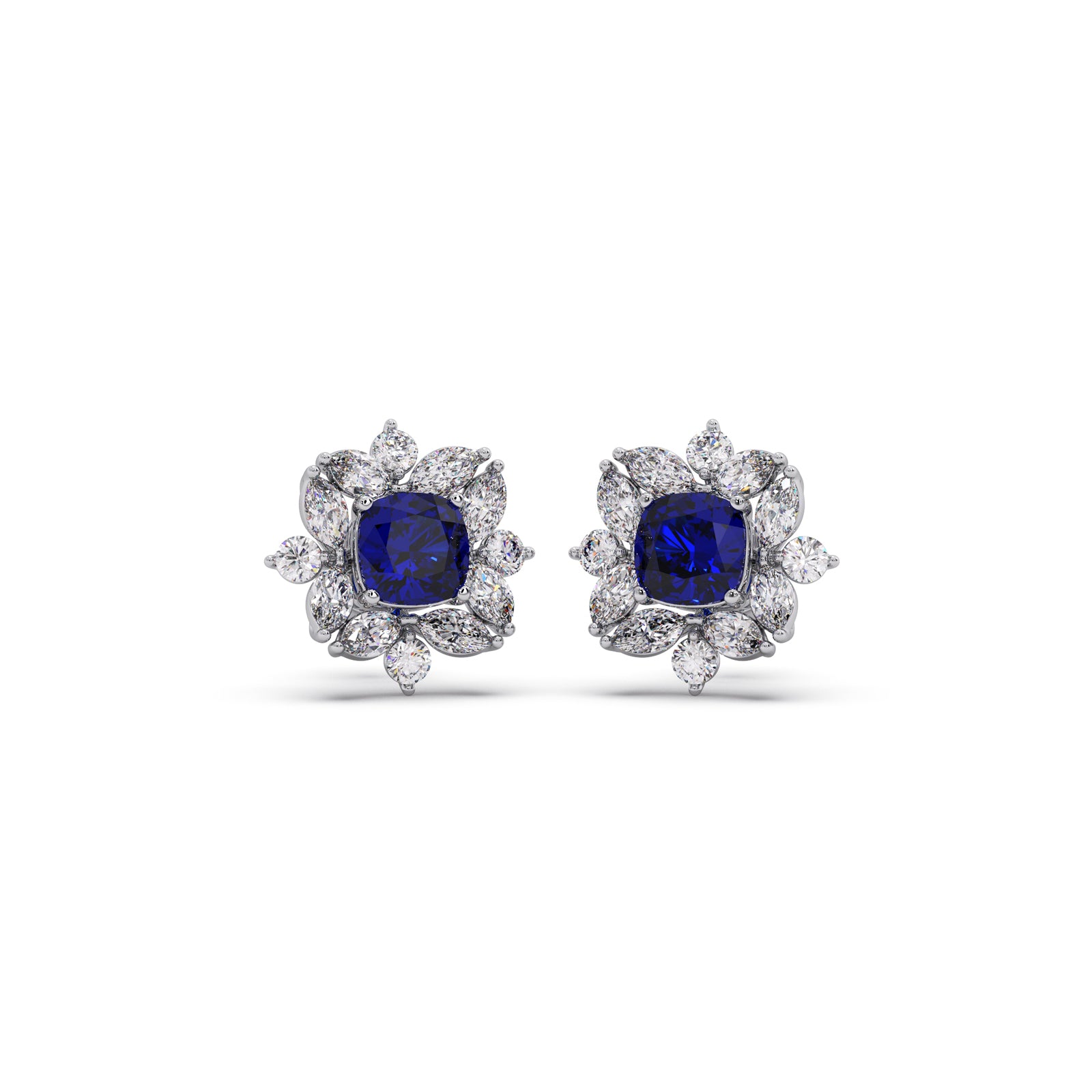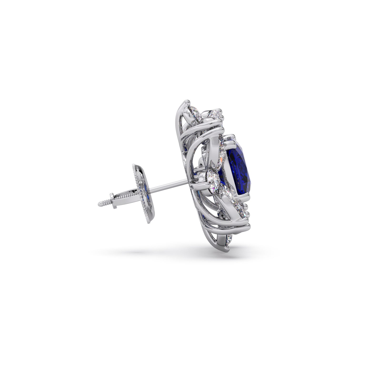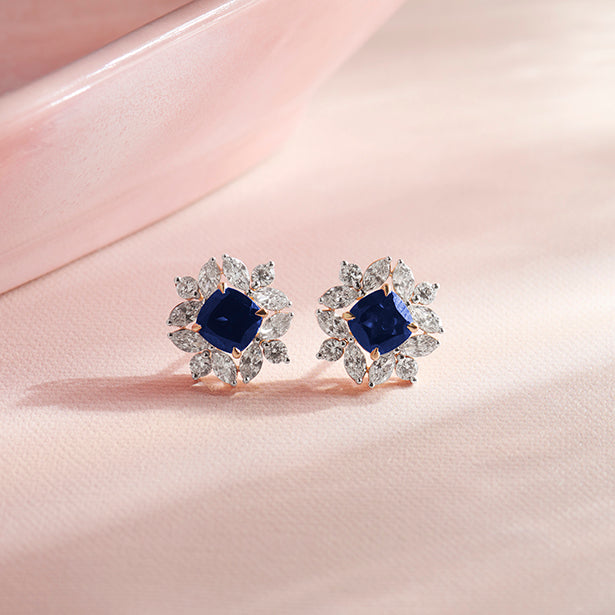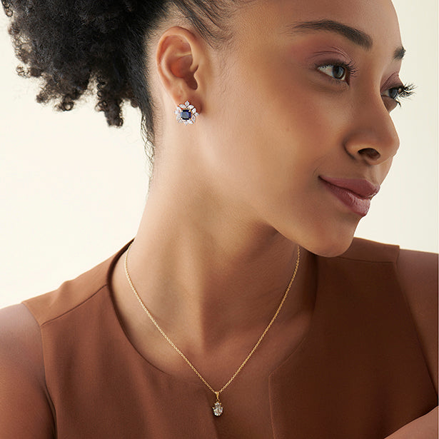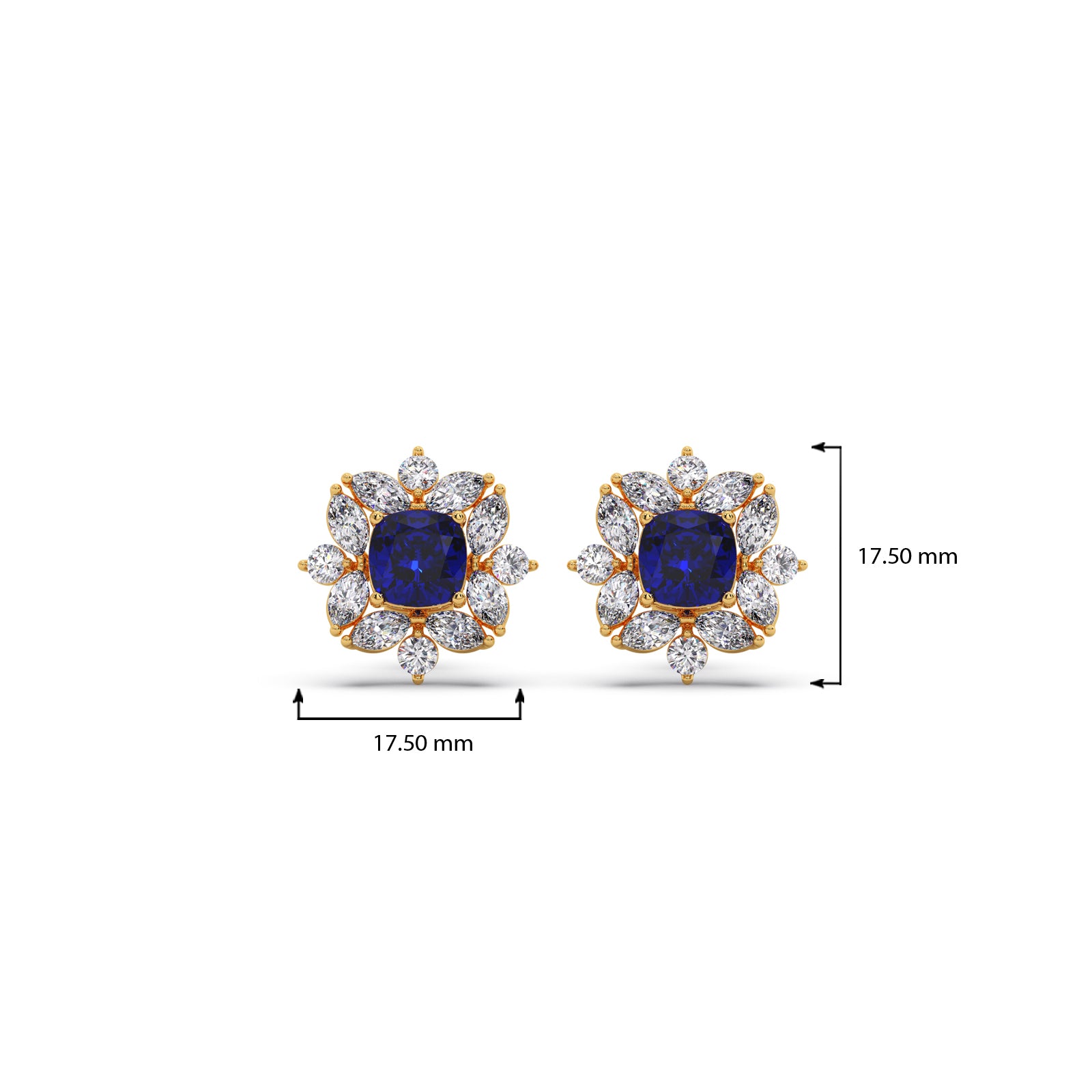 Adorn your ears with the delicate beauty of these floral halo stud earrings. A vibrant blue gemstone sits at the center of a meticulously crafted floral design, surrounded by a halo of sparkling accents. This charming combination evokes a sense of natural elegance and subtle sophistication — perfect for adding a touch of whimsical charm to your everyday style.