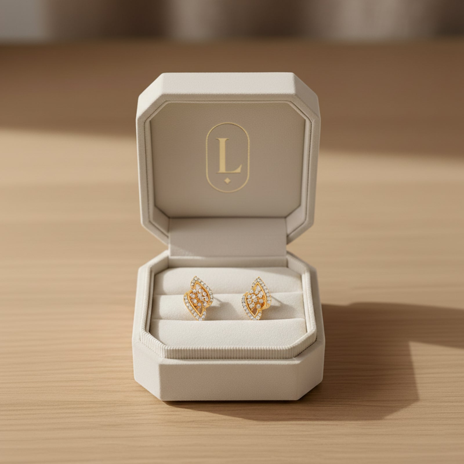 Embrace timeless beauty with our Floral Mirage Diamond Stud Earrings. Inspired by blooming petals, each earring sparkles with radiant diamonds that capture light from every angle. Elegant and versatile, these studs add a touch of refined grace to both everyday wear and special occasions.