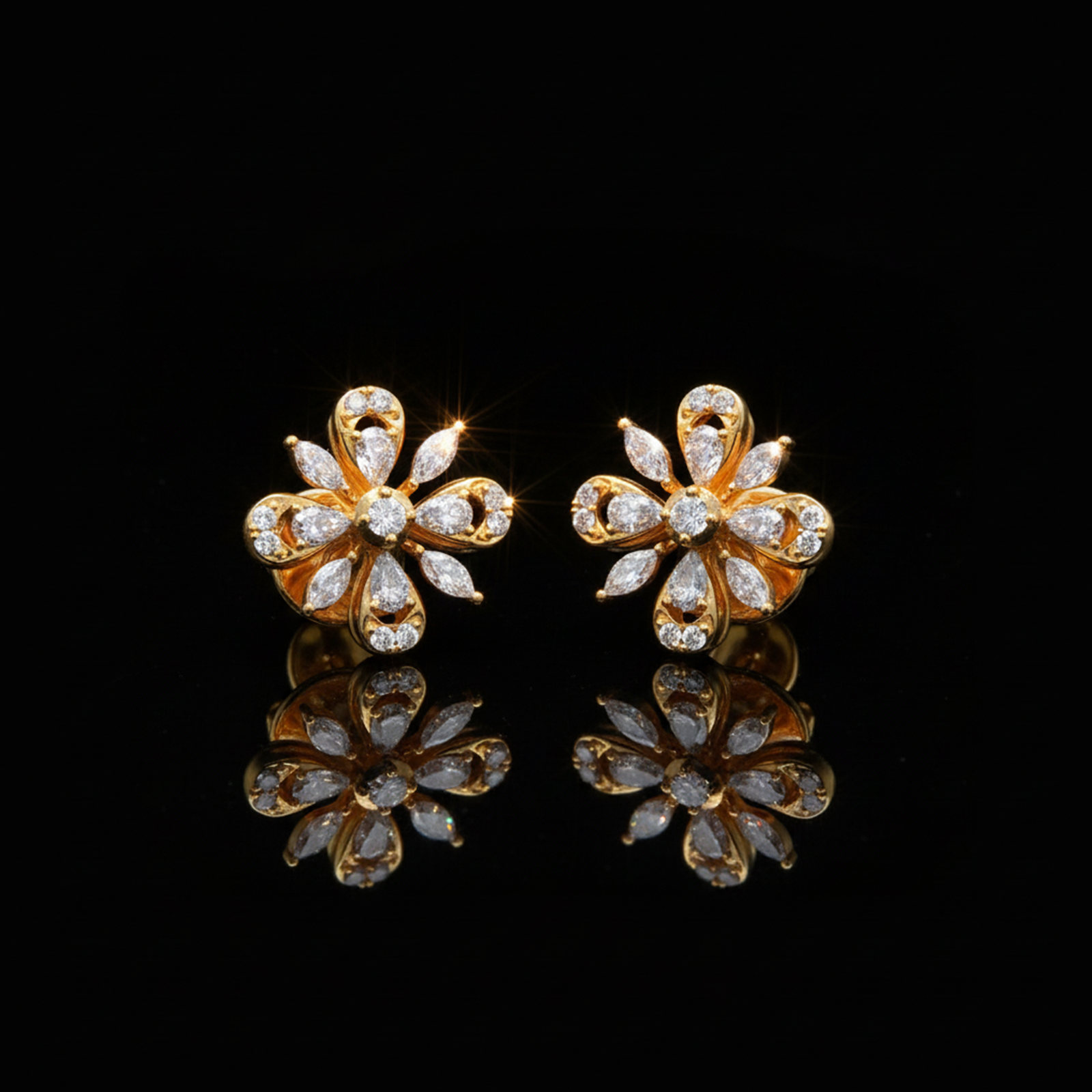 These enchanting Floral Multi-Shape Diamond Stud Earrings blossom with brilliance. Featuring a captivating arrangement of diamonds in various shapes, they offer a unique sparkle that beautifully frames the face for any occasion.