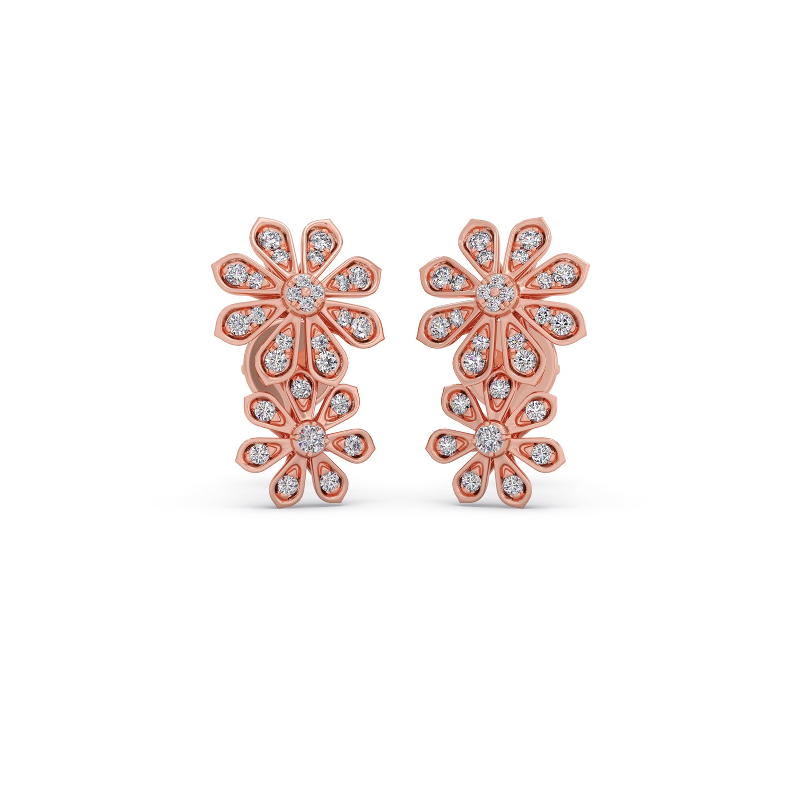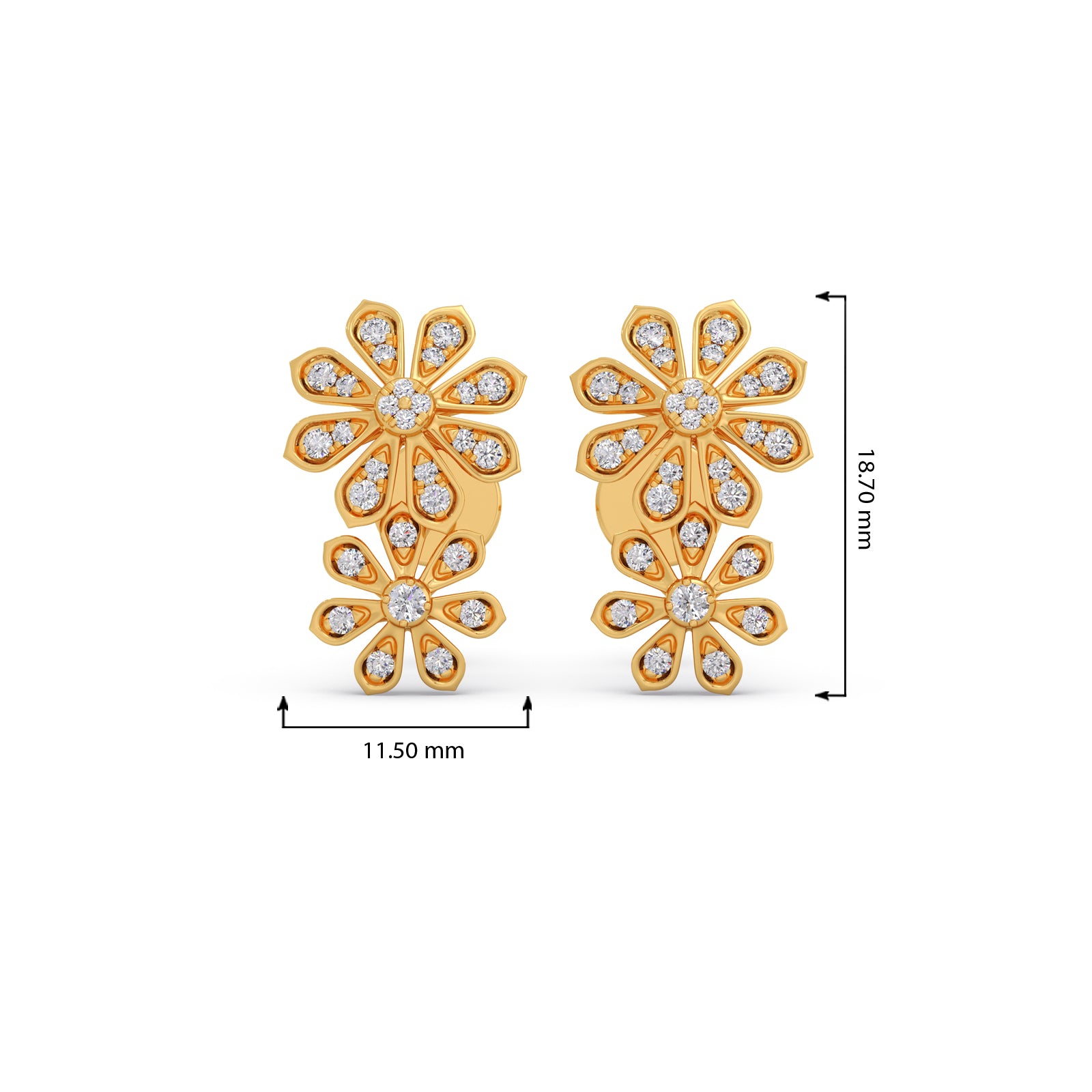 The Florette Round Diamond Earrings showcase a graceful floral-inspired design adorned with sparkling round diamonds. Set in lustrous gold, these earrings exude timeless elegance and charm. Perfect for adding a touch of sophistication, they make an ideal choice for both everyday wear and special occasions.