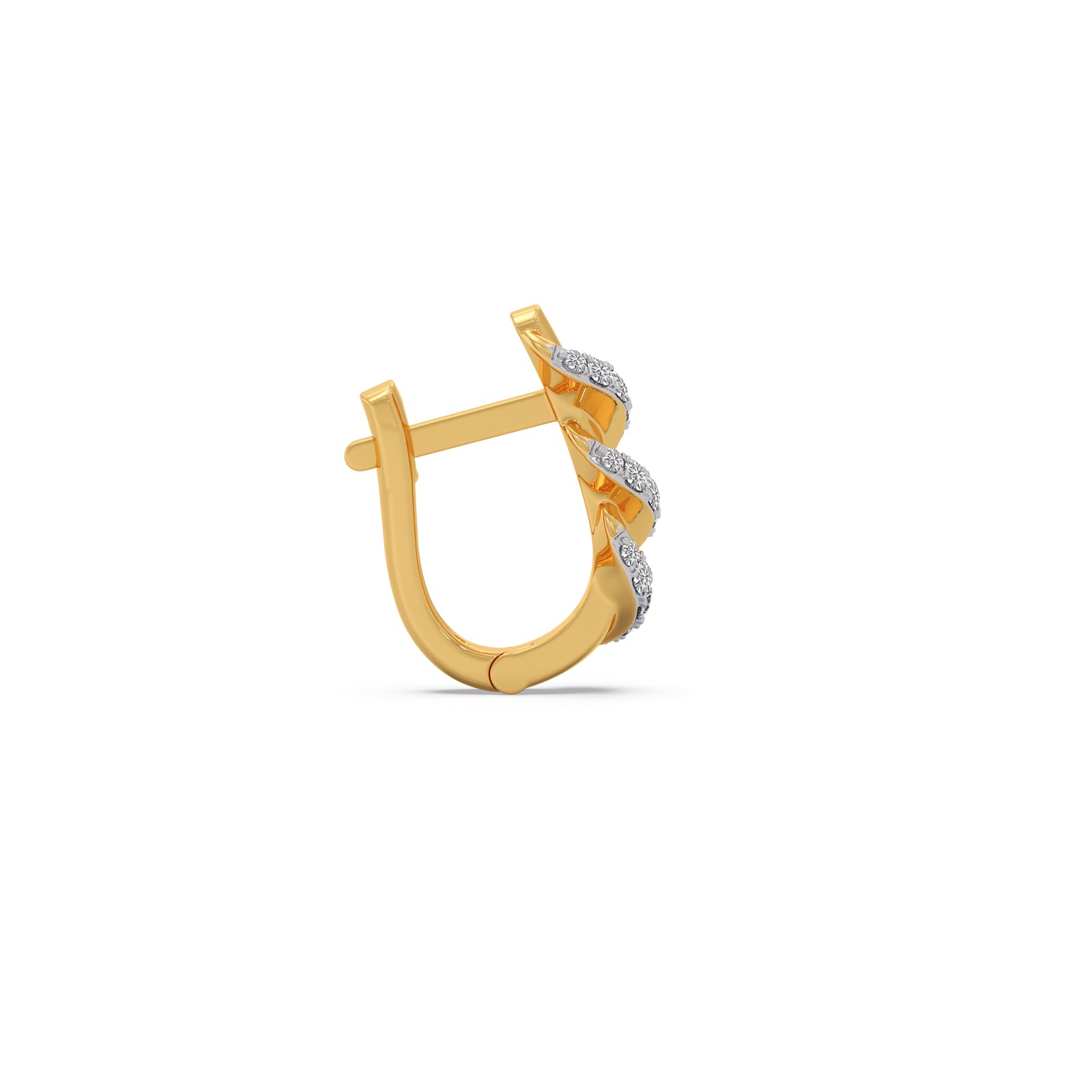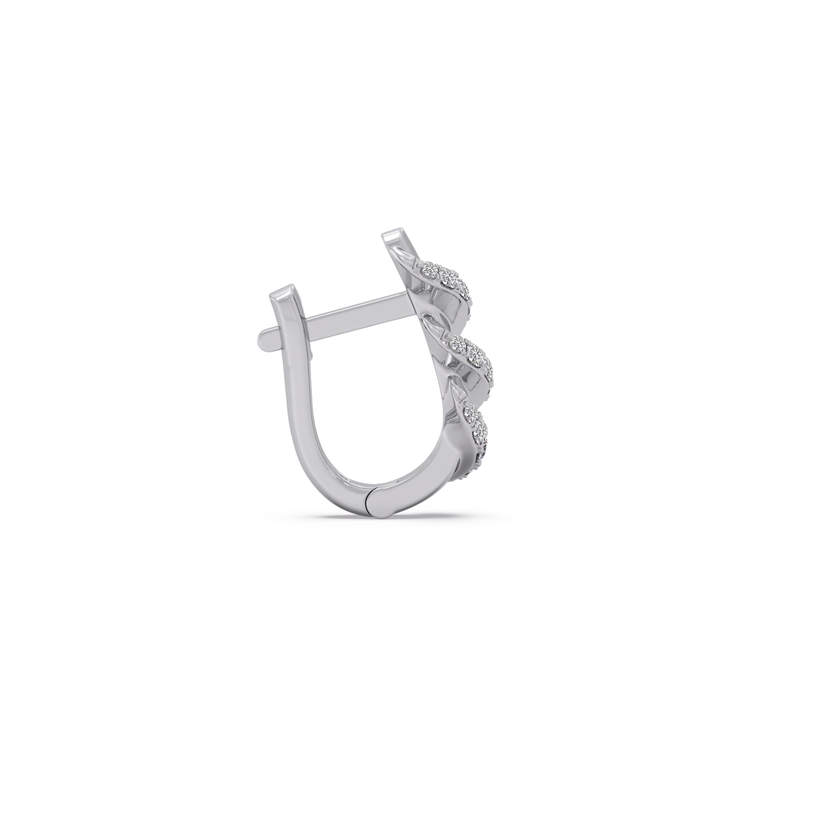This hoop earrings features a a unique spiral or ribbon wrap effect. The spiral band is encrusted with classic round diamonds, which adds a touch of modern sophistication. They are versatile enough for daily wear but intricate enough for formal occasions.