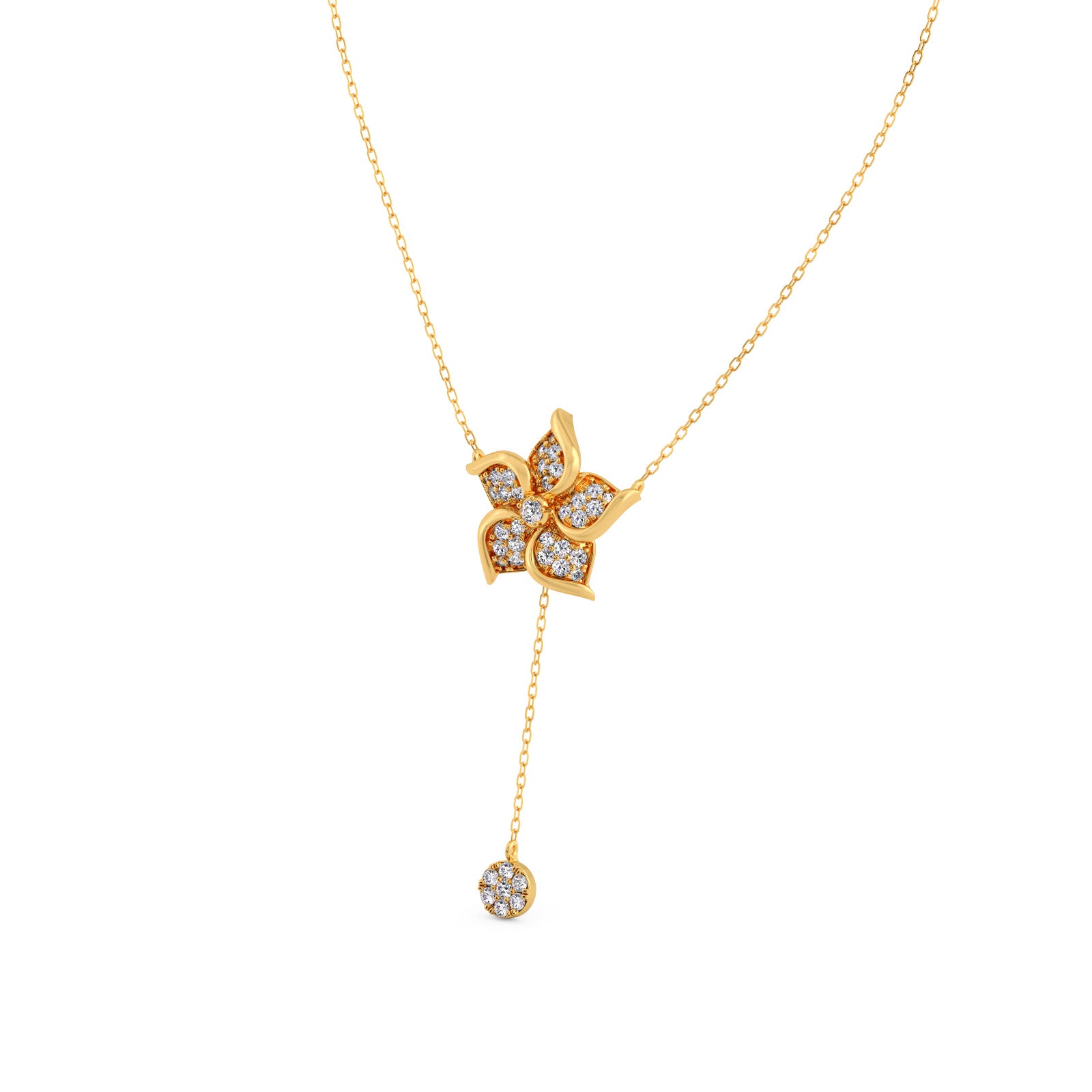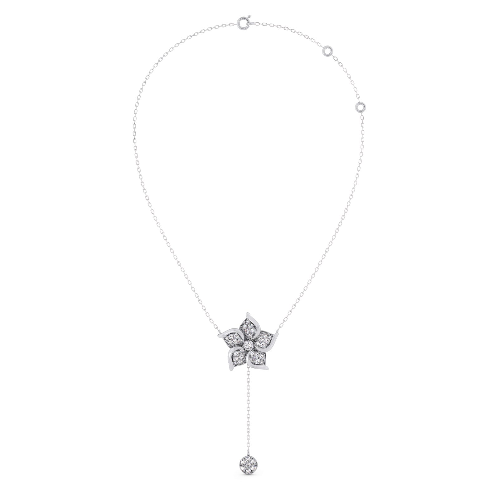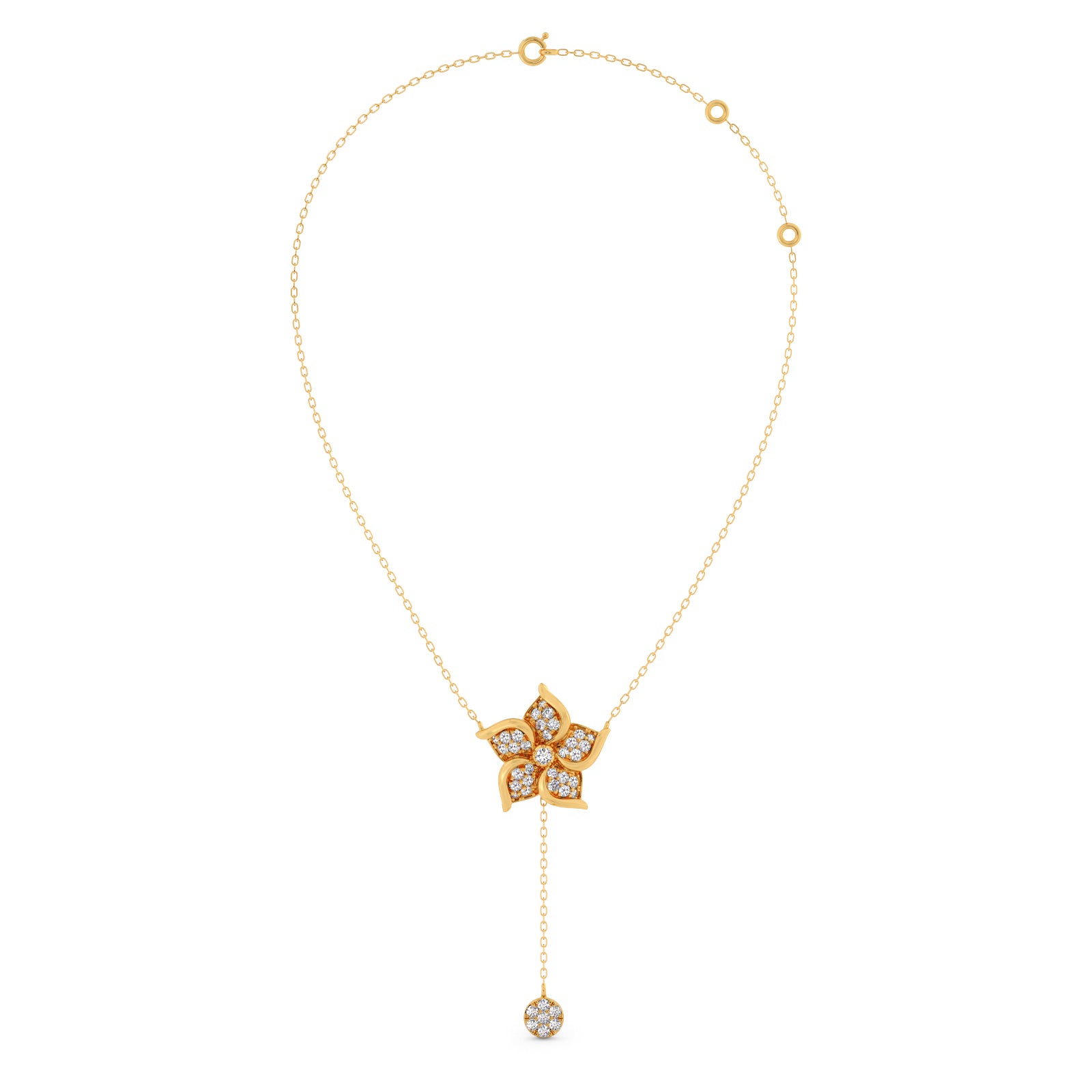 This Flywheel Cluster Diamond Necklace features a unique flywheel design at the top with a delicate chain gracefully dangling down to a cluster of sparkling Round Diamonds. Elegant and eye-catching, it perfectly blends modern style with timeless brilliance for any occasion.