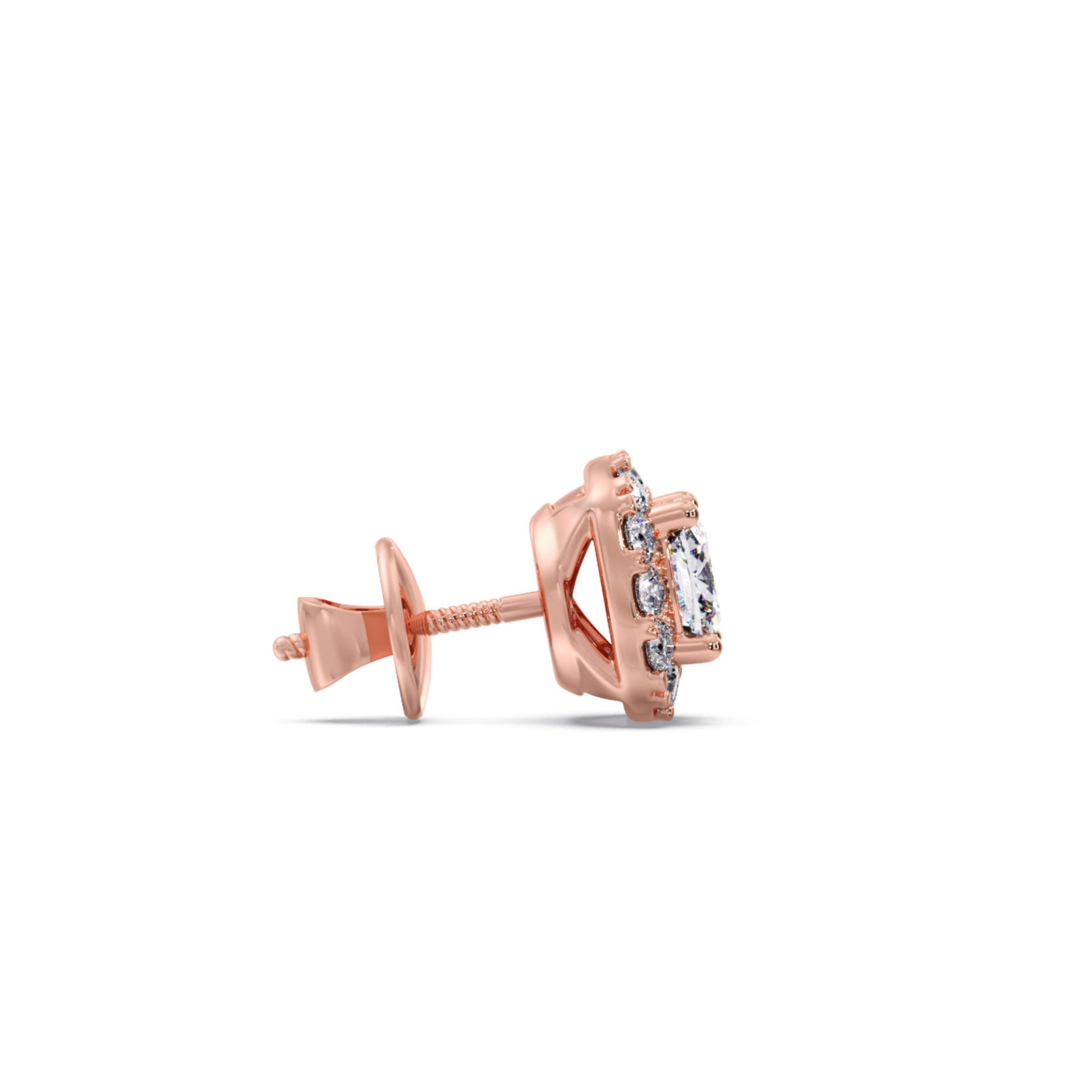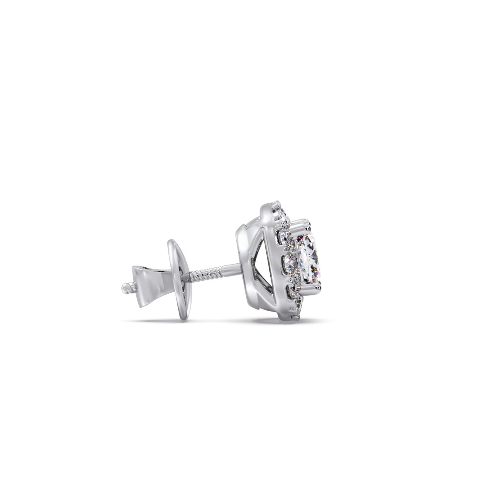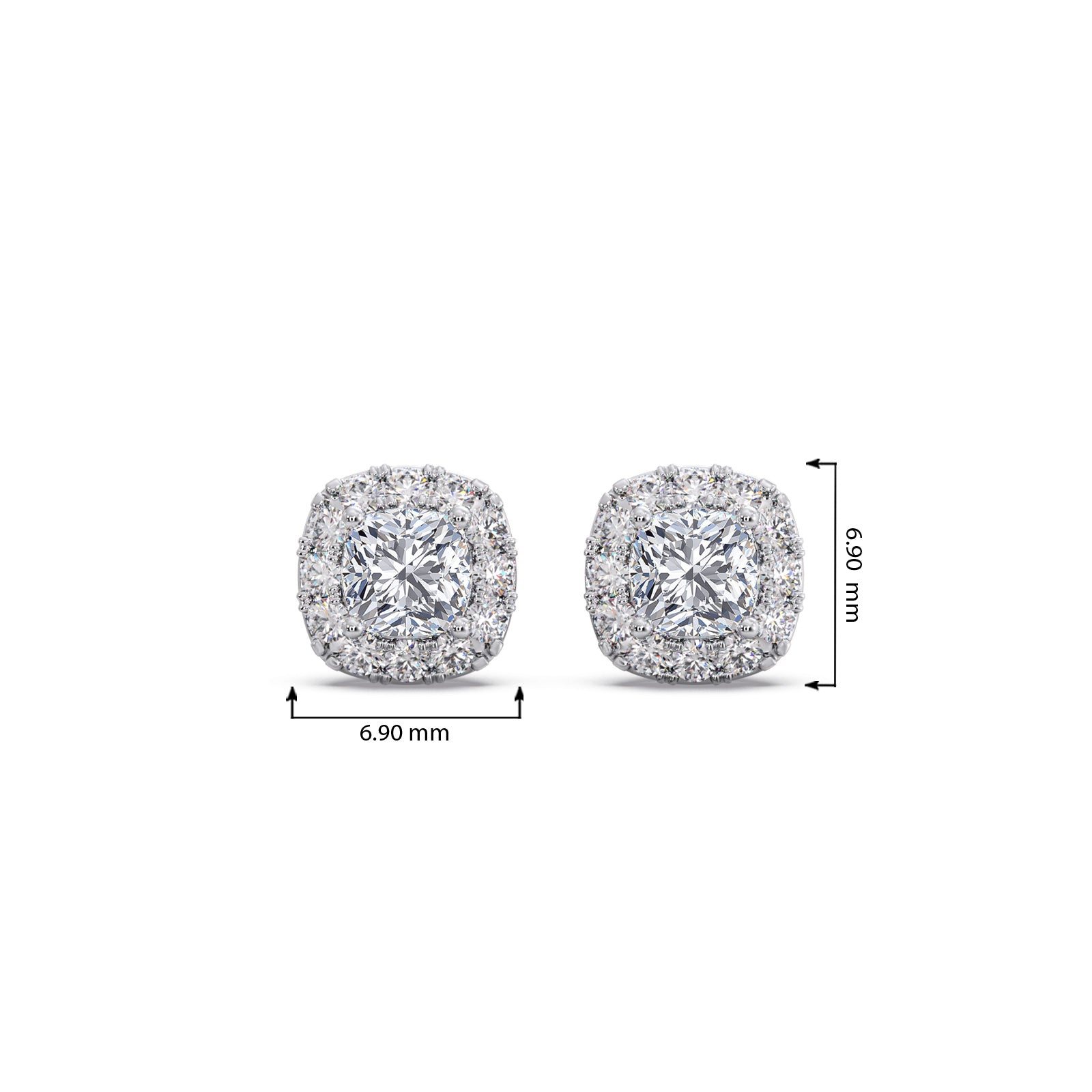 Classic yet captivating, these earrings feature a dazzling cushion-cut solitaire diamond at the center, surrounded by a halo of brilliant round diamonds. Designed to maximize sparkle and fire, they offer timeless elegance and versatility—perfect for adding luxury to everyday looks or special occasions.