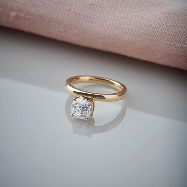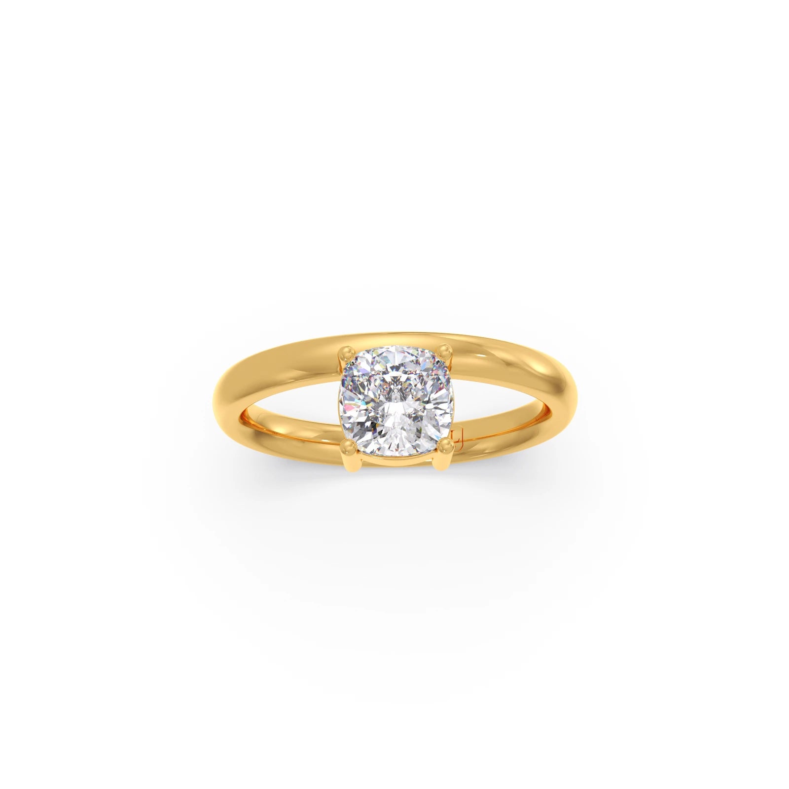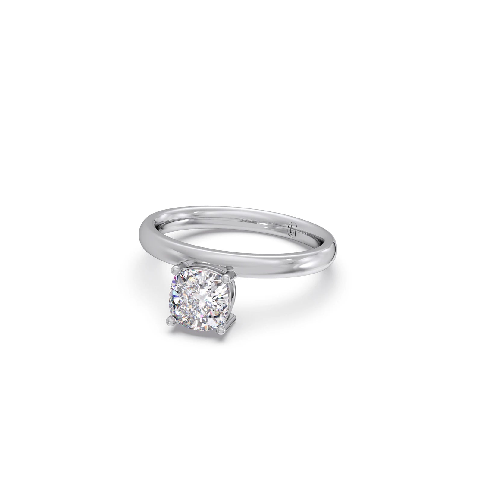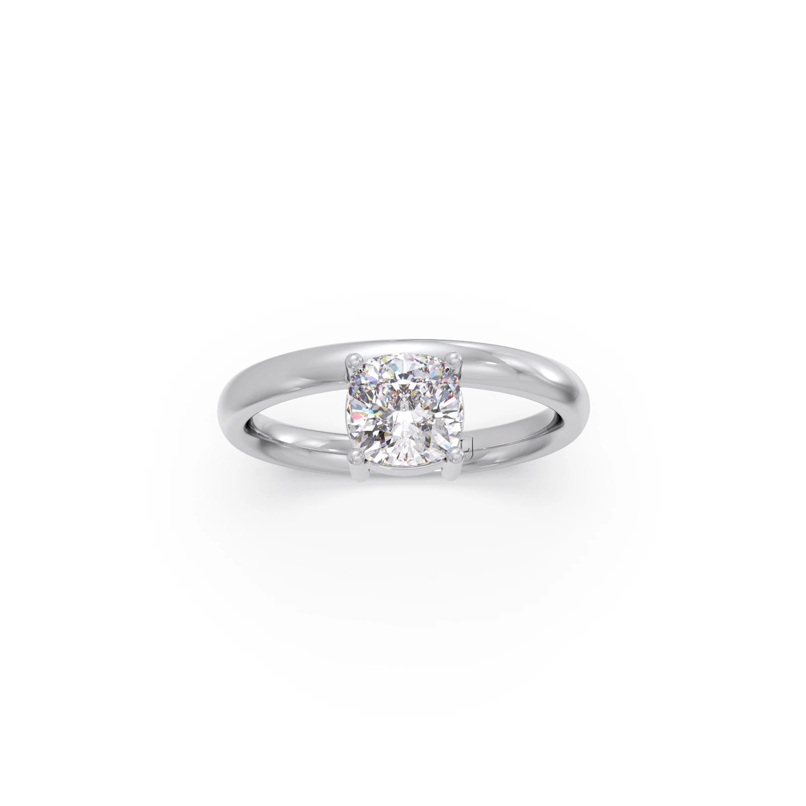 Classic and radiant, this ring features a stunning cushion-cut diamond held by a secure four-prong setting. Its elegant simplicity allows the diamond's beauty to shine through, making it a perfect symbol of enduring commitment.
