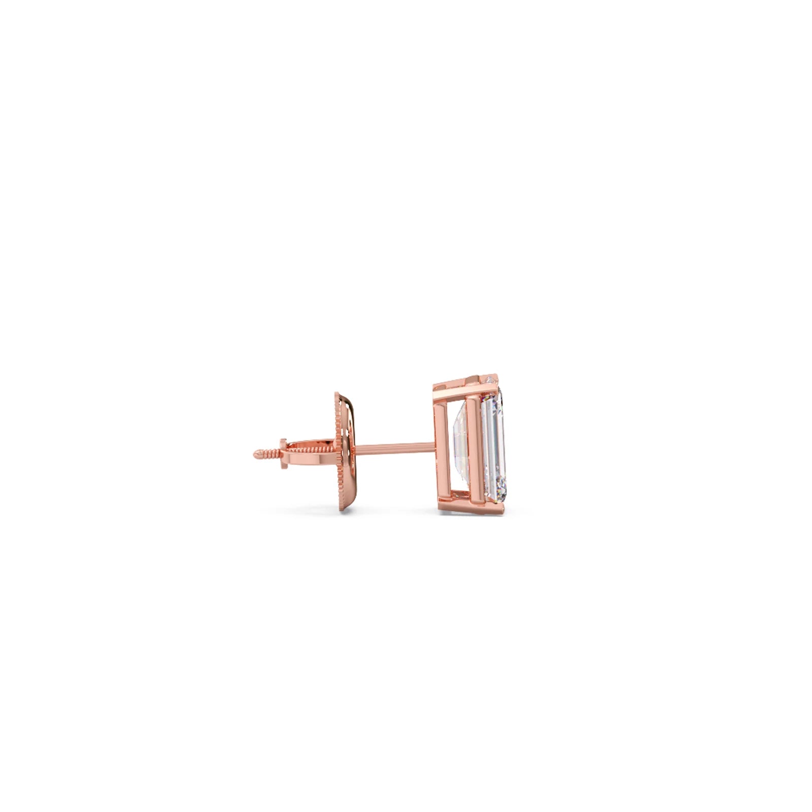 These elegant stud earrings feature sparkling emerald-cut diamonds securely held by four prongs. The rose gold setting adds a touch of warmth and complements the brilliance of the diamonds.