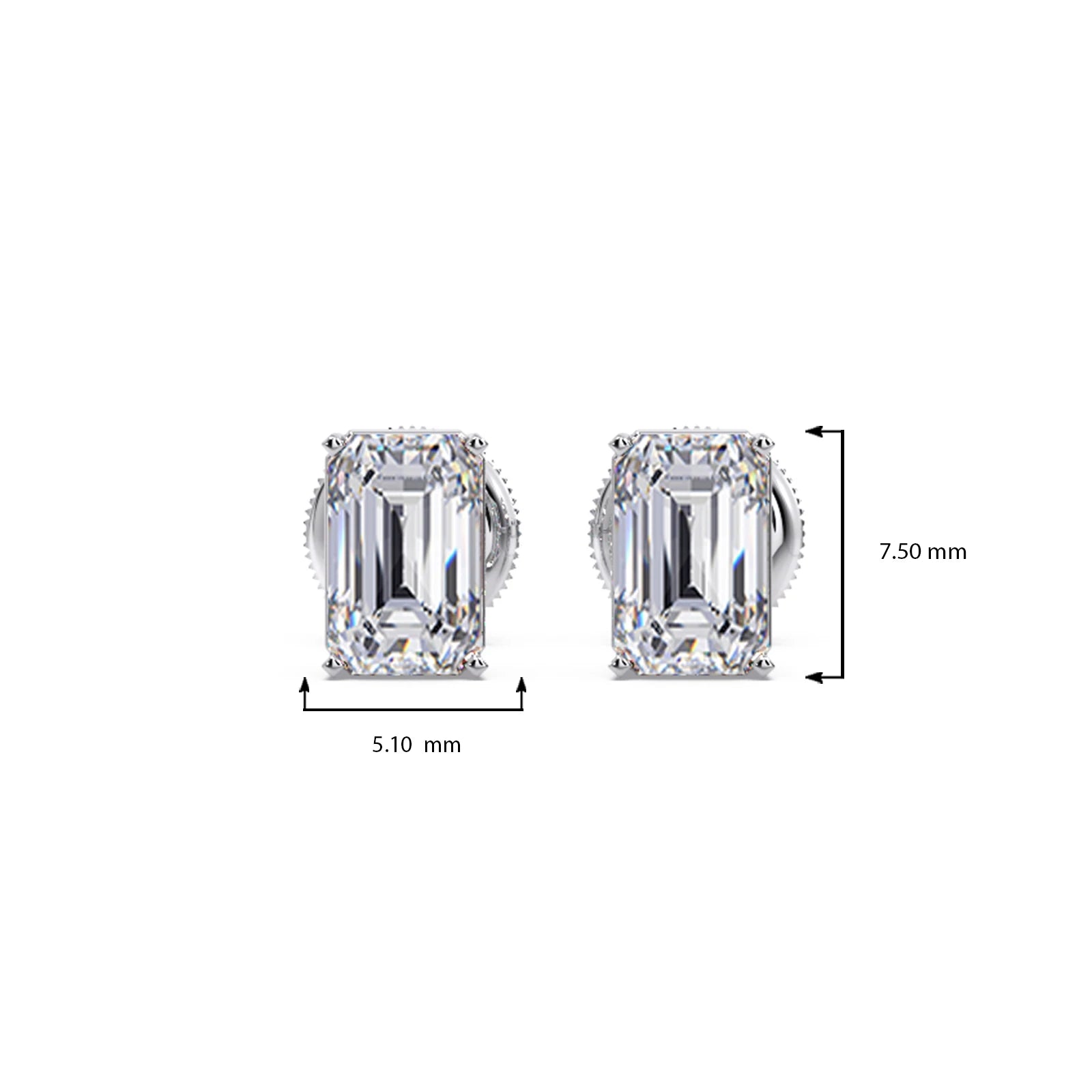 Four-Prong Emerald Cut Diamond Stud Earrings