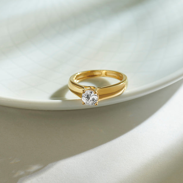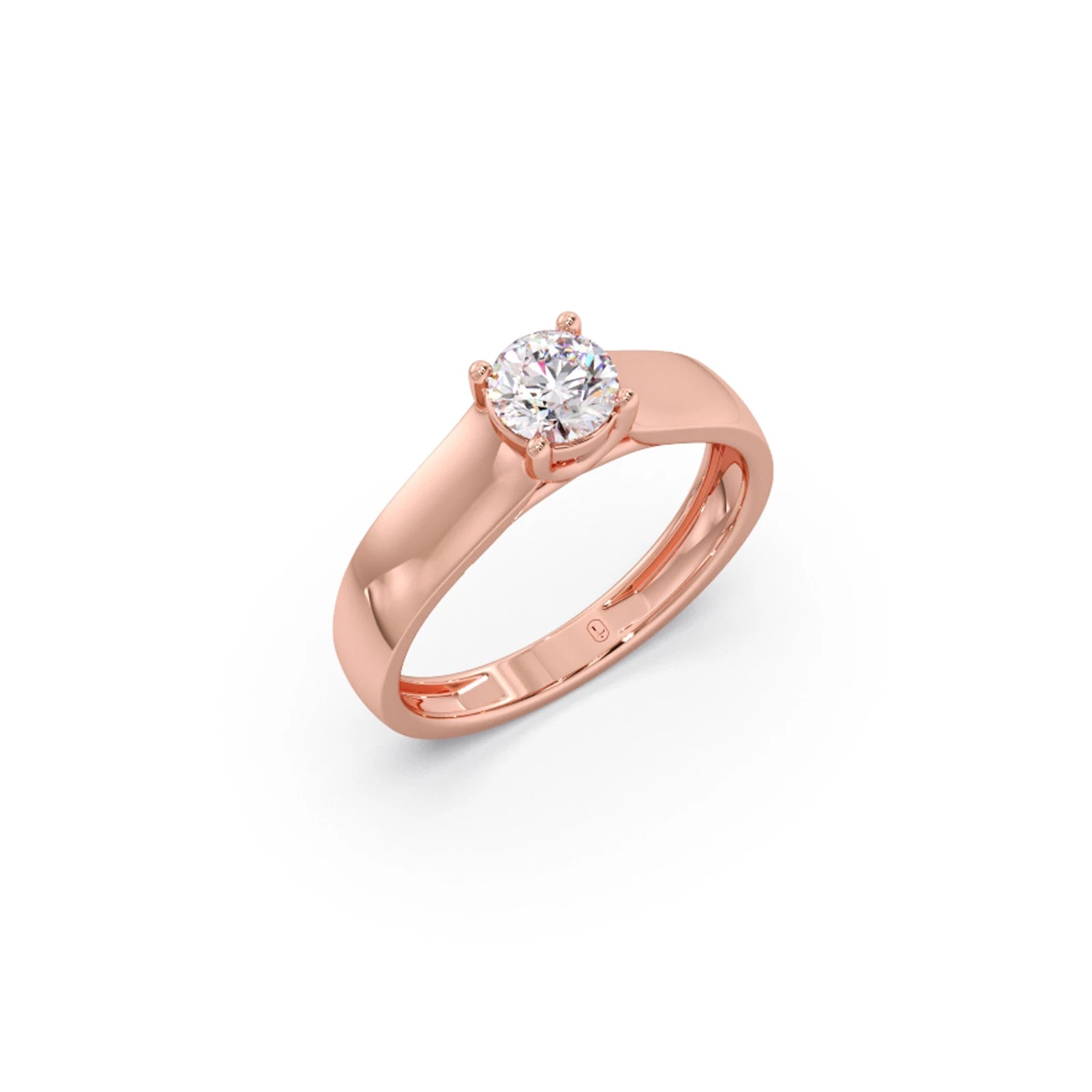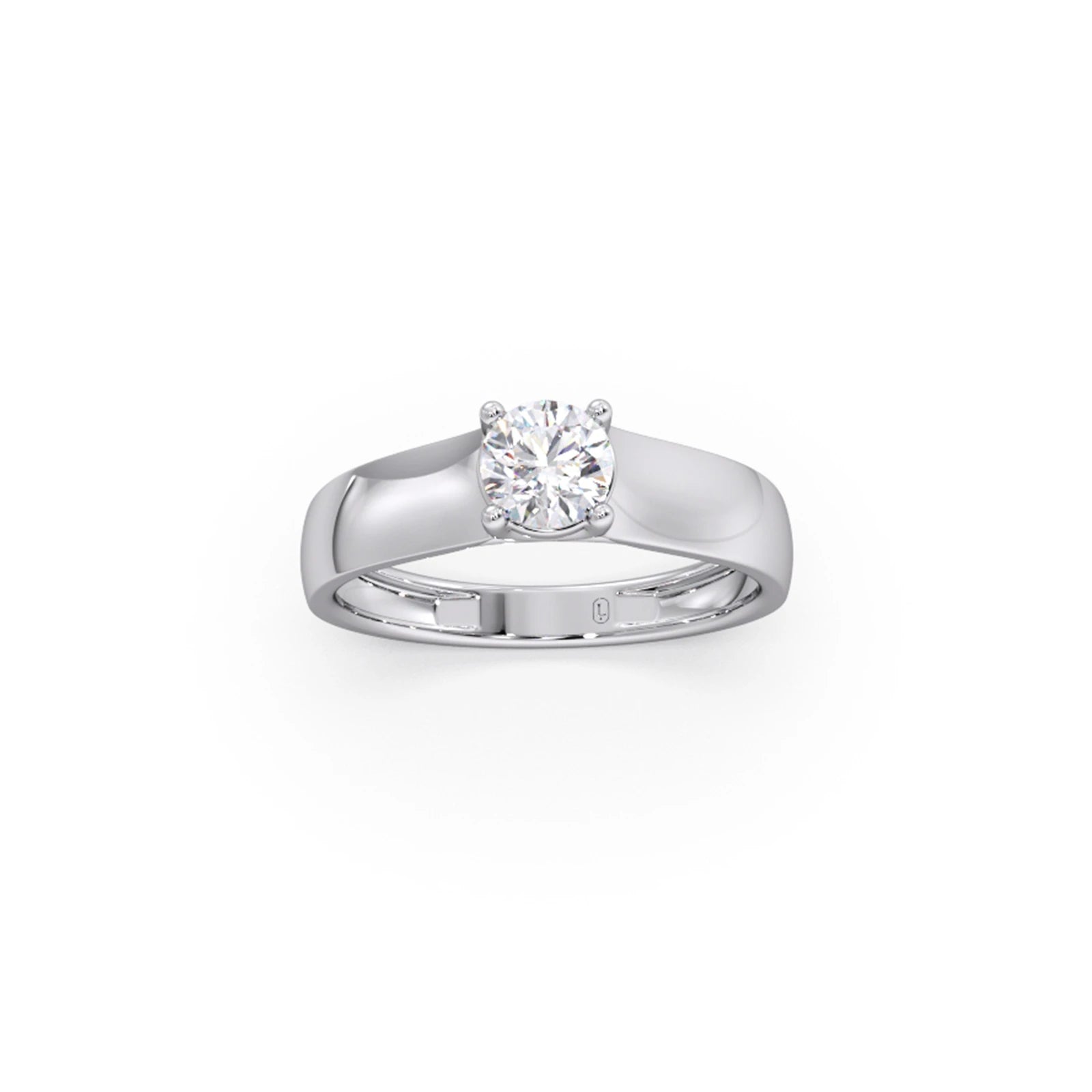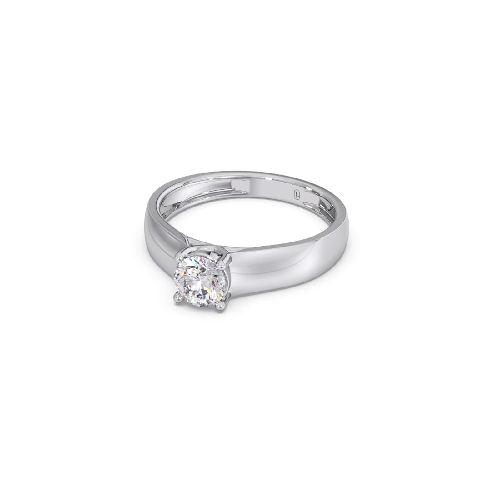 This engagement band features a four-prong solitaire setting, designed to highlight a single, stunning Diamond. The design is classic and elegant, emphasizing the stone's brilliance. Its simplicity and masculine appeal make it a timeless choice for a proposal, focusing all attention on the centre stone.