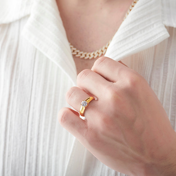 0.30 Carat Linear Diamond Men's Classic Two Tone Ring