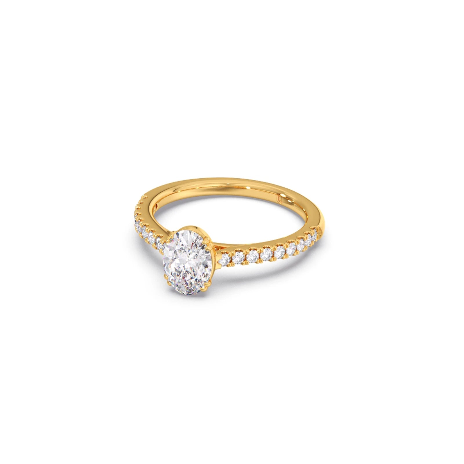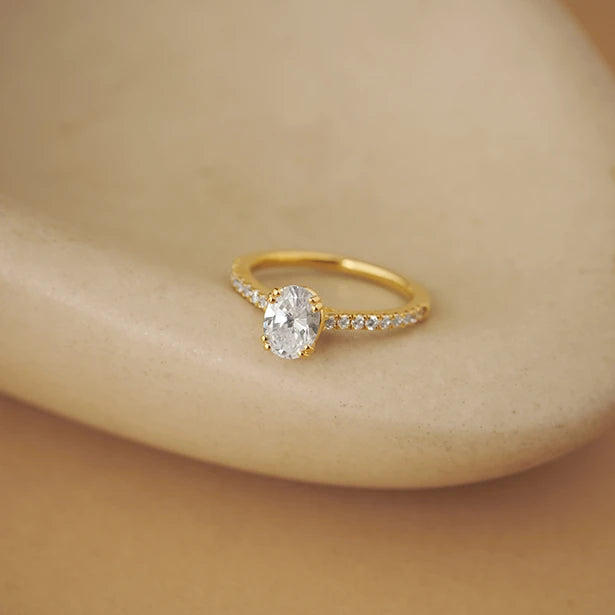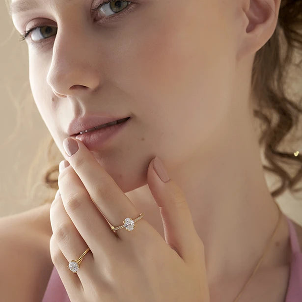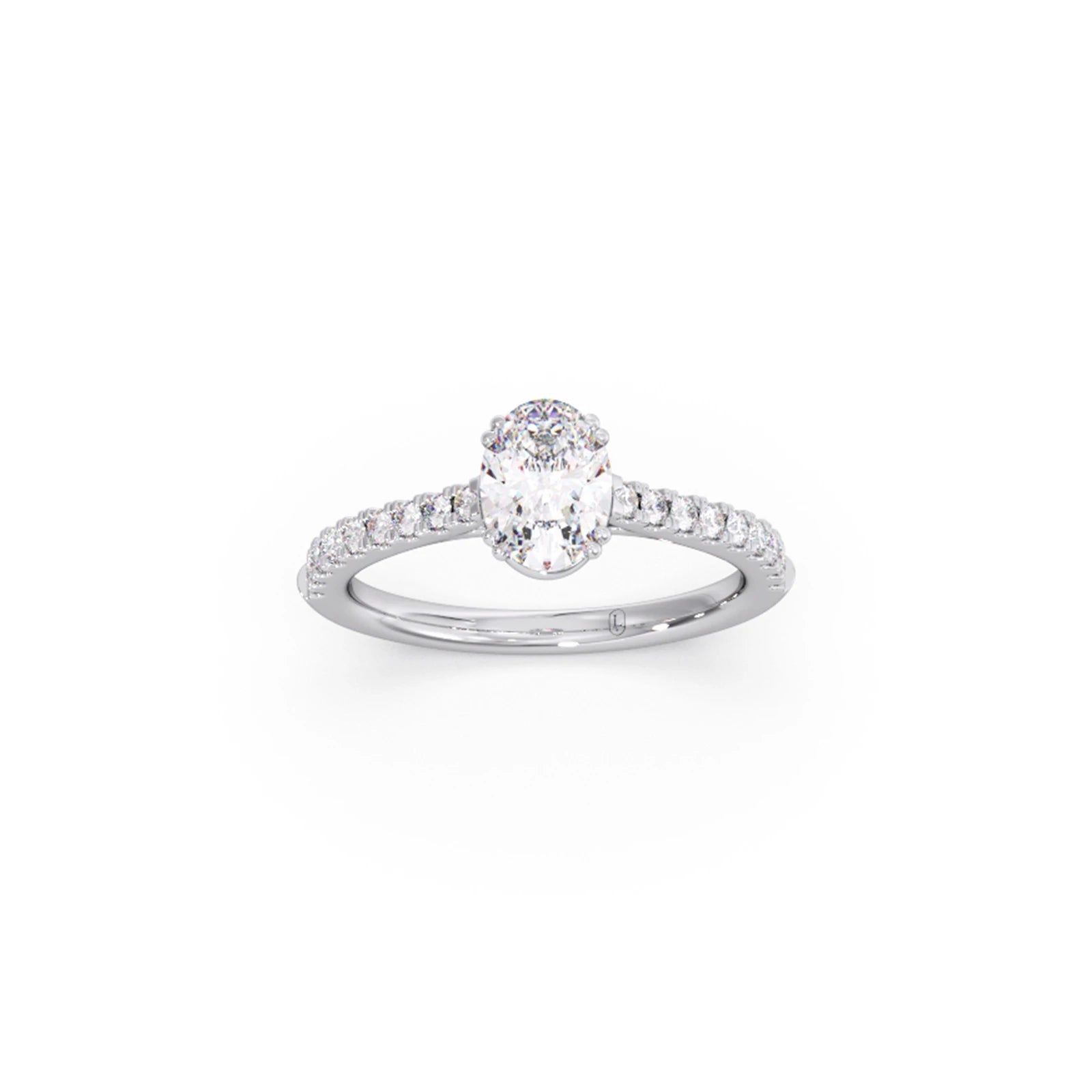An exquisite four-prong oval cut engagement ring, showcasing a 7.80mm oval brilliant-cut diamond that radiates elegance and sophistication. The ring's timeless design, captured in a close-up shot, highlights the intricate details of the setting and the diamond's brilliant sparkle.