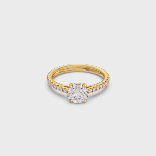 This engagement ring features a classic four-prong setting, designed to highlight a brilliant round-cut centre stone. The simple yet elegant design emphasizes the diamond's sparkle, offering a timeless look. The band provides a clean and sophisticated foundation, making it a perfect symbol of love and commitment.