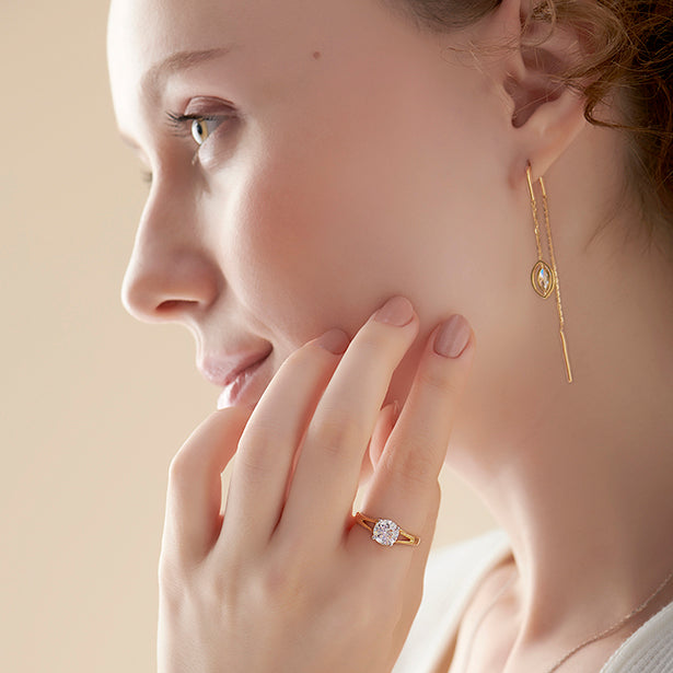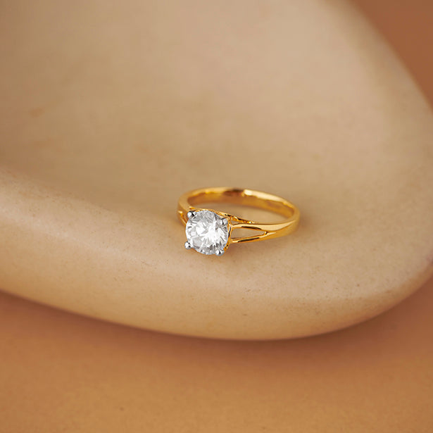 This classic solitaire ring showcases a brilliant 7.50mm round diamond, held securely by four delicate prongs. The timeless design and exceptional sparkle make it a symbol of love and commitment.