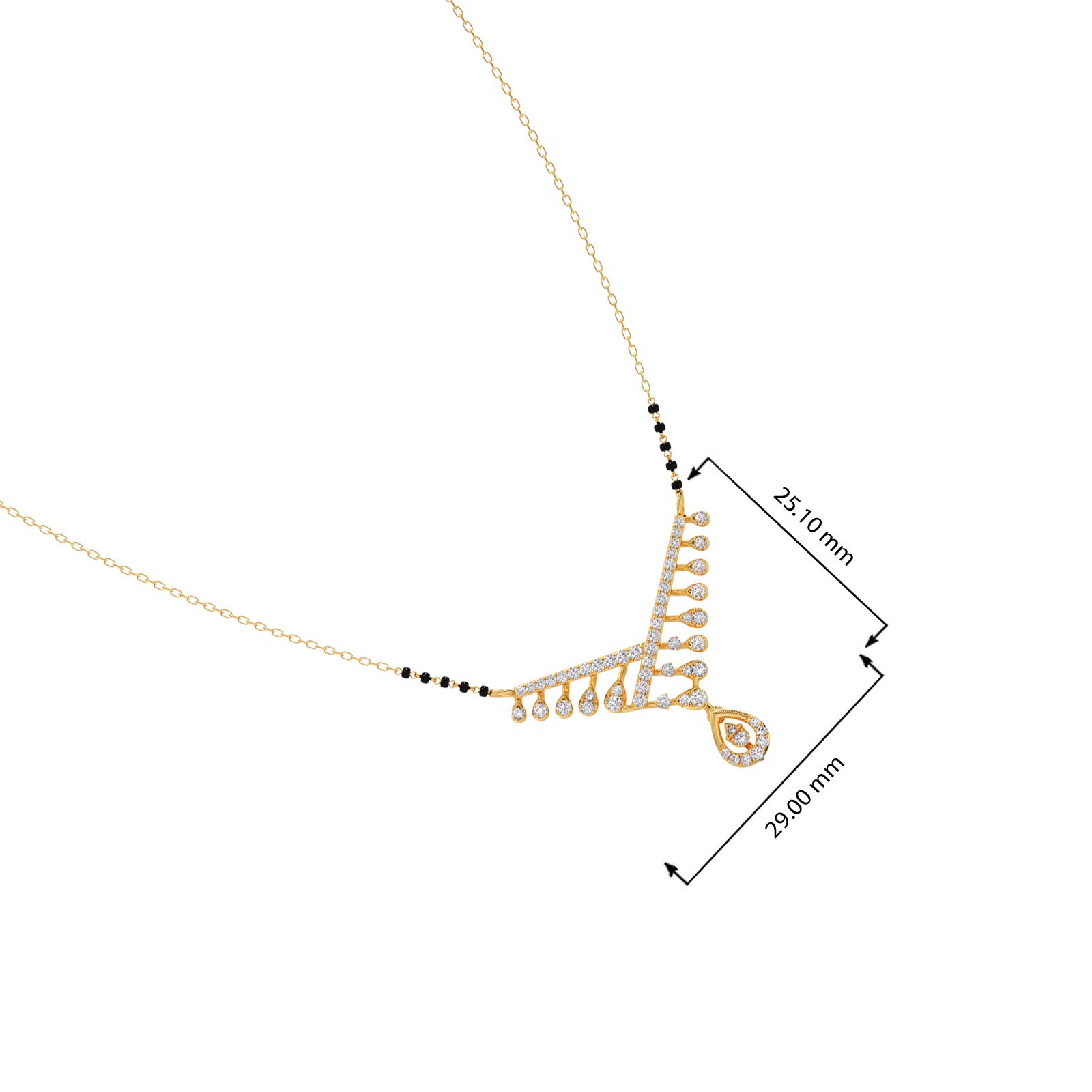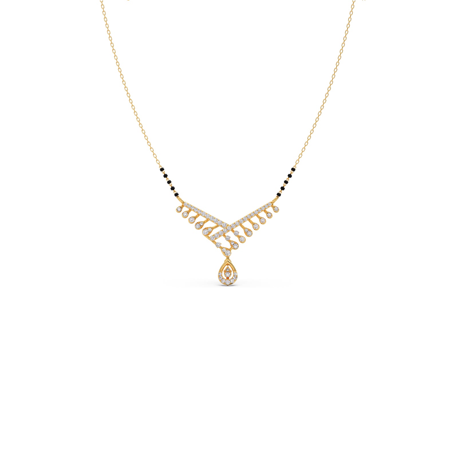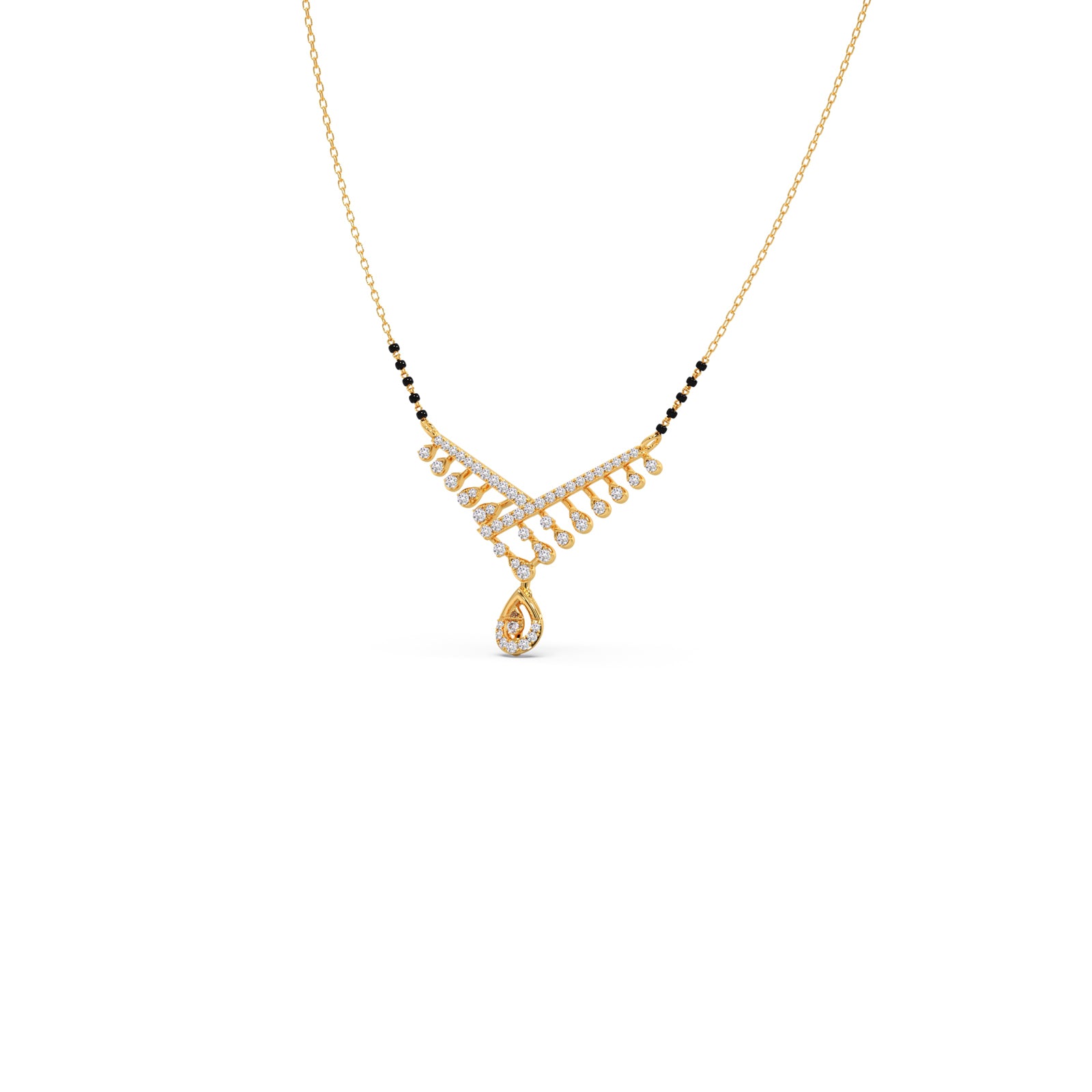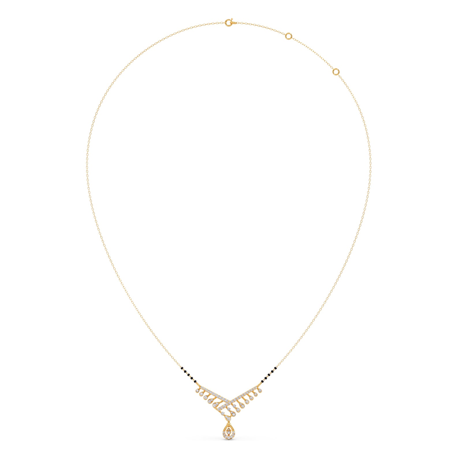 The Gentle Glow Tanmaniya features an elegant design adorned with shimmering Round Diamonds. Delicate yet timeless, it beautifully blends tradition with modern grace, making it perfect for daily wear or special occasions. A refined symbol of elegance and sparkle.