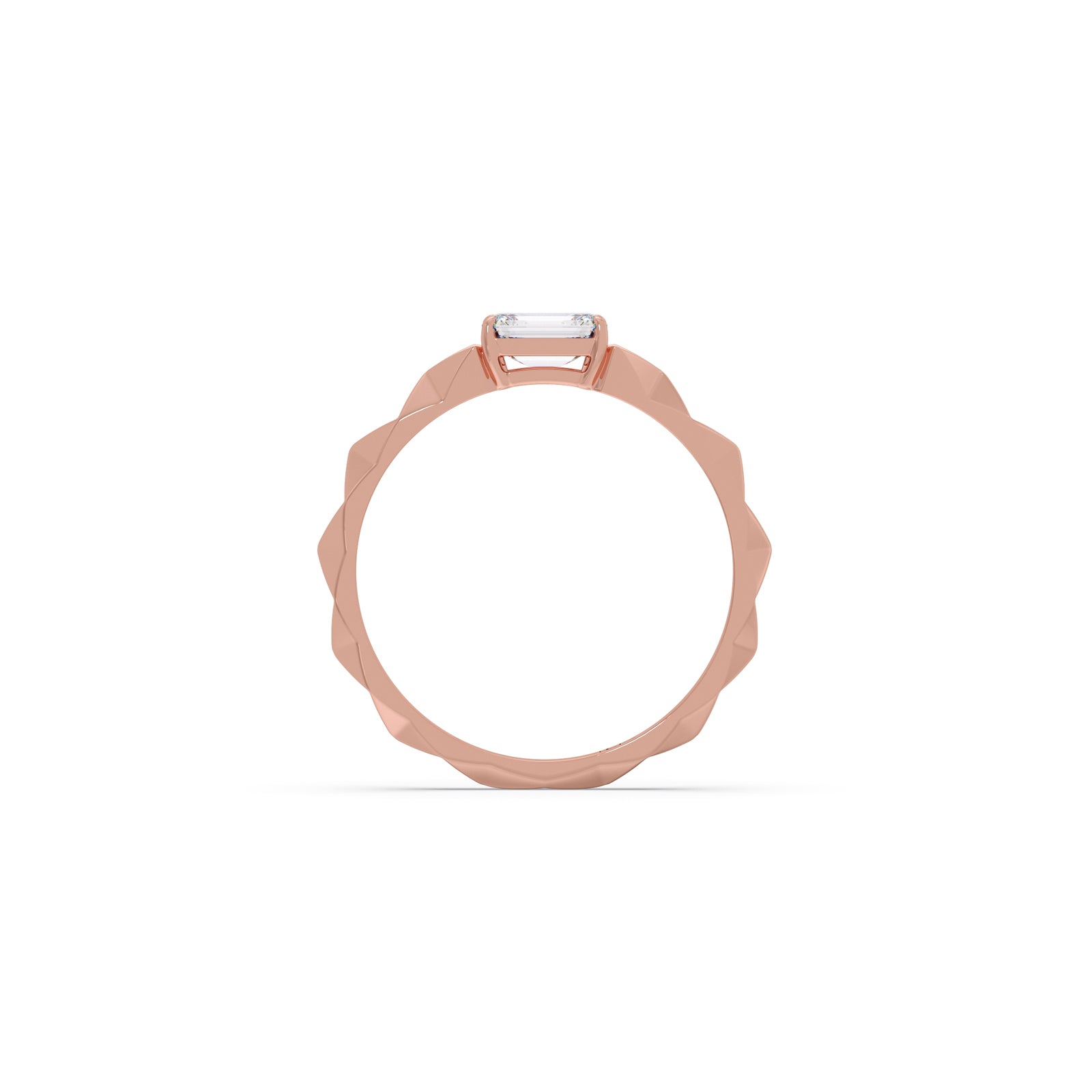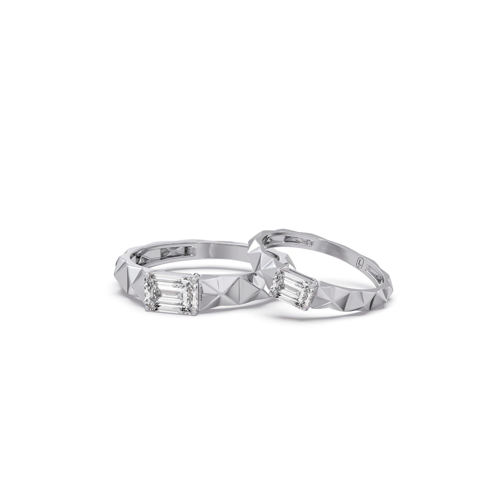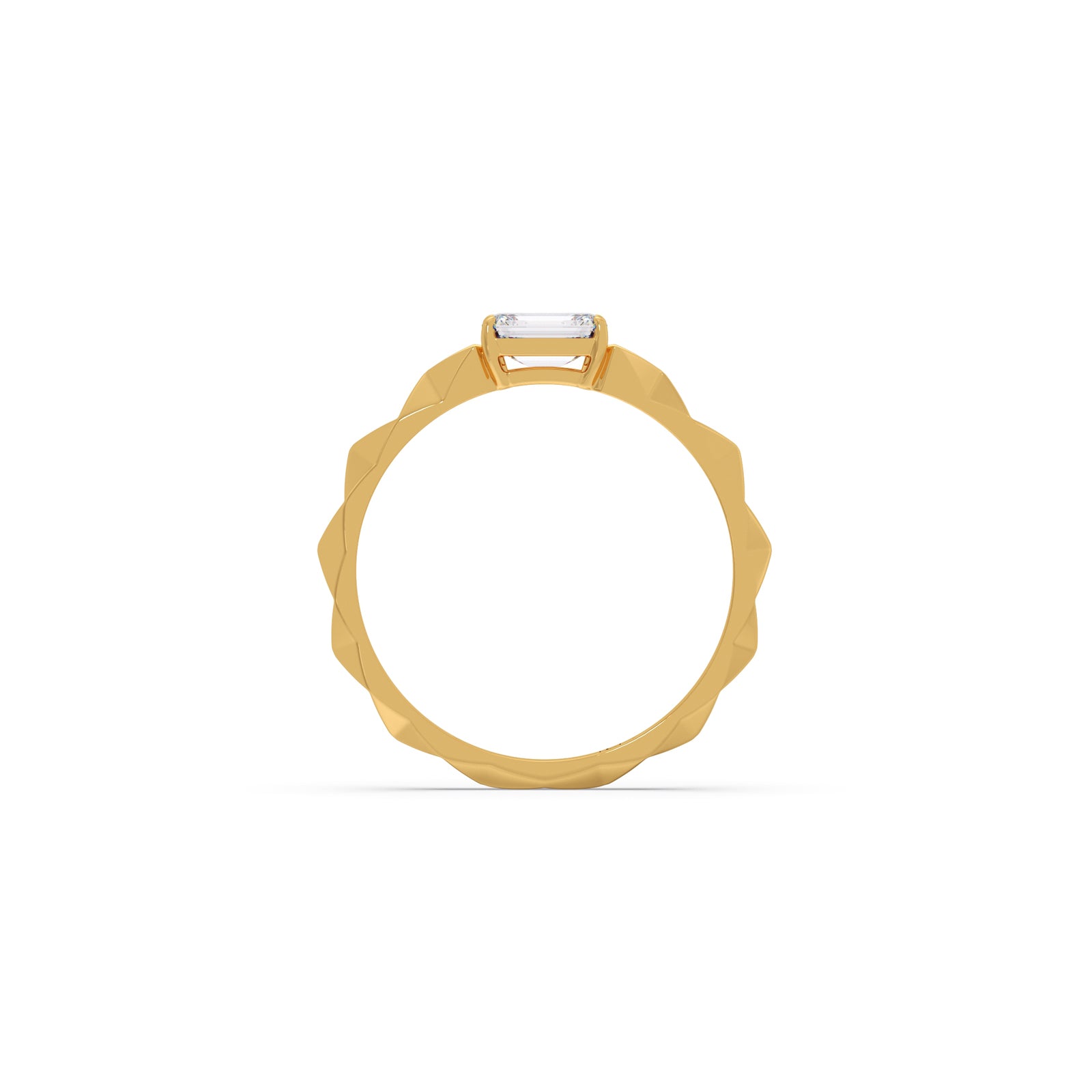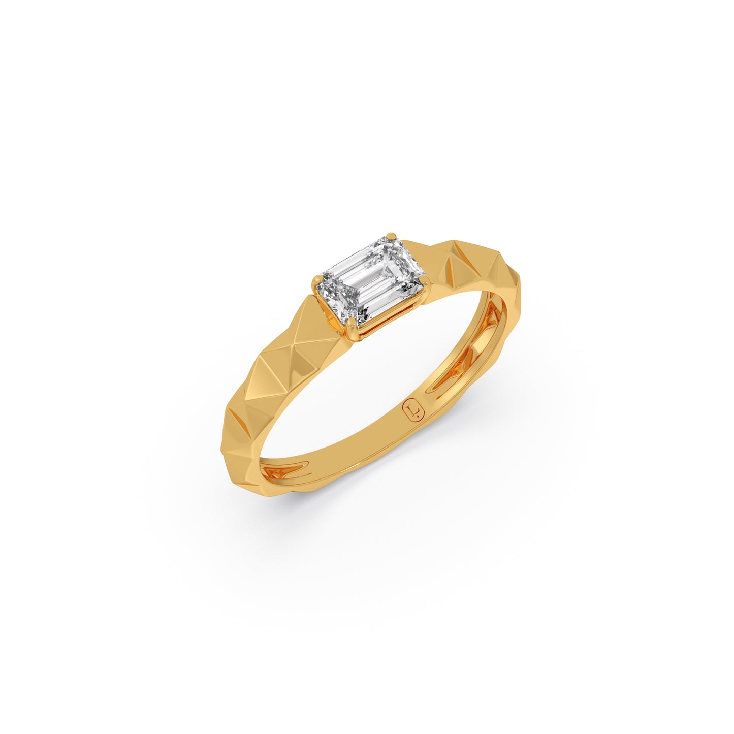 The Geometric Emerald Solitaire Engagement Ring showcases a 0.50 ct emerald-cut diamond in a sleek solitaire setting. Featuring a sculpted band with geometric texture, this design blends modern structure with timeless elegance—crafted for those who appreciate bold lines, clean form, and meaningful commitment.