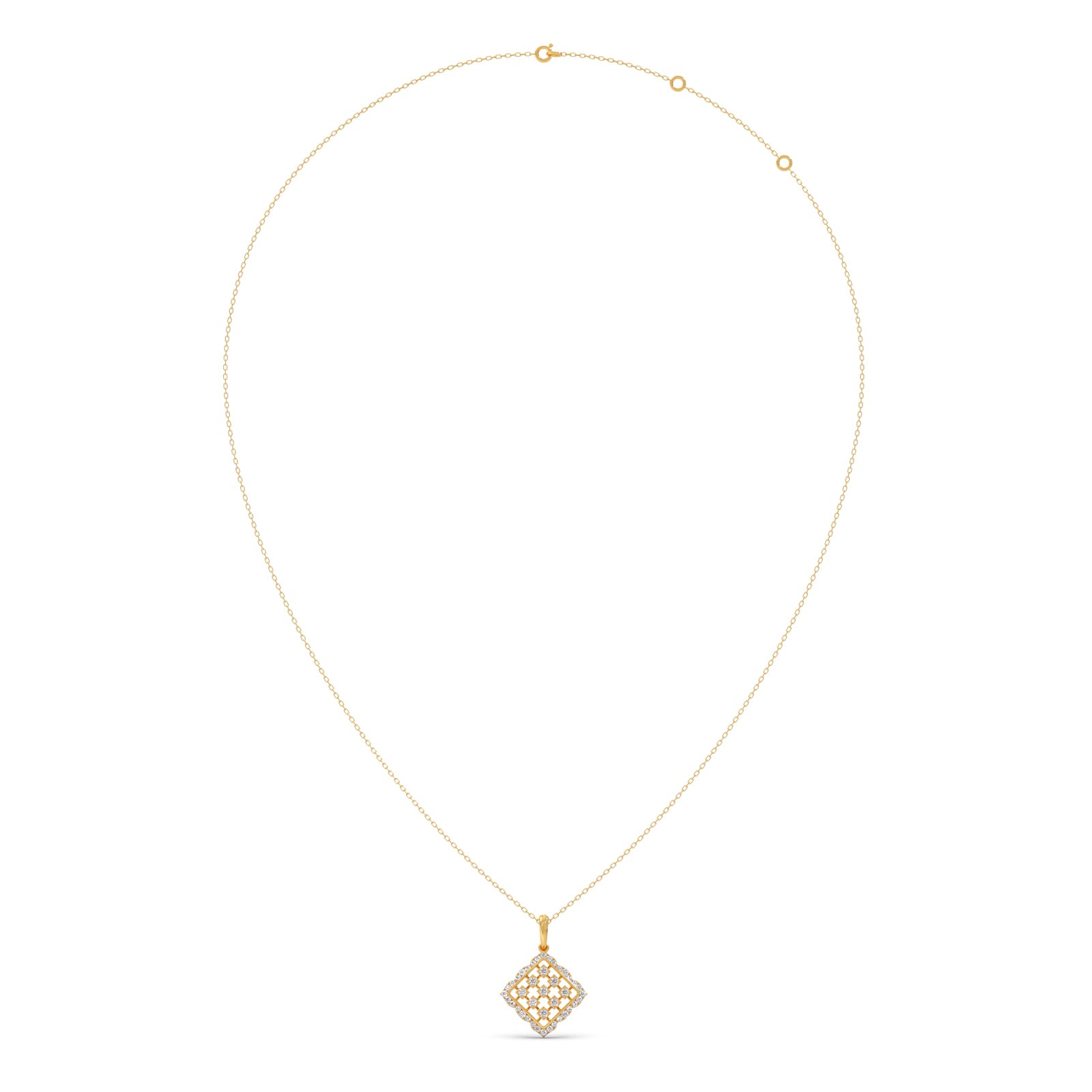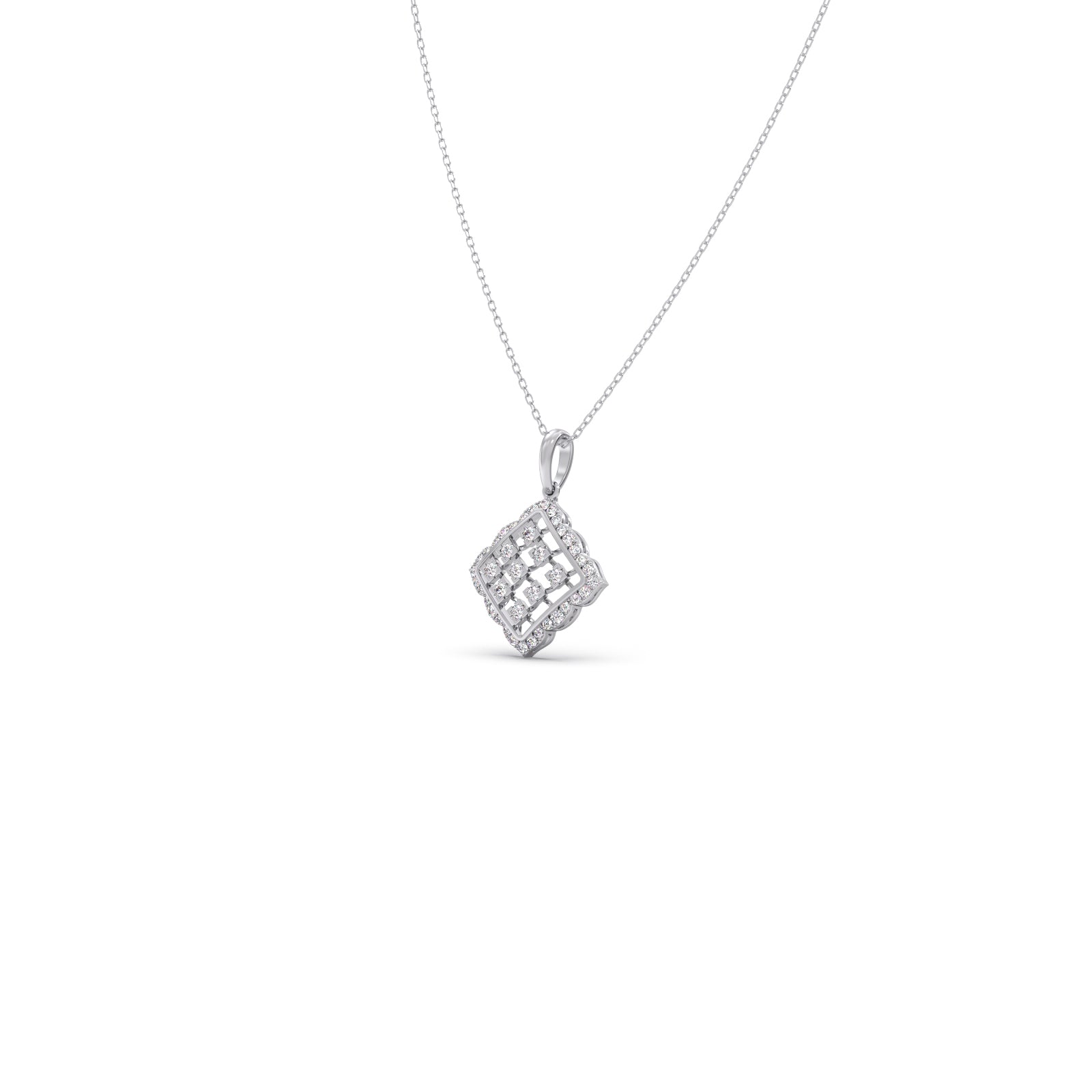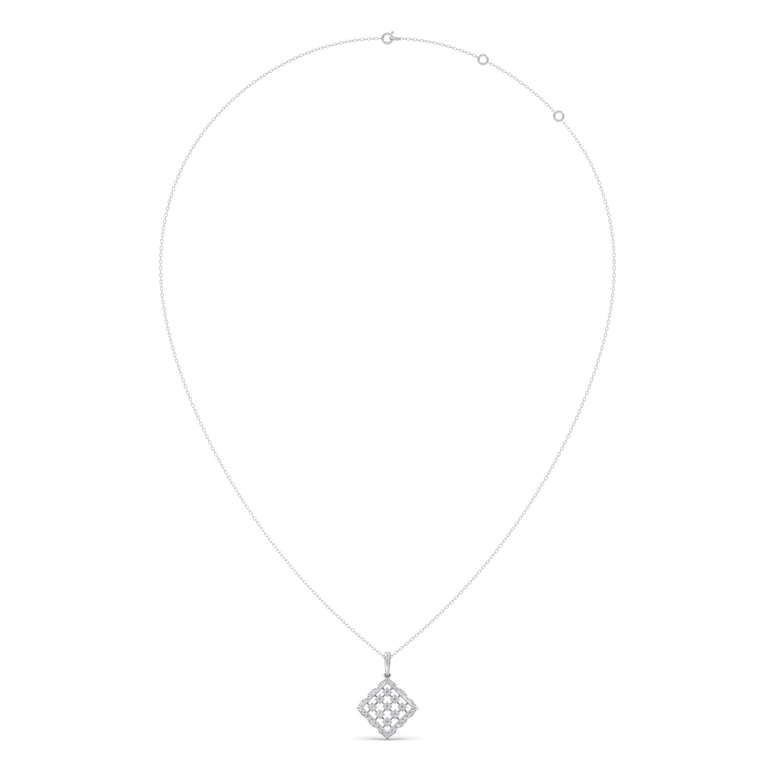 Sleek, sharp, and totally modern. The Geometric Grid Diamond Pendant stunning pendant redefines classic shine with its bold round diamond-paved geometric grid. The strong, structural lines deliver an immediate sense of contemporary luxury and sophisticated, unforgettable impact.