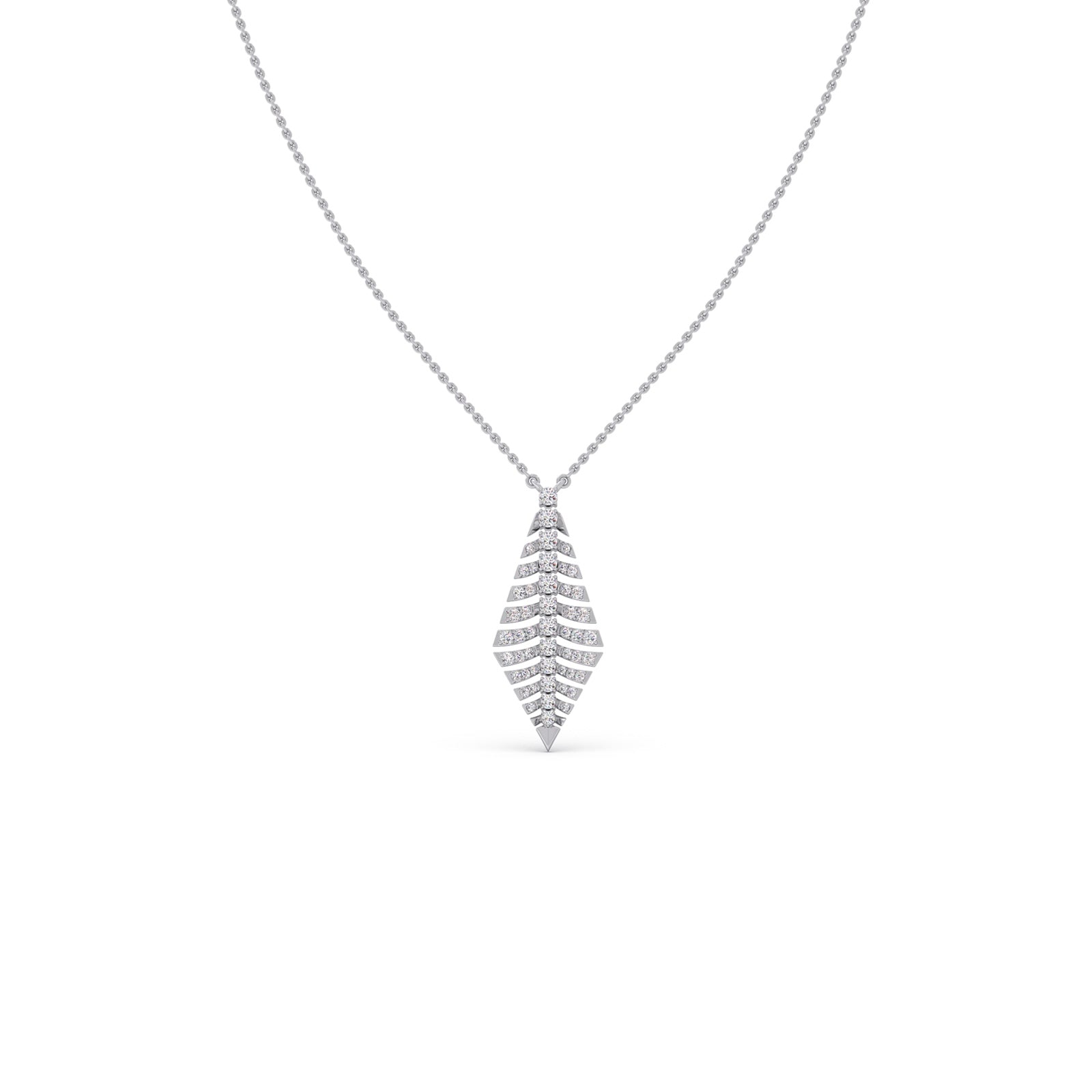 These pendant features a sophisticated nature-inspired design that mimics the intricate structure of a leaf or a fern. Crafted in a 0.656ct sparkling round diamonds, suspended from a delicate gold chain. This pendant makes it a versatile accessory for both traditional ethnic wear and minimalist evening attire.