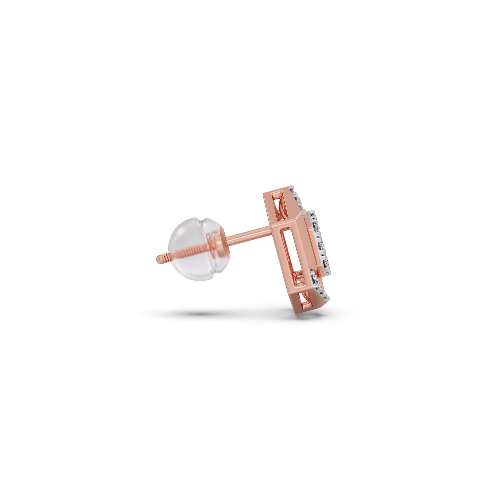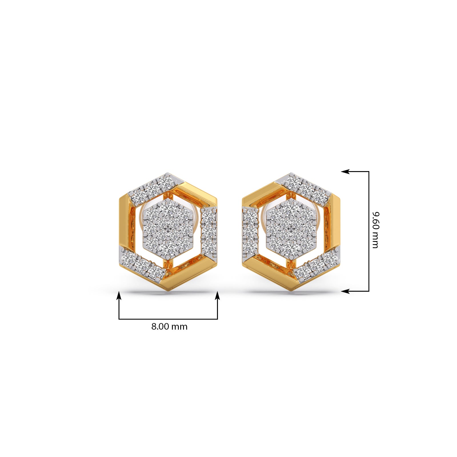 This Gilded Honeycomb Diamond Stud Earrings feature a sophisticated dual-hexagon design that blends geometric precision with luxurious detailing. The inner hexagonal frame consits of pave-set round diamonds. Three sides of this outer frame are accented with round diamonds, adding an asymmetric touch of sparkle. The clean lines and geometric shape make these ideal for a professional and everyday look.