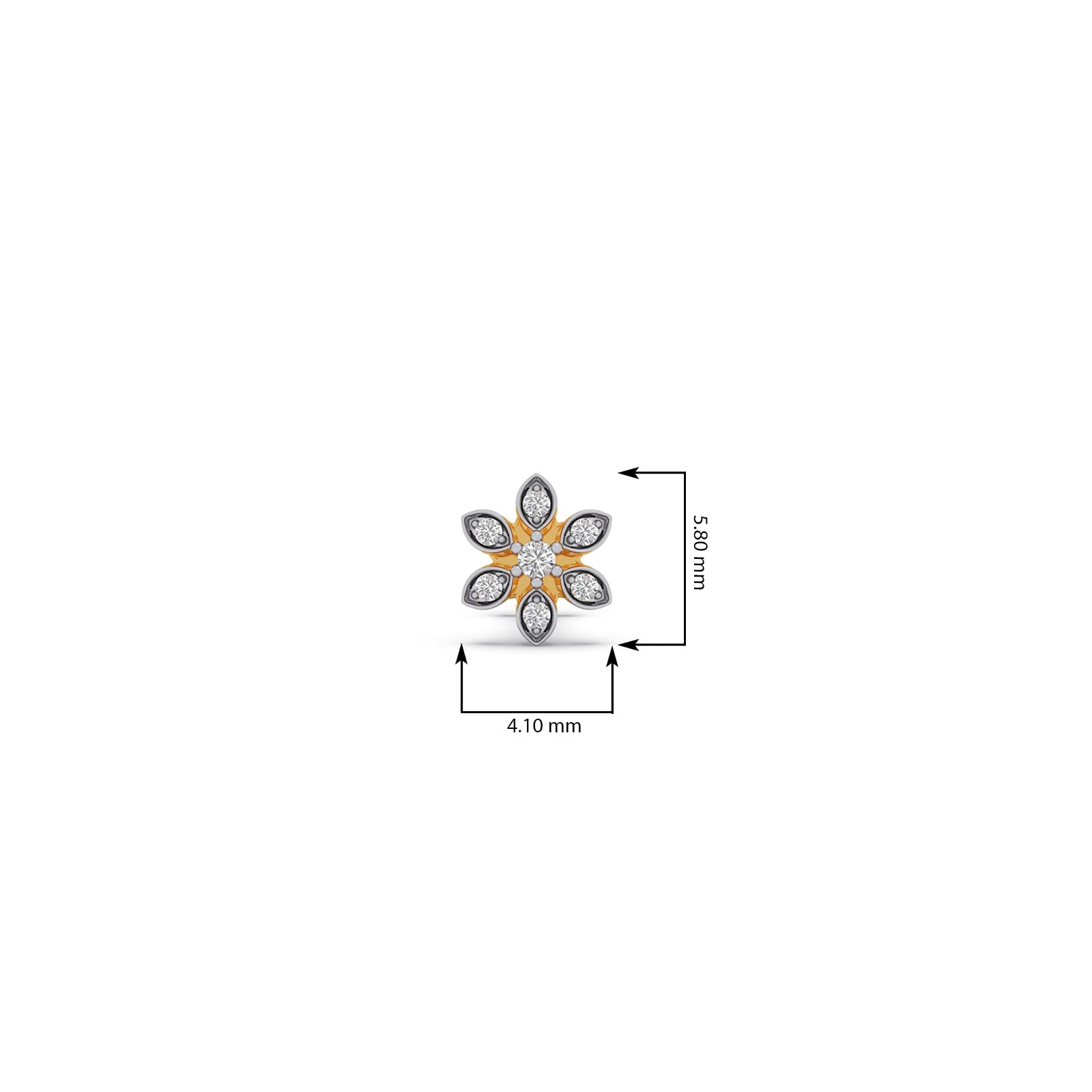 This nose pin features a sparkling round diamonds, set in floral cluster arrangement. A perfect blend of tradition and modern grace, this piece adds a subtle yet sophisticated radiance to your everyday look.