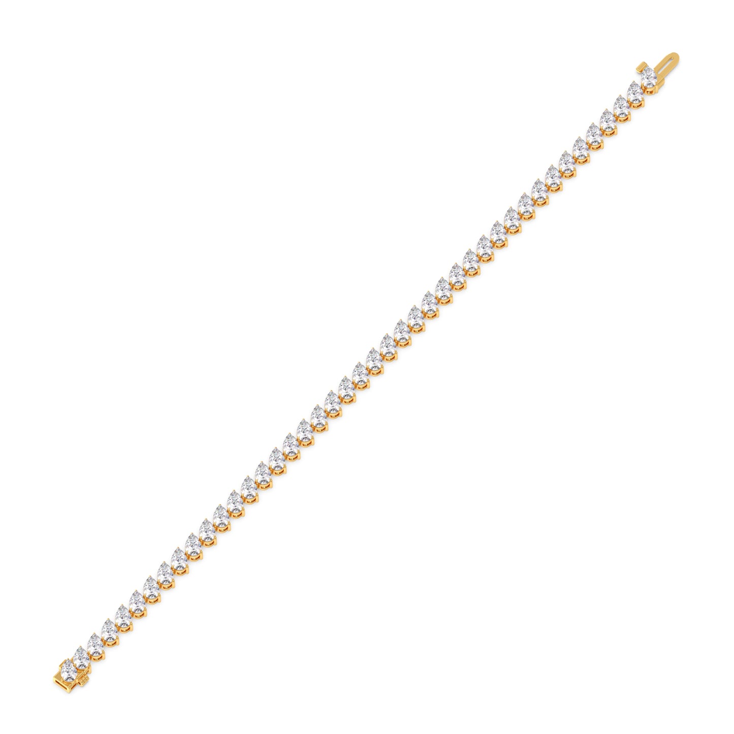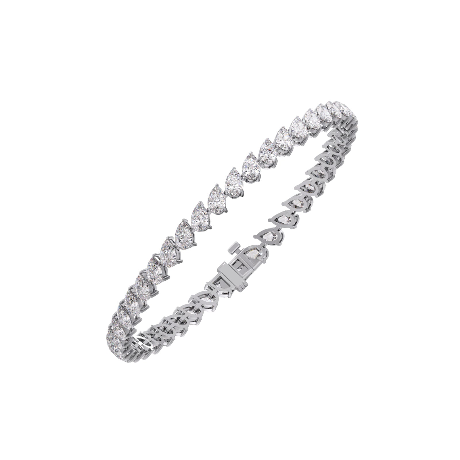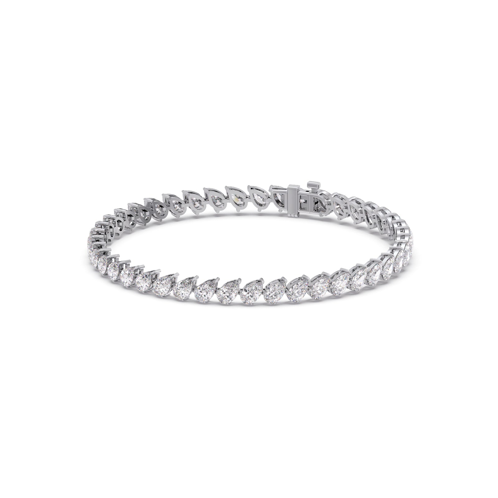 Indulge in timeless elegance with our Glimmering Pear Shape Diamond Tennis Bracelet. This exquisite diamond bracelet features a continuous line of dazzling pear-cut diamonds, meticulously set to capture and reflect light with every movement. Its sophisticated design and radiant sparkle make it a perfect heirloom piece or a stunning addition to any ensemble.