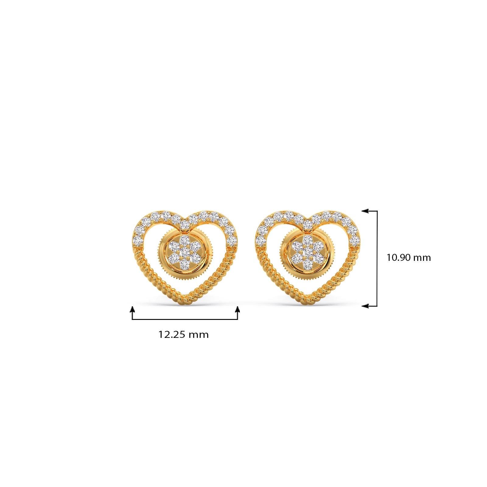 These charming gold heart stud earrings are delicately adorned with sparkling diamonds, adding a touch of romance to any look. Their classic design offers subtle elegance, perfect for everyday wear or a special occasion. Lightweight and comfortable, they're a sweet and sophisticated addition to your jewelry collection.
