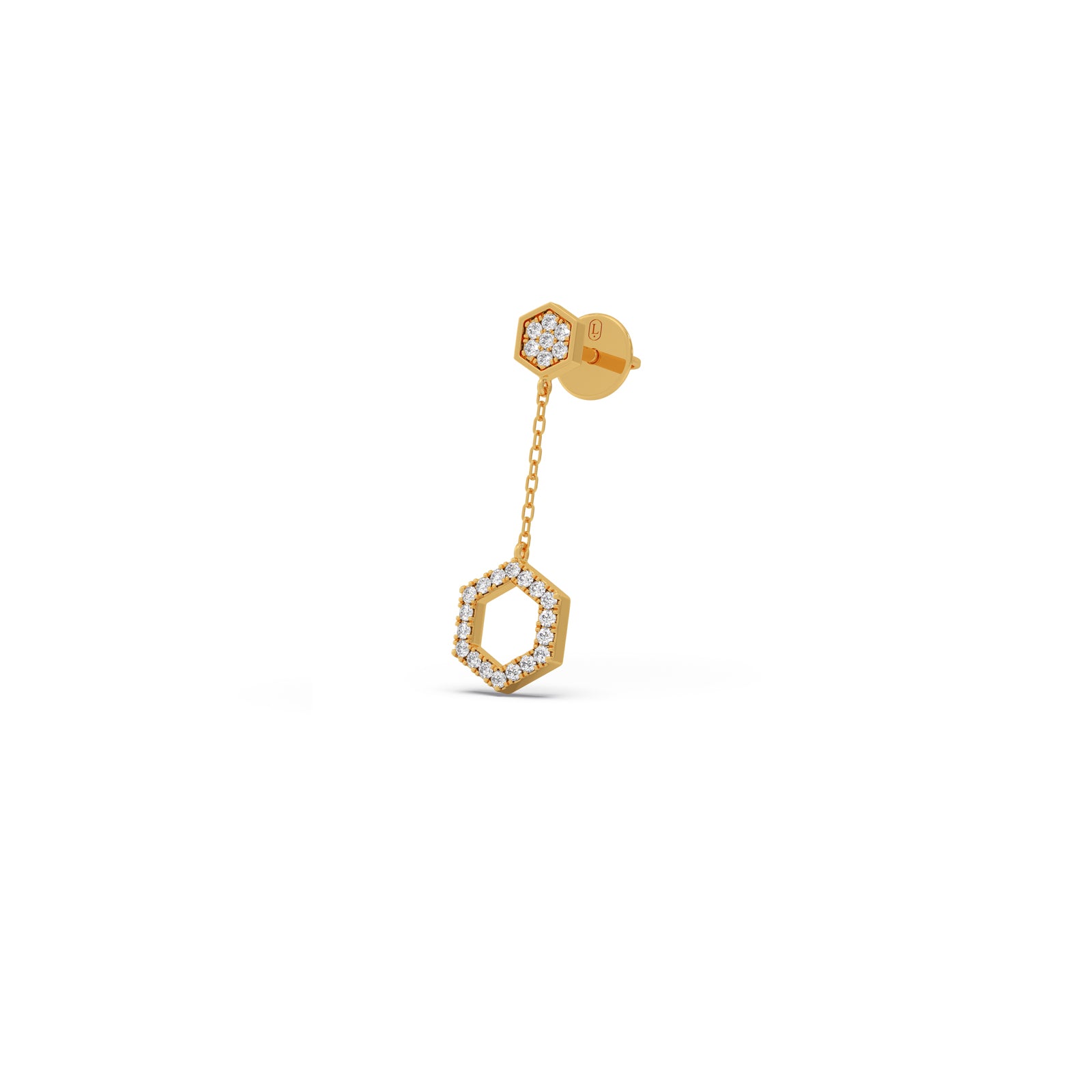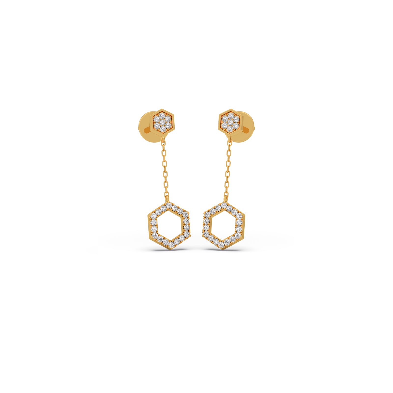 These Gold Hexagon Diamond Dangle Earrings make an unforgettable gift, symbolizing the unique facets of a precious bond. The striking hexagonal shape, traced in brilliant diamonds, represents the strength and brilliance of your enduring commitment. Crafted in warm yellow gold and designed with graceful movement, they are a modern heirloom that will be cherished. Perfect for marking an anniversary or milestone, these earrings speak volumes about timeless love and sophisticated taste.